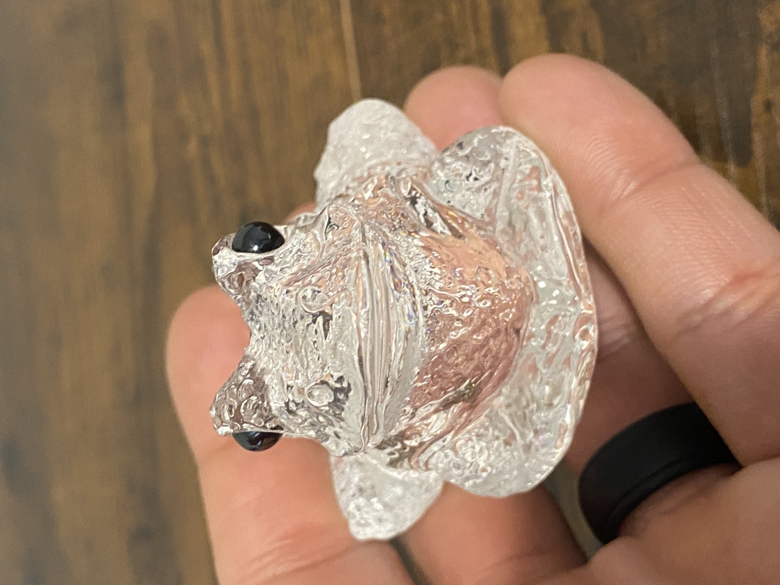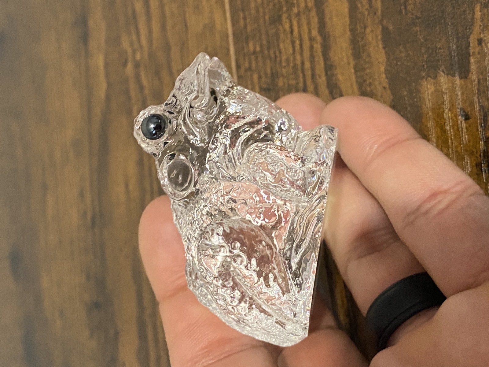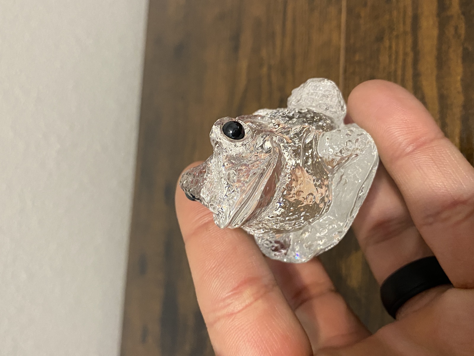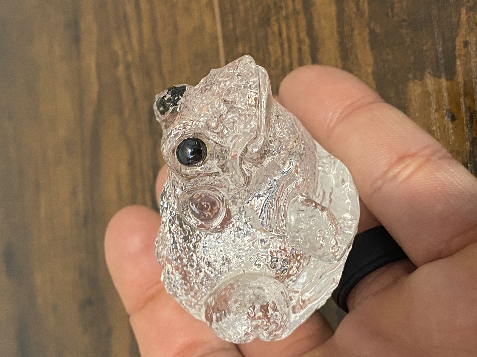 Clear Realistic Looking Crystal Art Glass Frog Paperweight 2.25"L