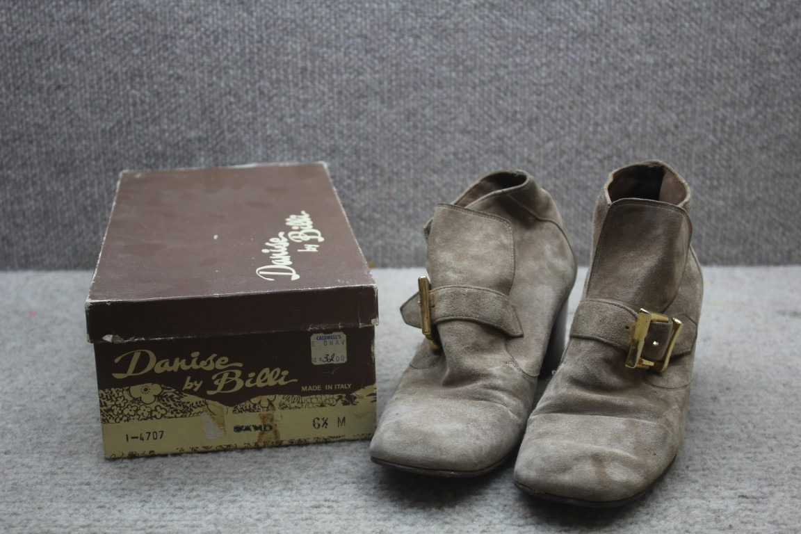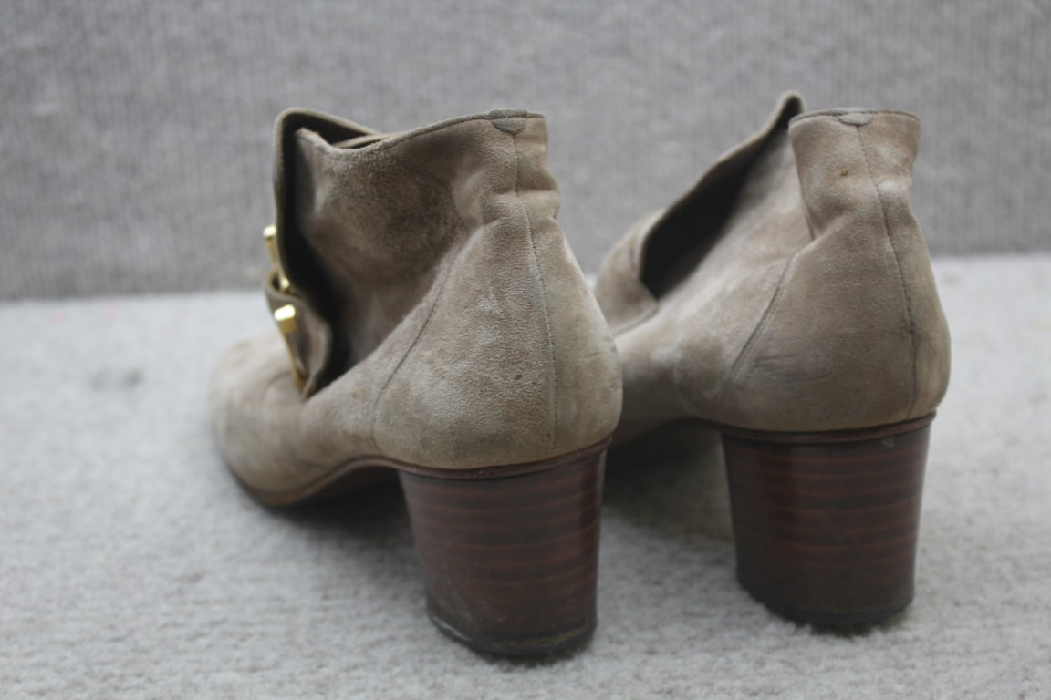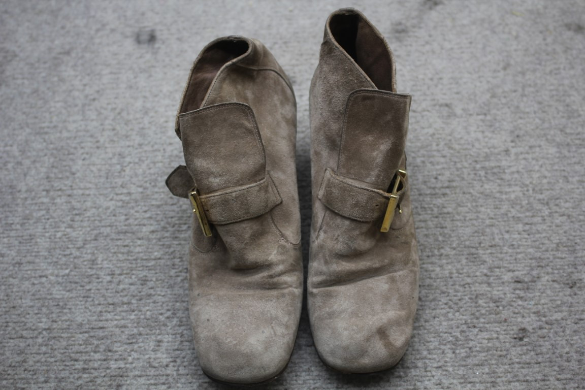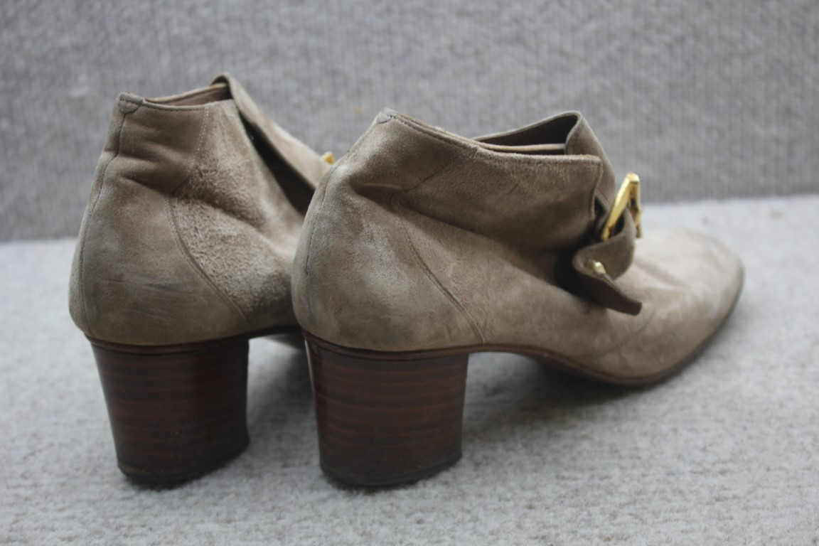 Minor scuffs at the heel. Some tarnish on gold buckles.