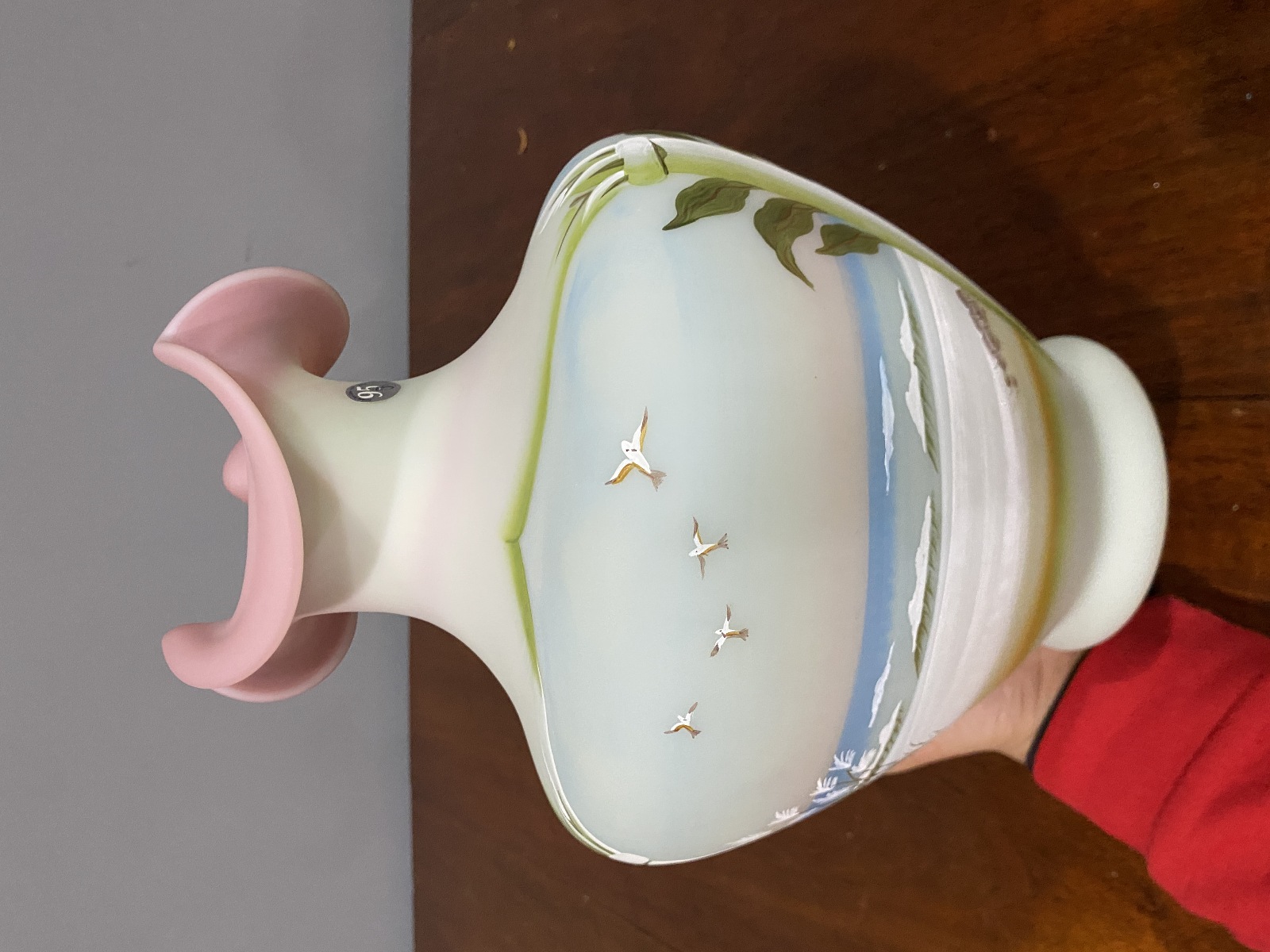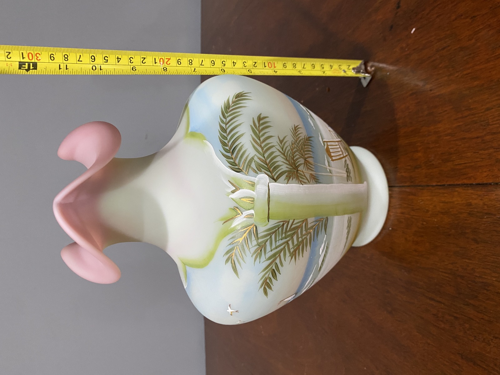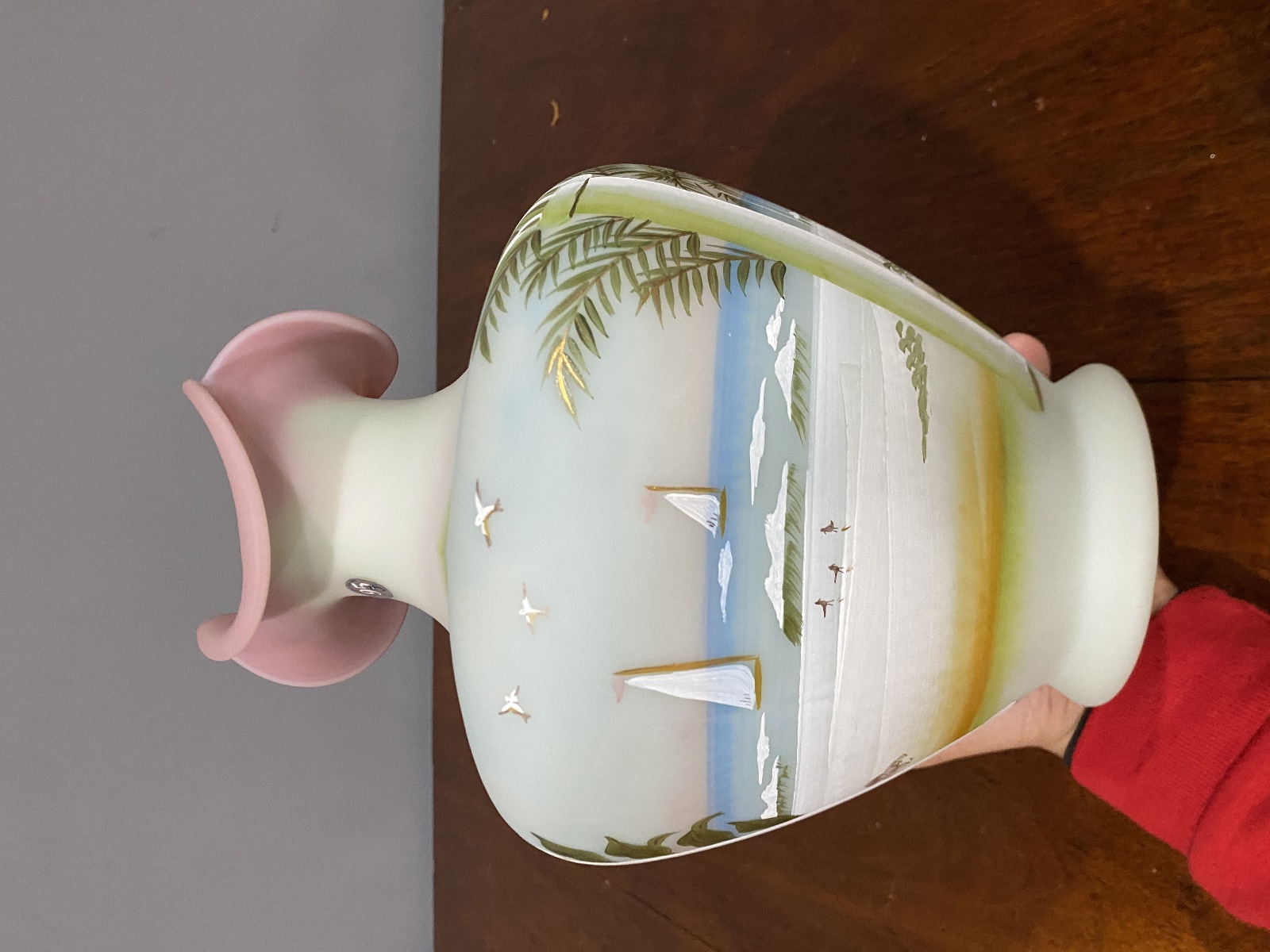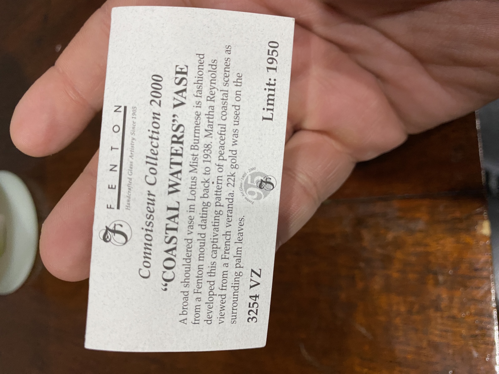 FENTON LTD ED #655/1950 95th Anniversary COASTAL WATERS Burmese Vase 11"H SIGNED
