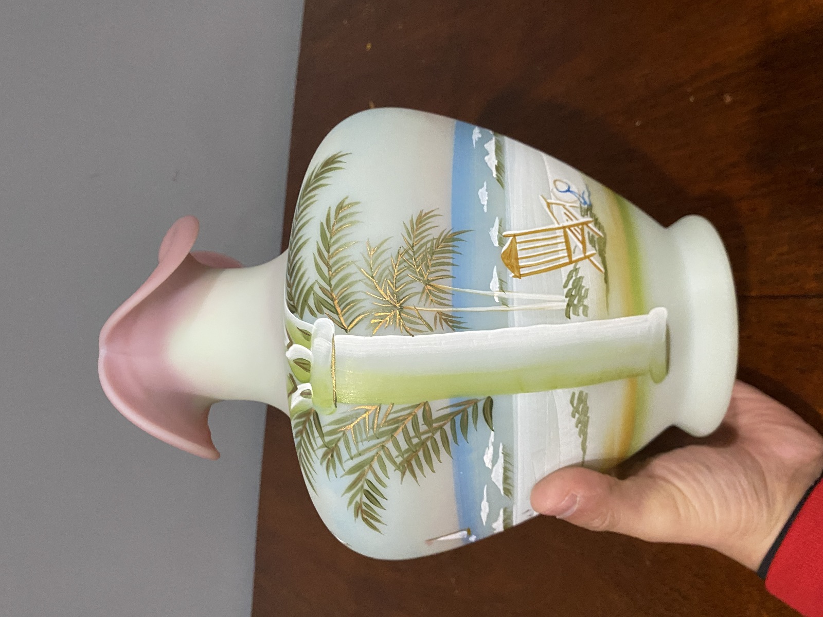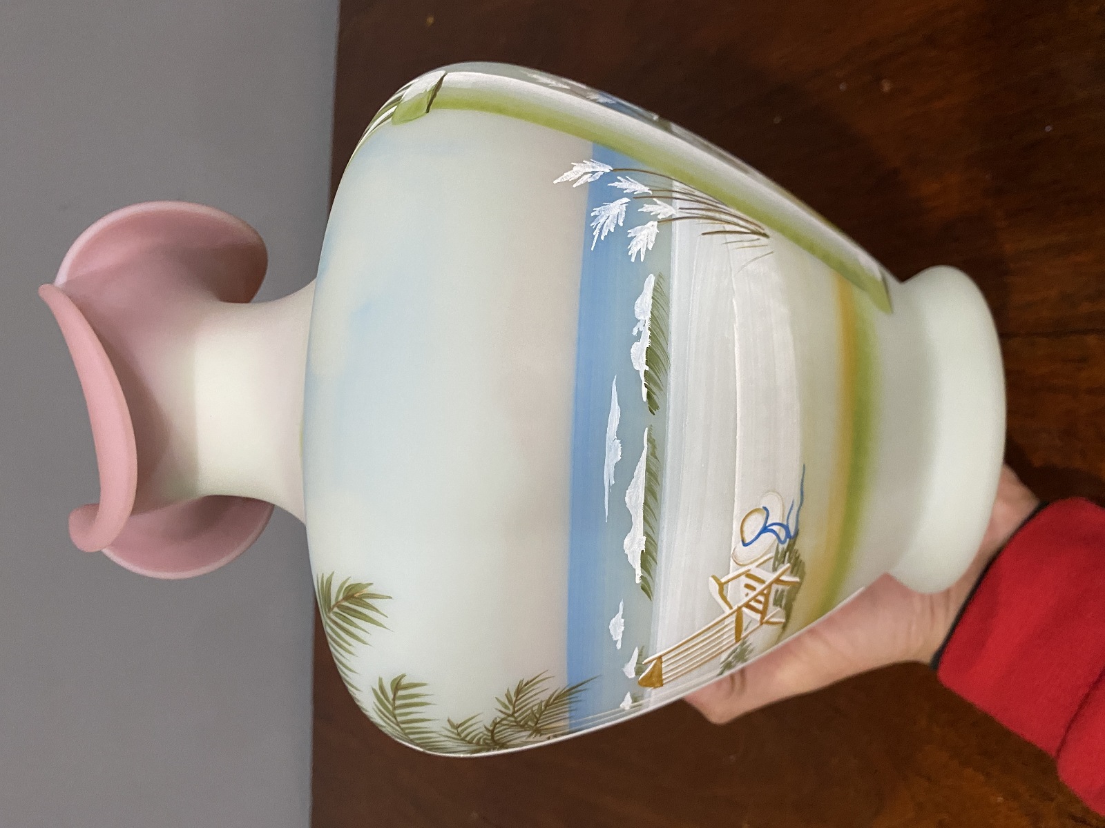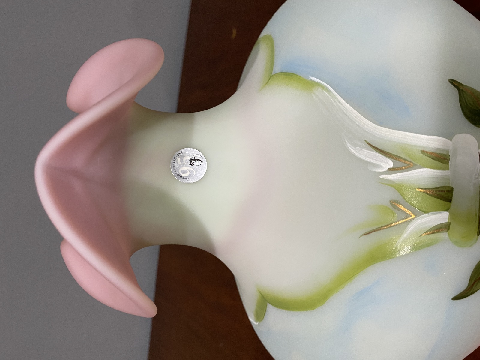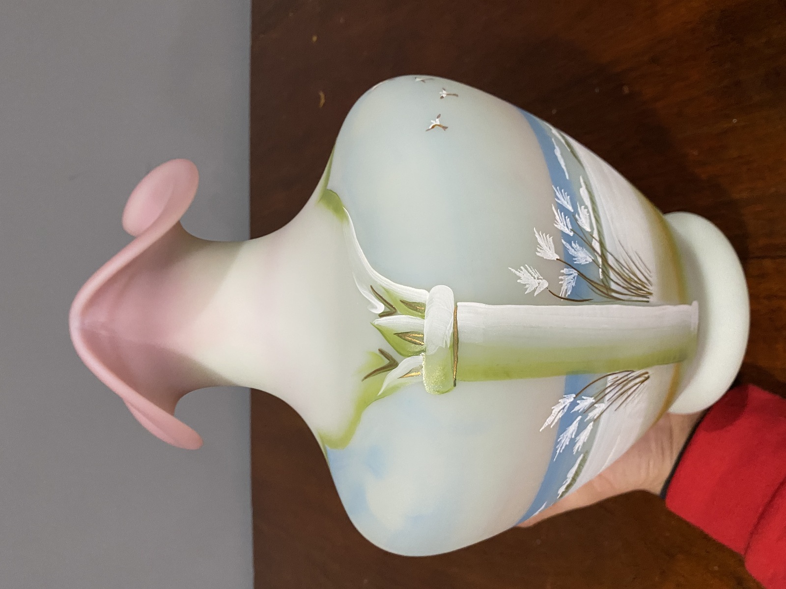 FENTON LTD ED #655/1950 95th Anniversary COASTAL WATERS Burmese Vase 11"H SIGNED