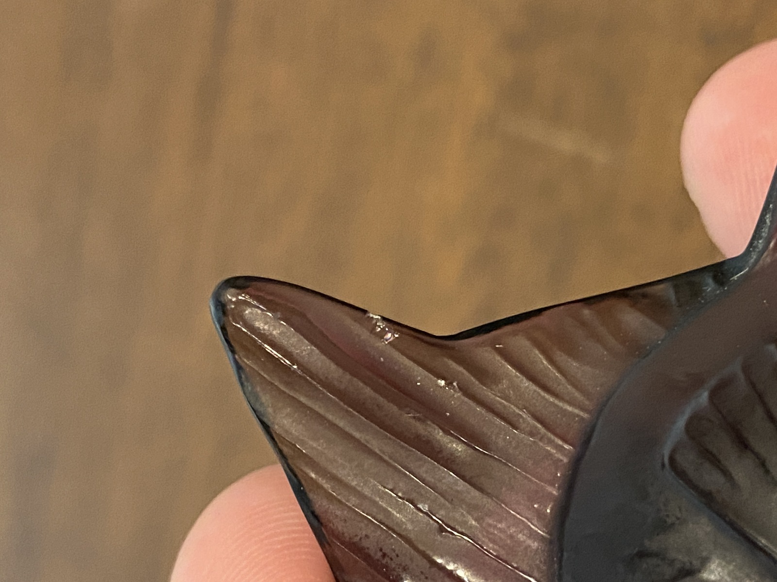 GOOD USED CONDITION (PLEASE NOTE THAT THIS PIECE HAS 2 VERY SMALL CHIP MARKS ONE ON THE FRONT OF THE FISH NEAR THE TOP AND ONE ON THE BACKSIDE OF THE FISH, BOTH NOTED IN THE PHOTOS, ALSO THERE IS SOME LIGHT SCRATCHING FROM ITS MANY YEARS OF LOVE(AGE), BUT OTHER THAN THAT IN GOOD SHAPE FOR ITS AGE). (Please refer back to the photos for condition and feel free to message me if you have any questions. Thank you)!