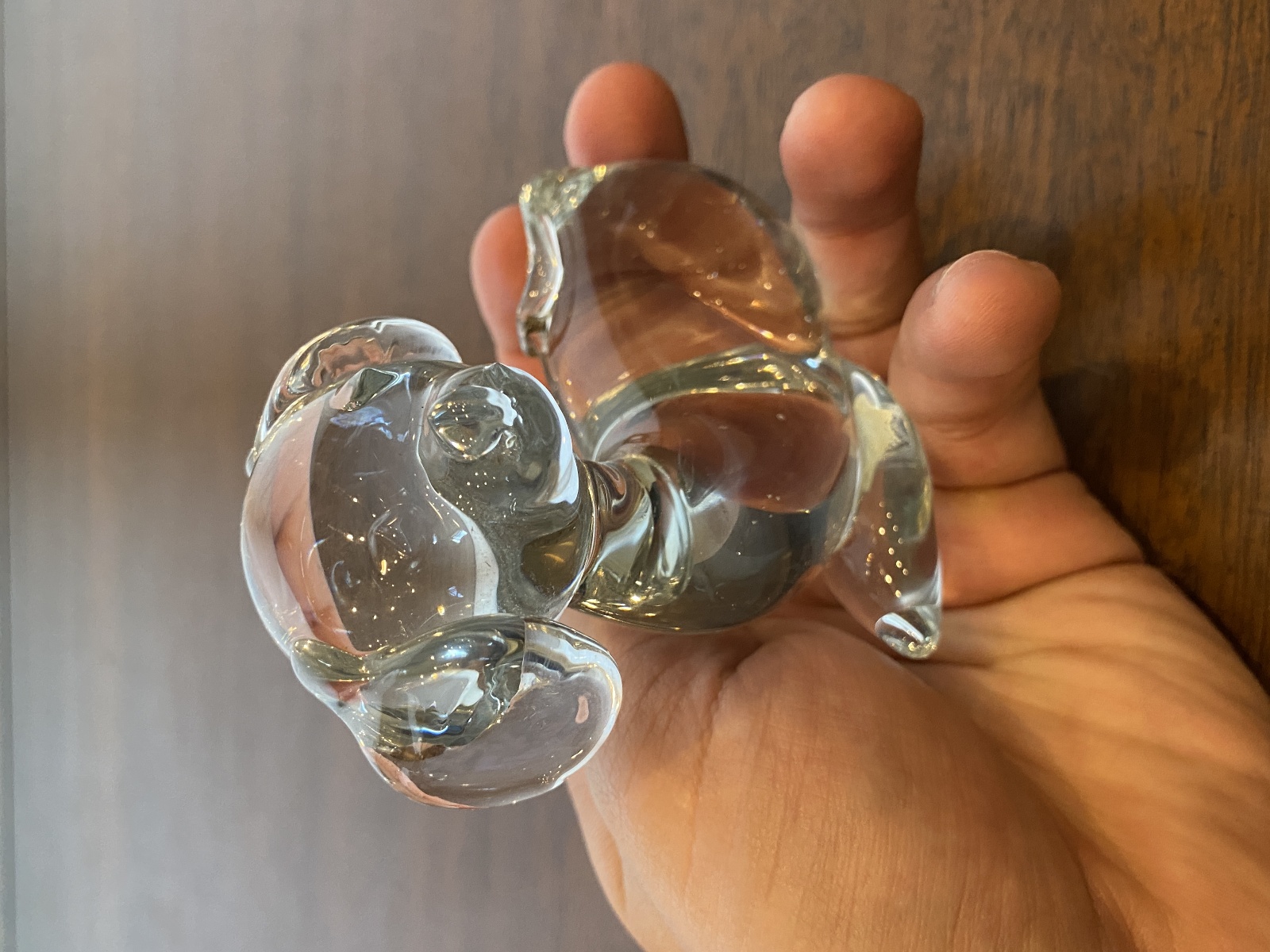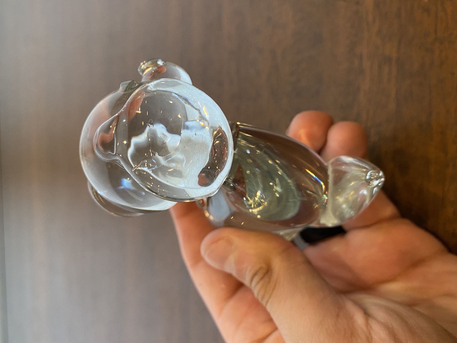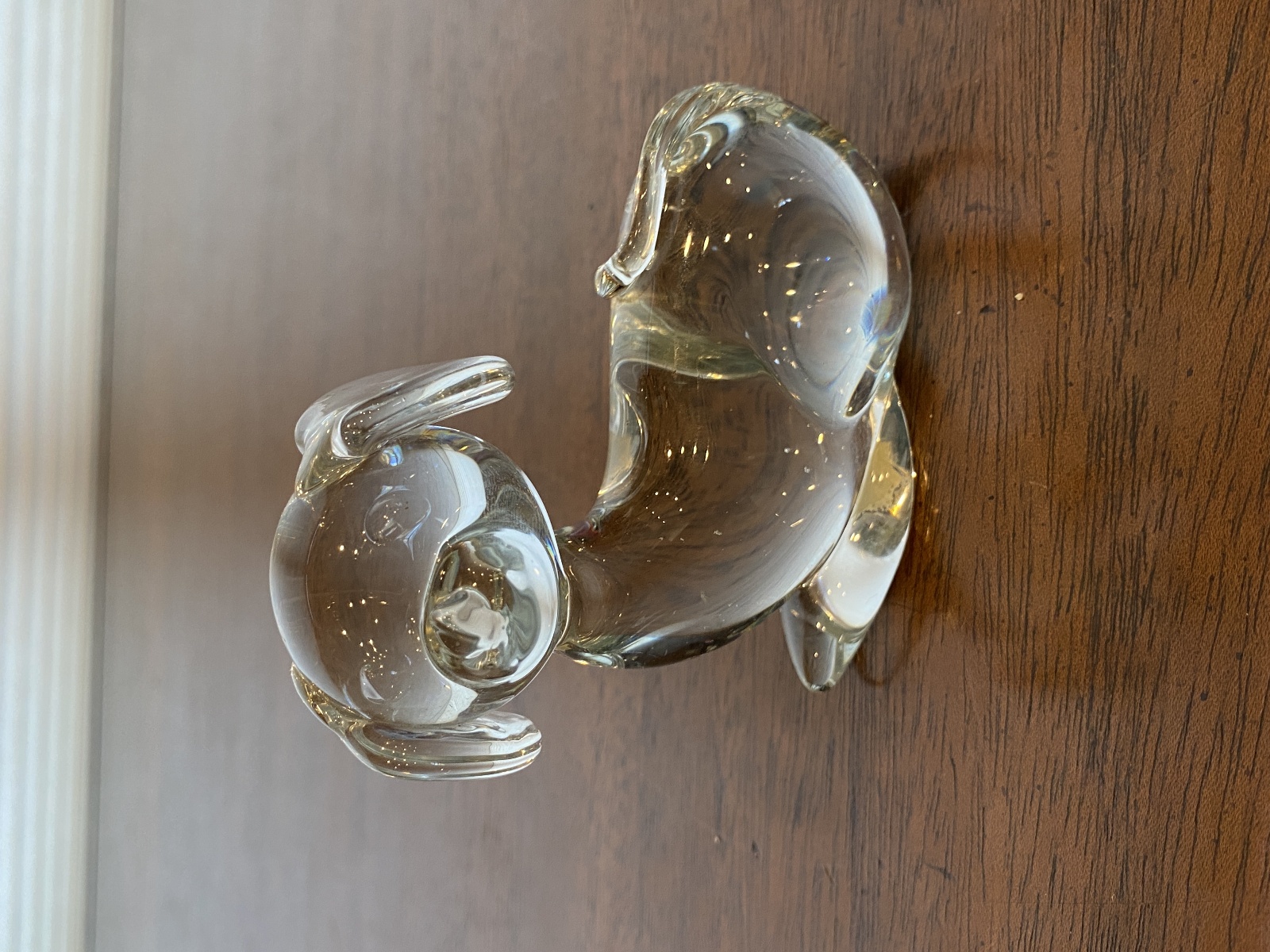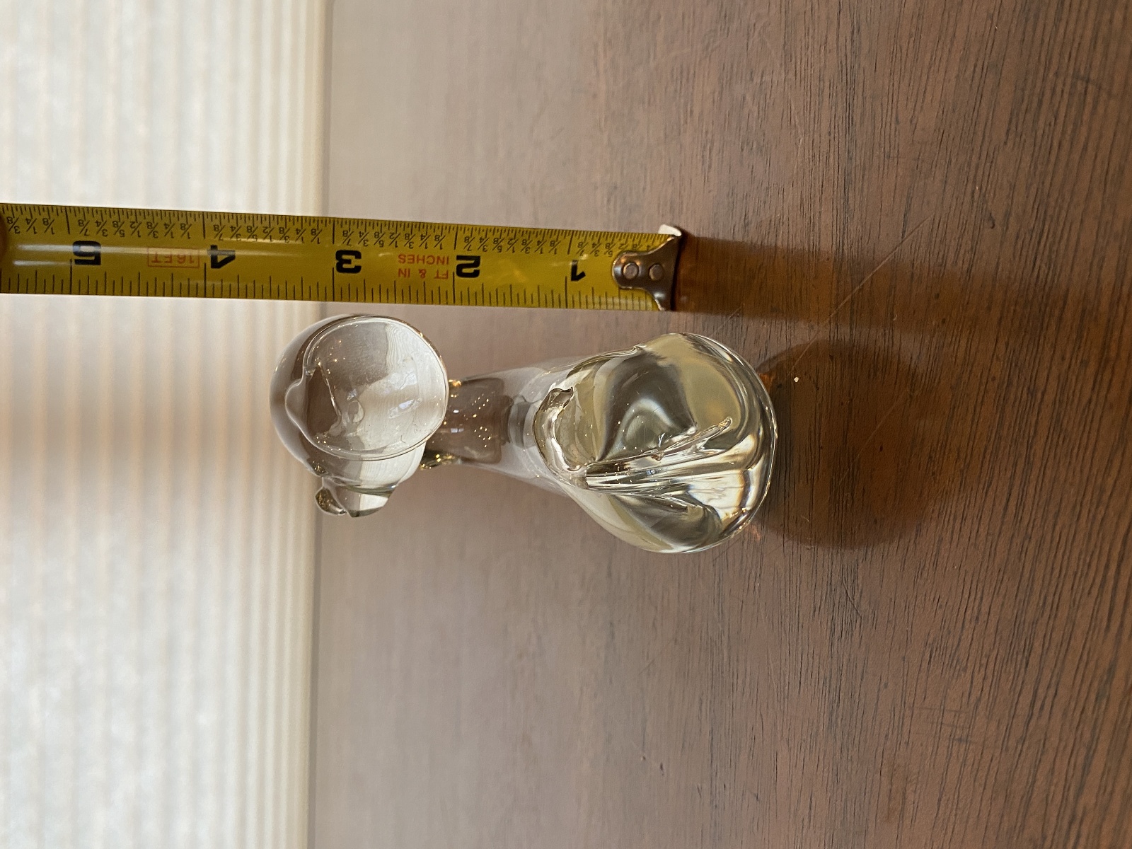 Hand Blown Clear Art Glass Laying Dog Paperweight 3.5"L