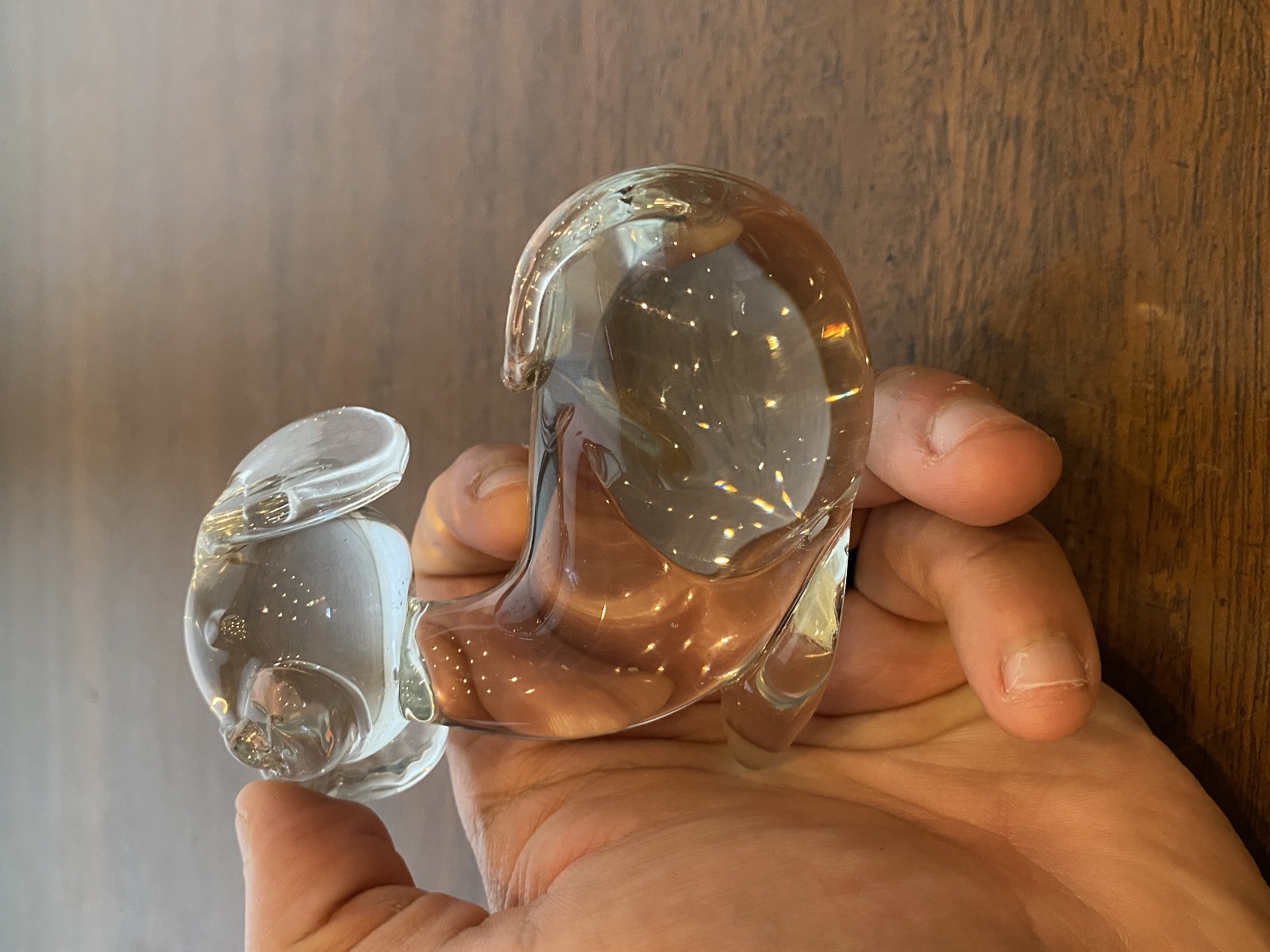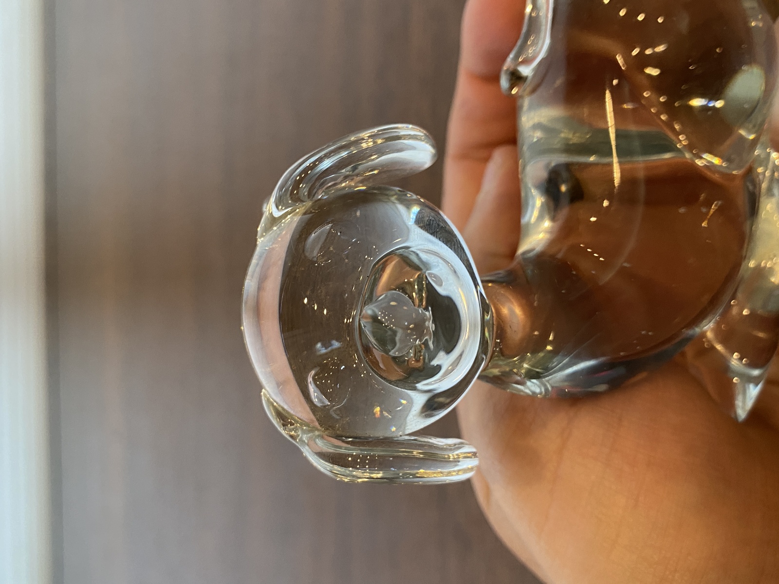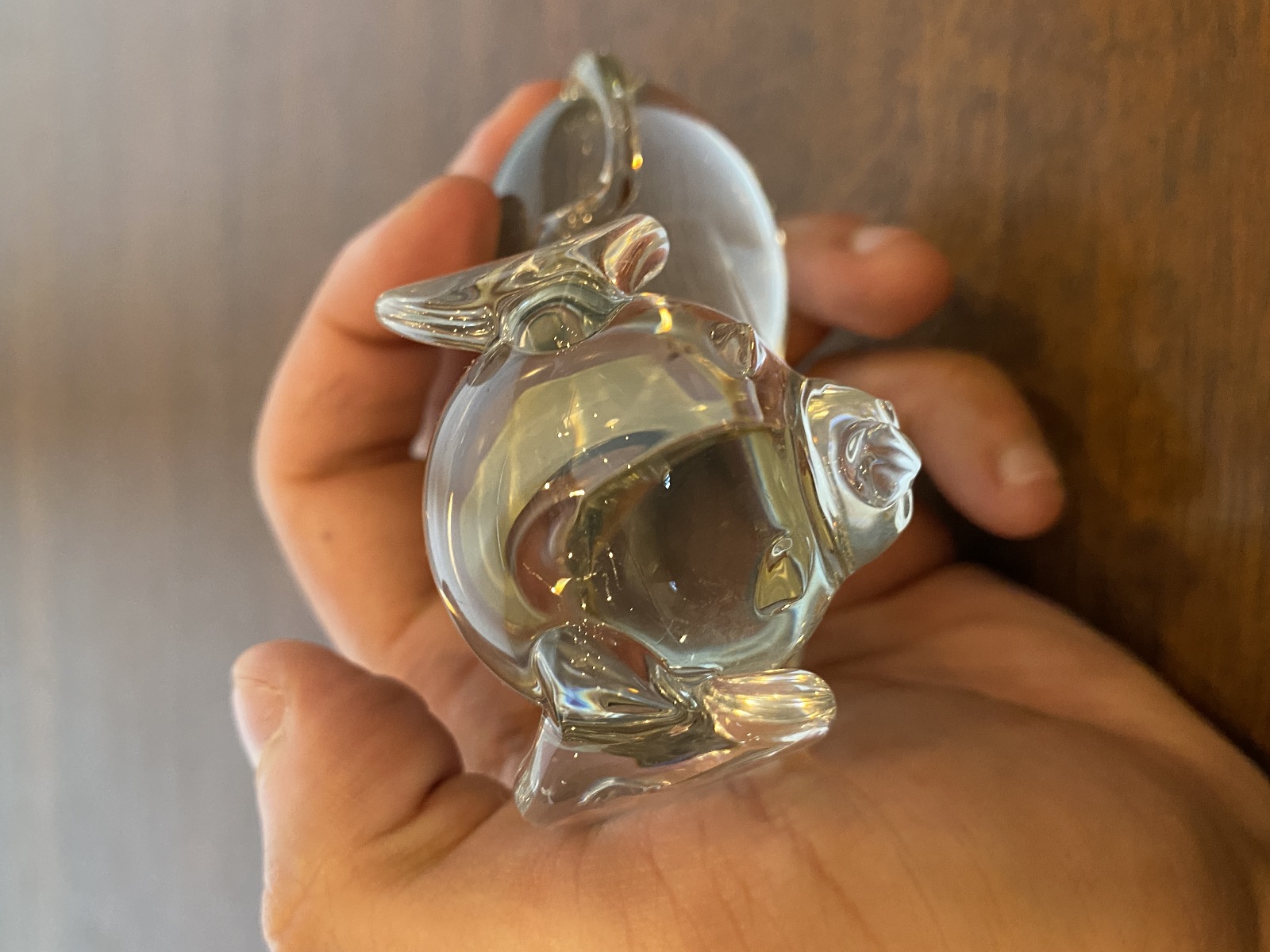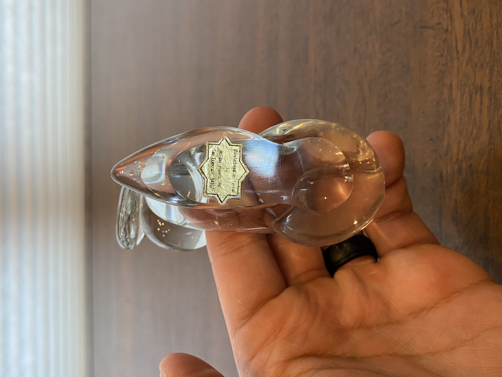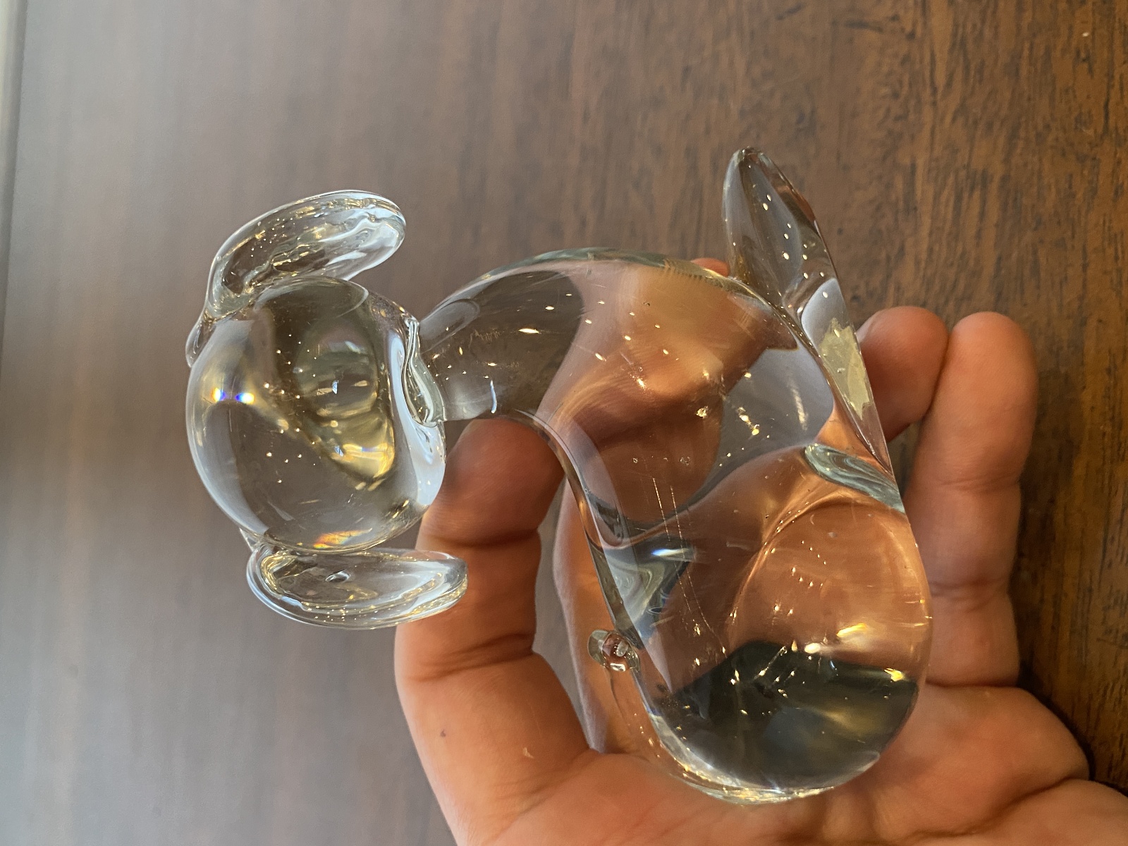 Hand Blown Clear Art Glass Laying Dog Paperweight 3.5"L