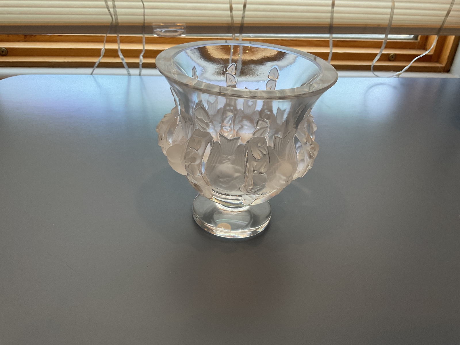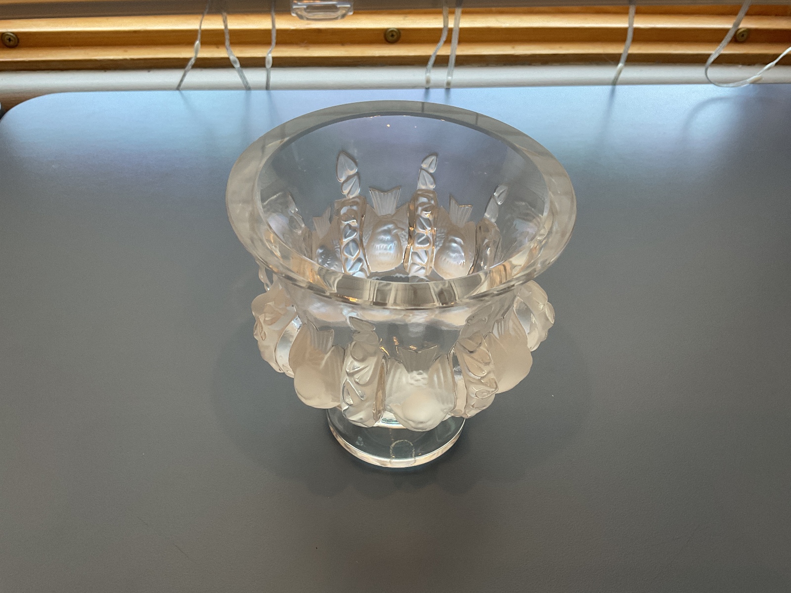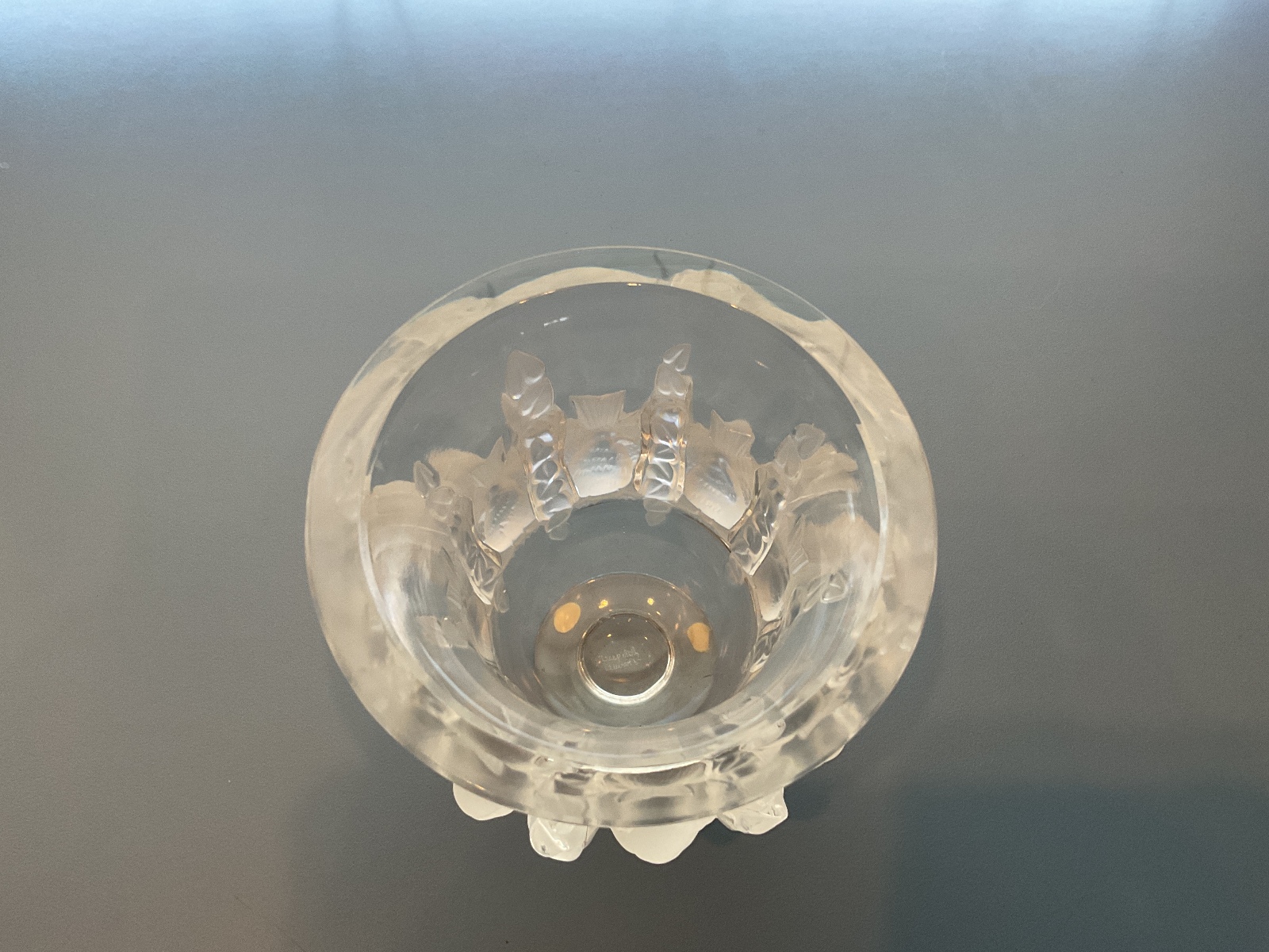 Lalique Dampierre Pedestal Art Glass Vase 4.75”H