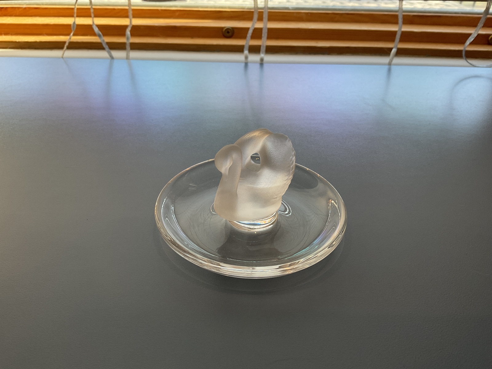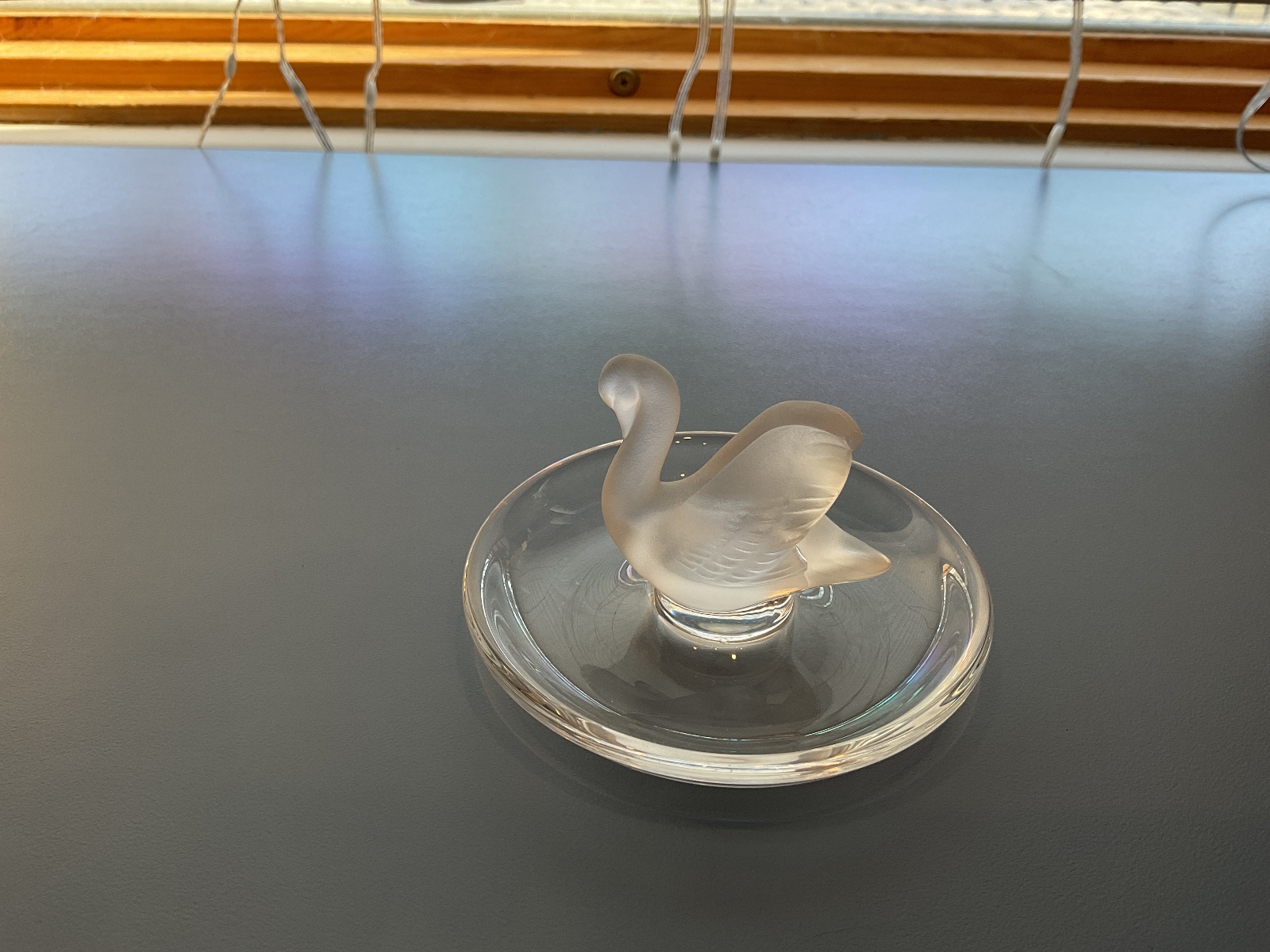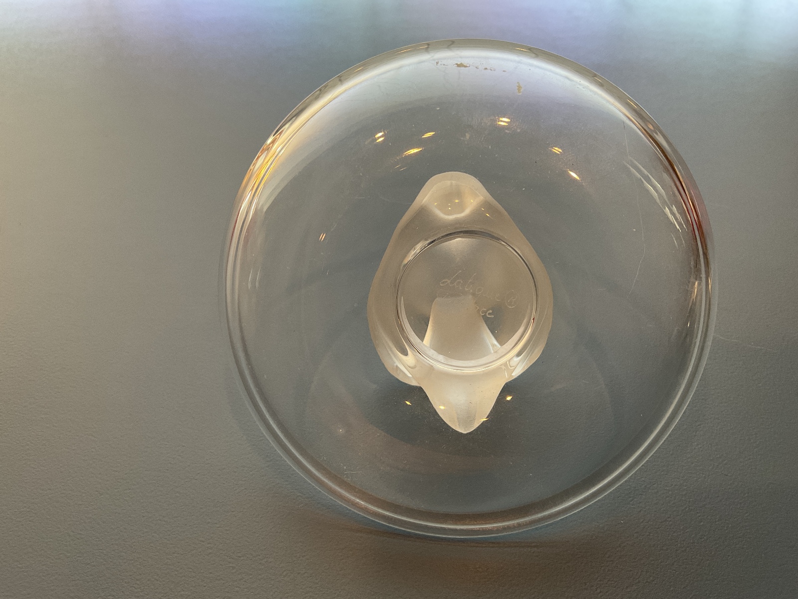 Lalique Frosted Crystal Bird Trinket Dish 4”W
