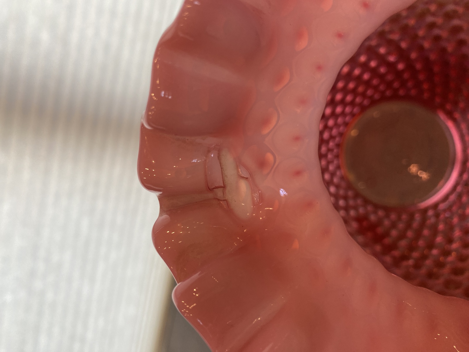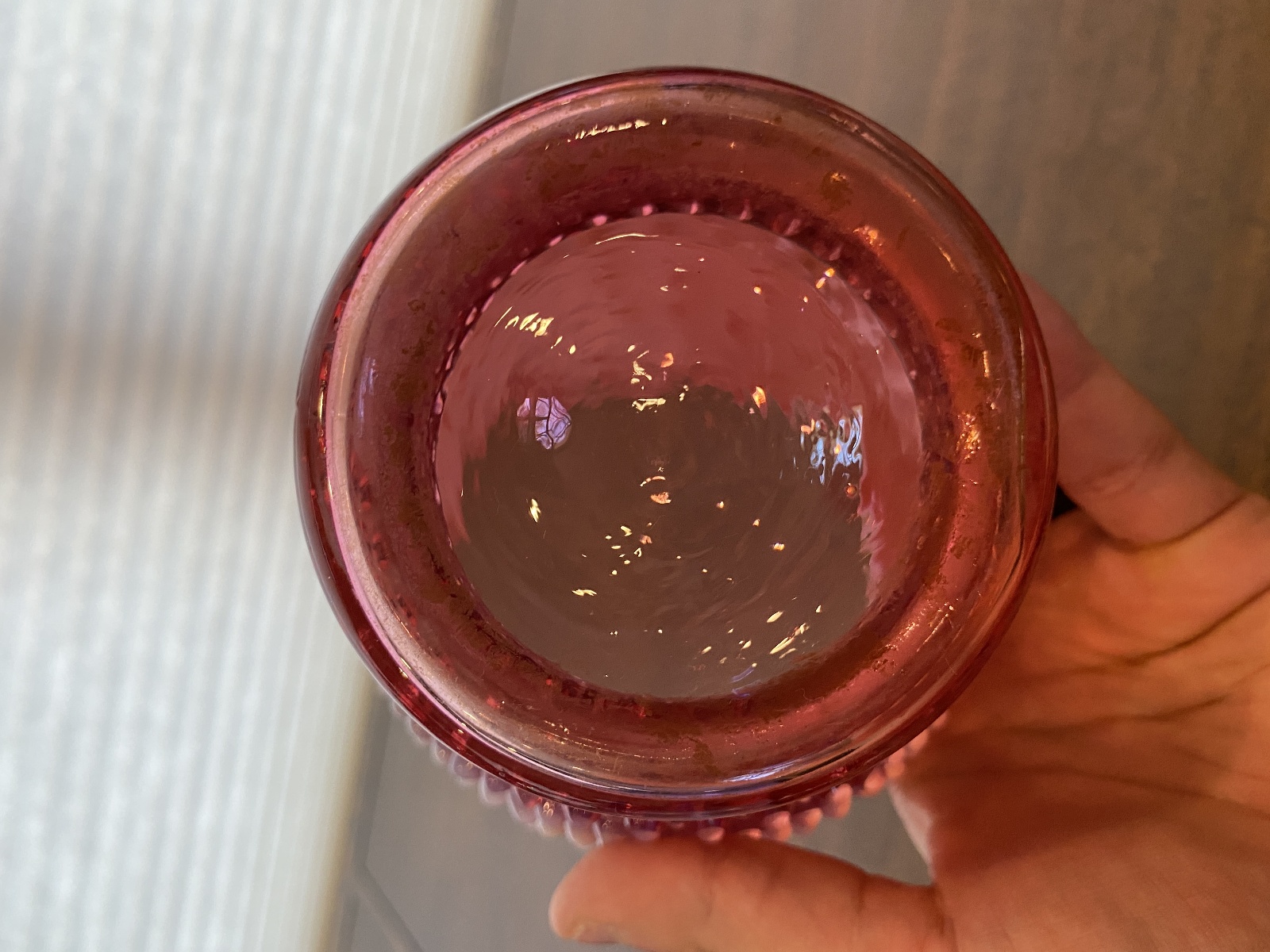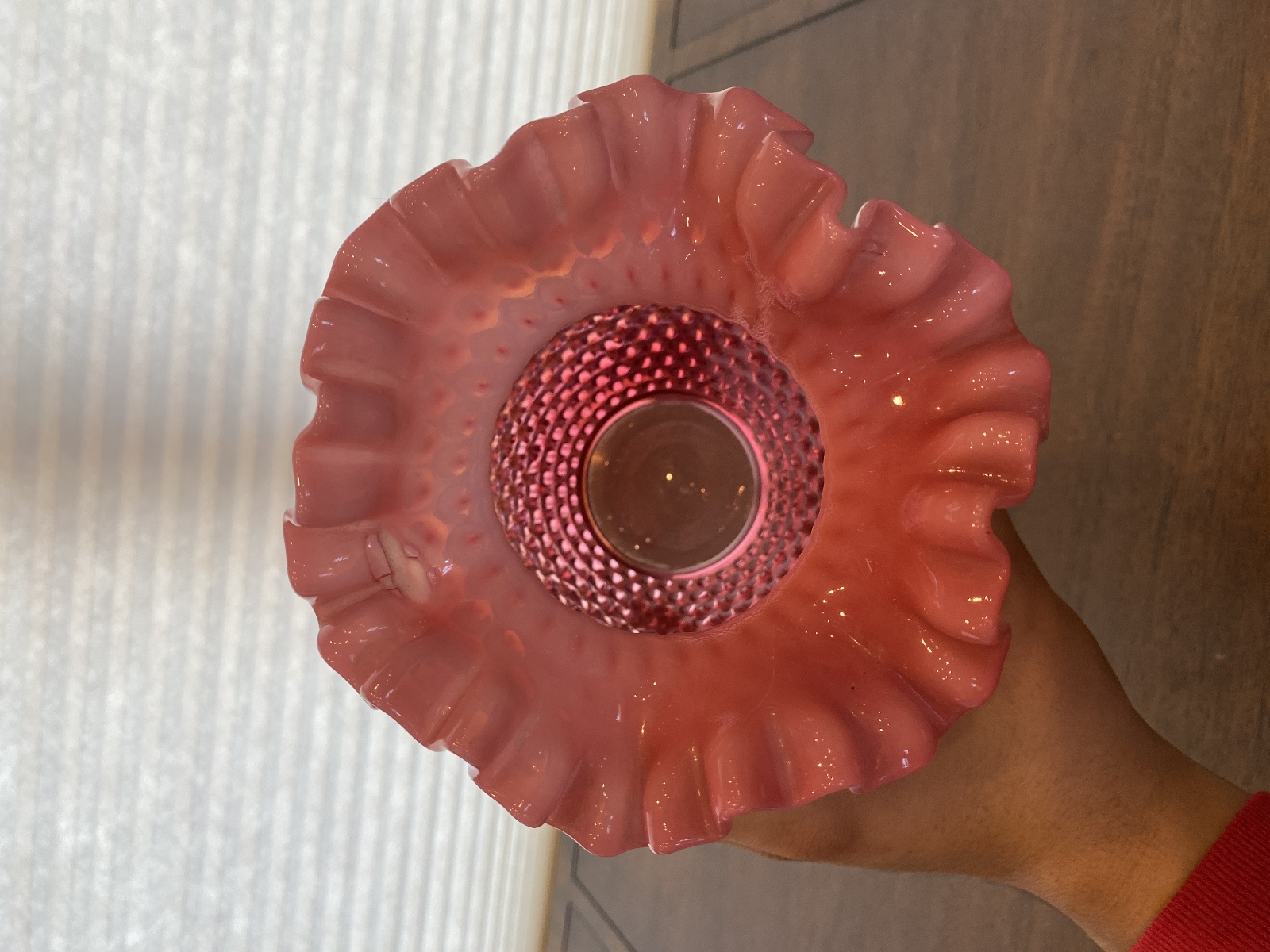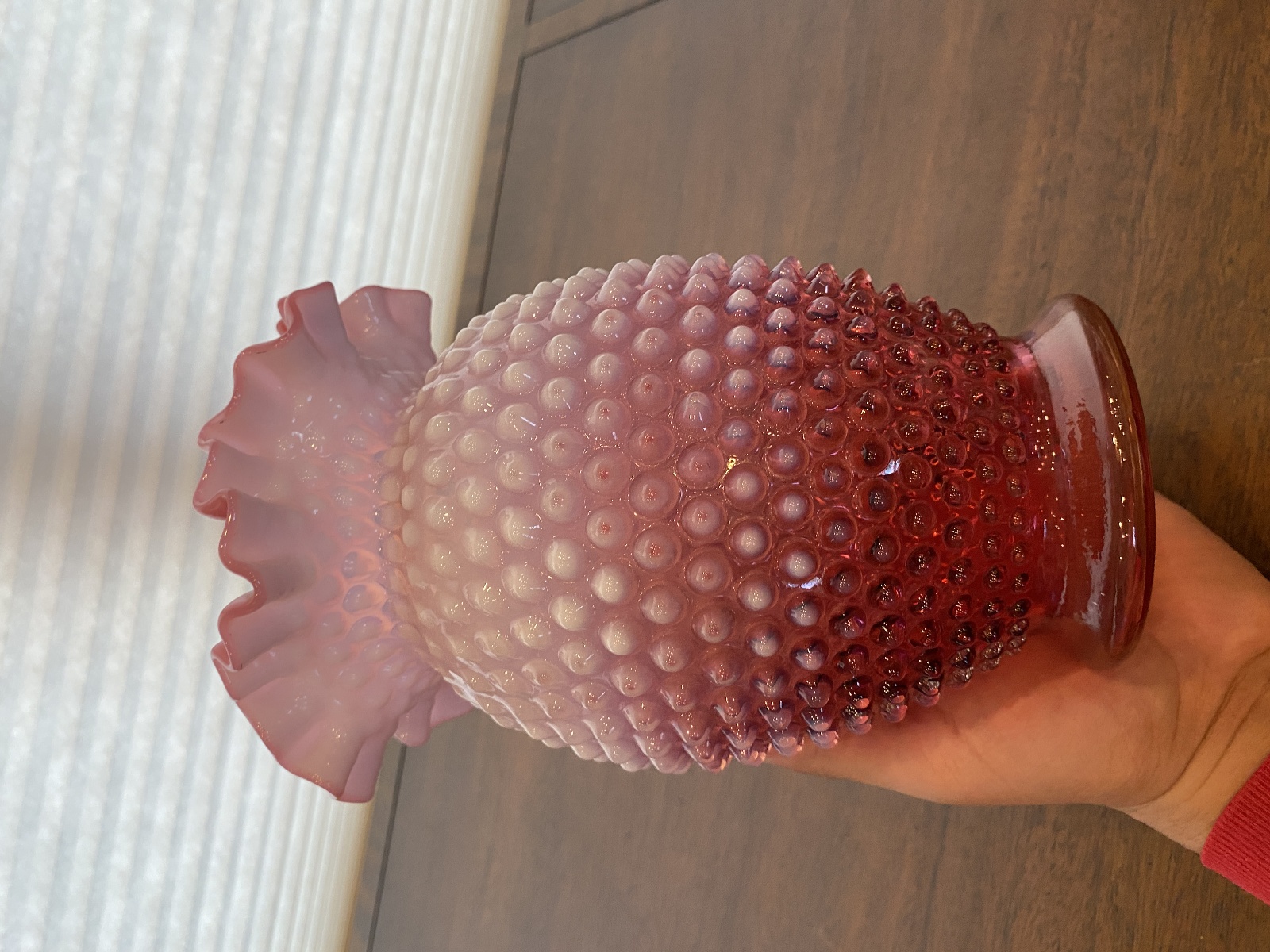 LARGE VTG FENTON Cranberry Opalescent Hobnail Ruffled Rim Art Glass Vase 8.5"H