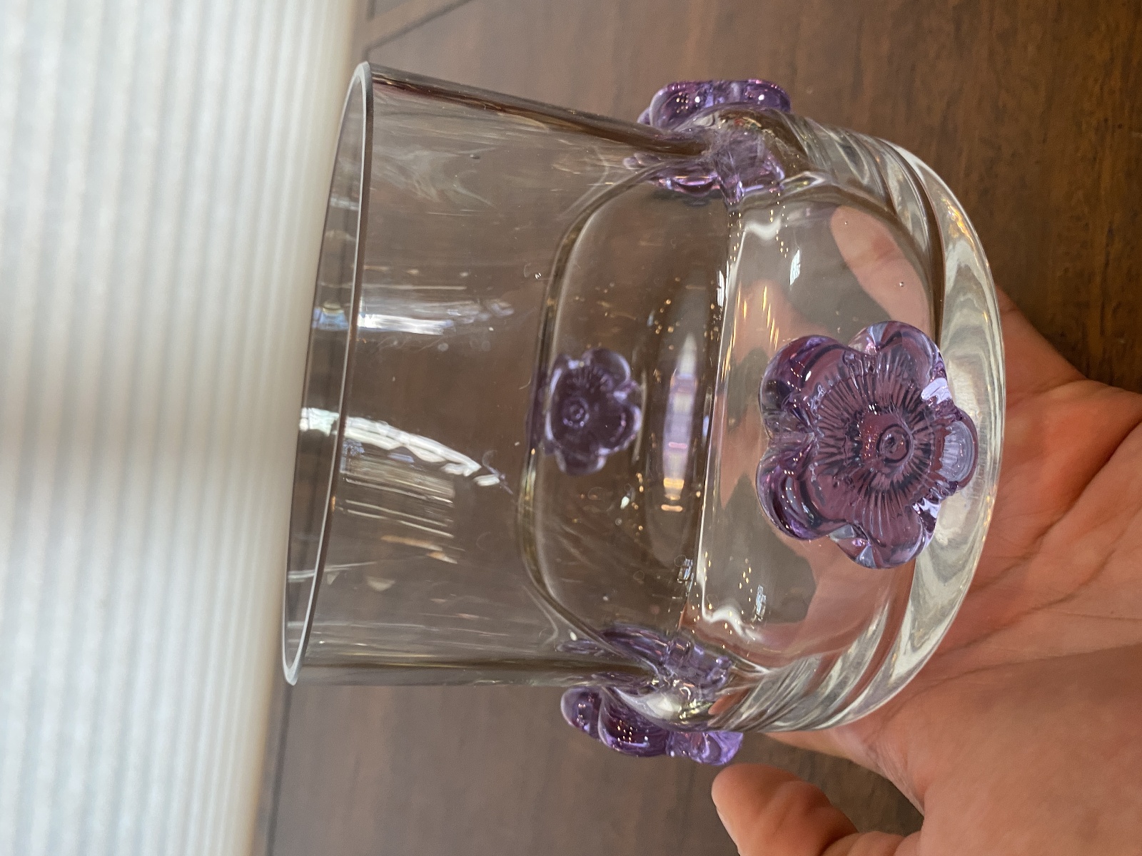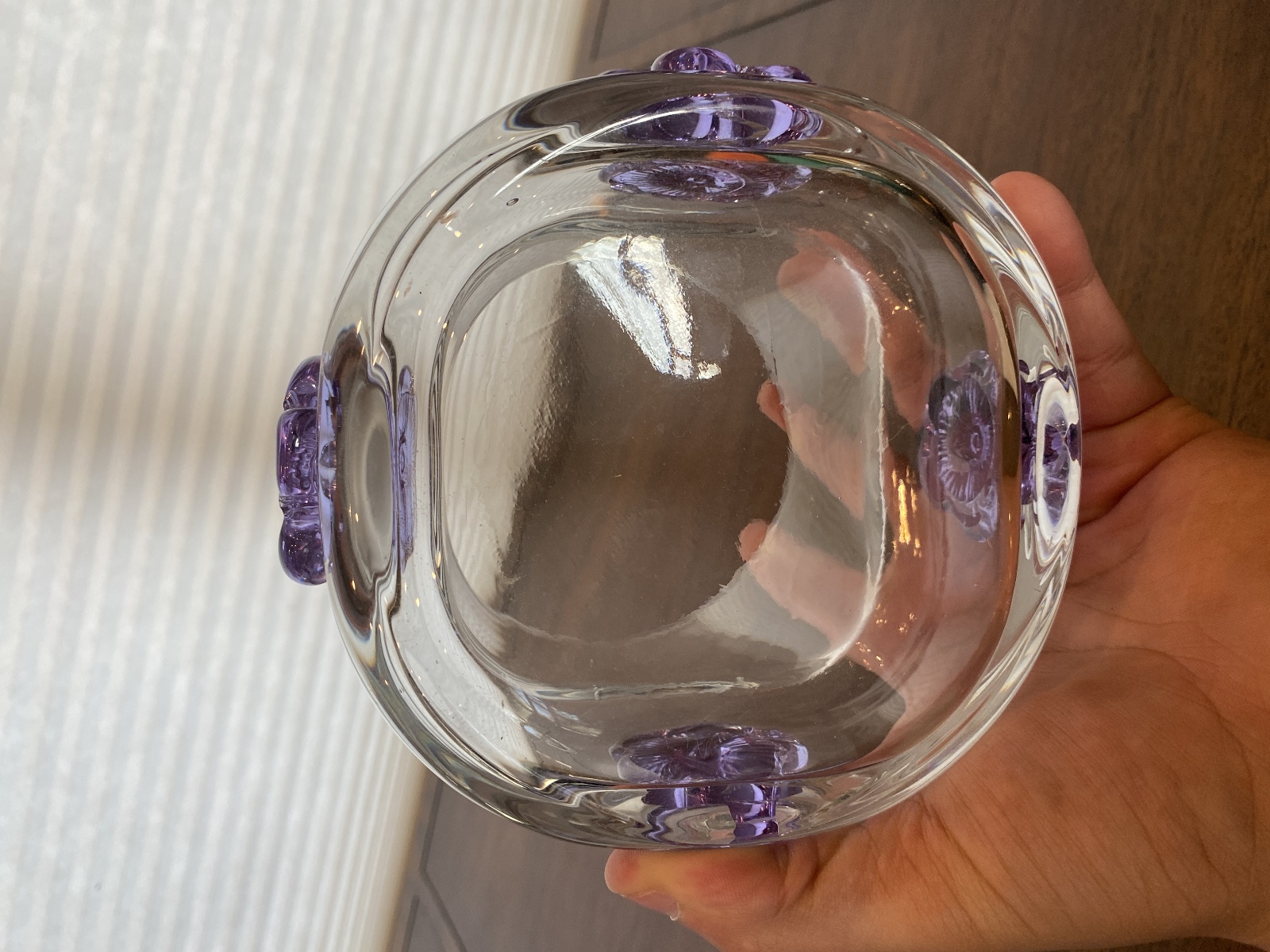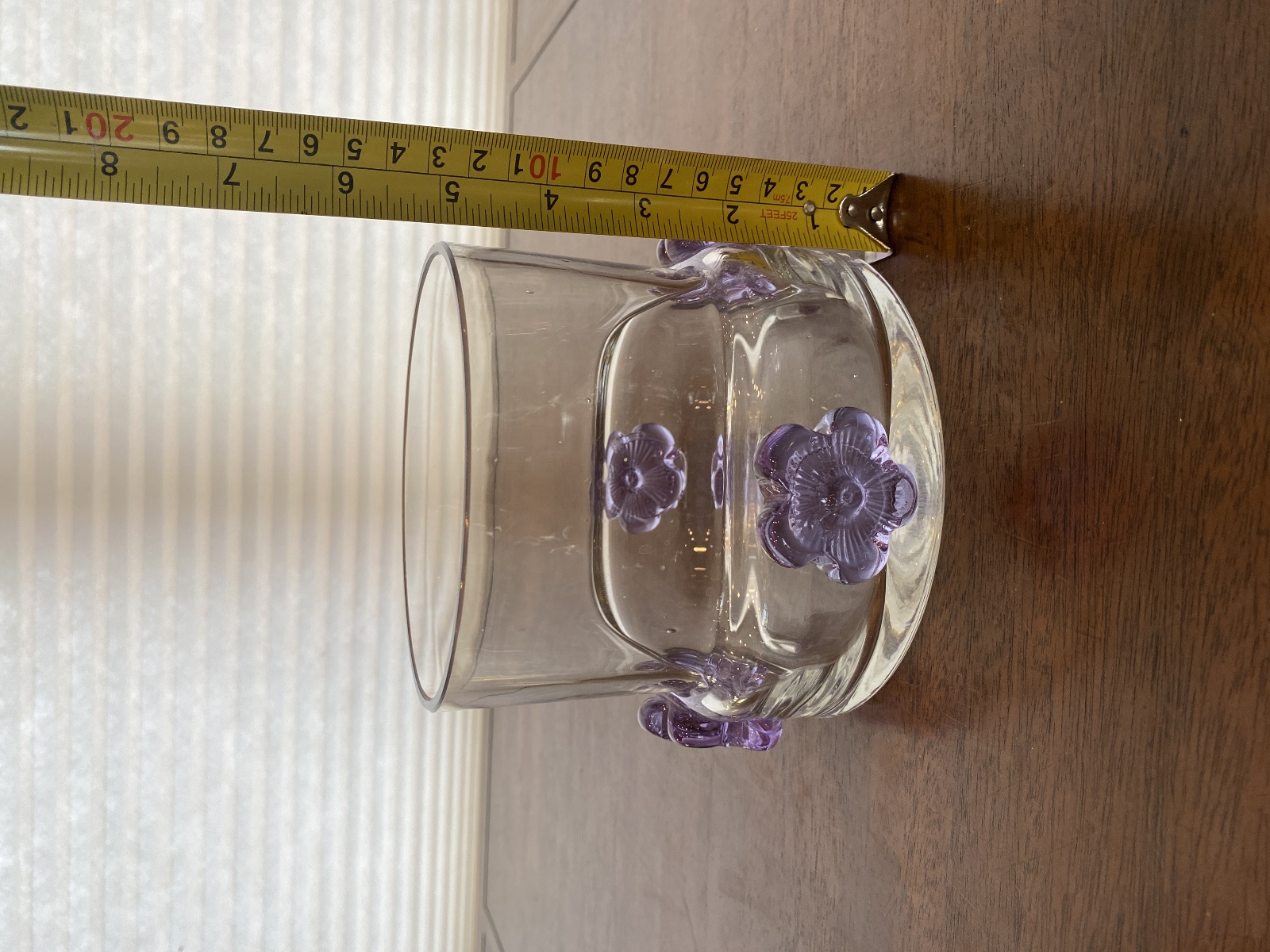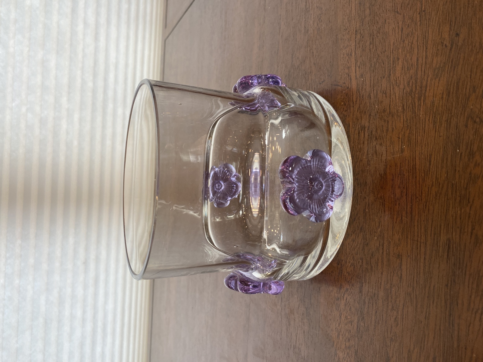 SKLO Union Clear Art Glass Vase W/4 Applied Alexandrite Flowers 5"H