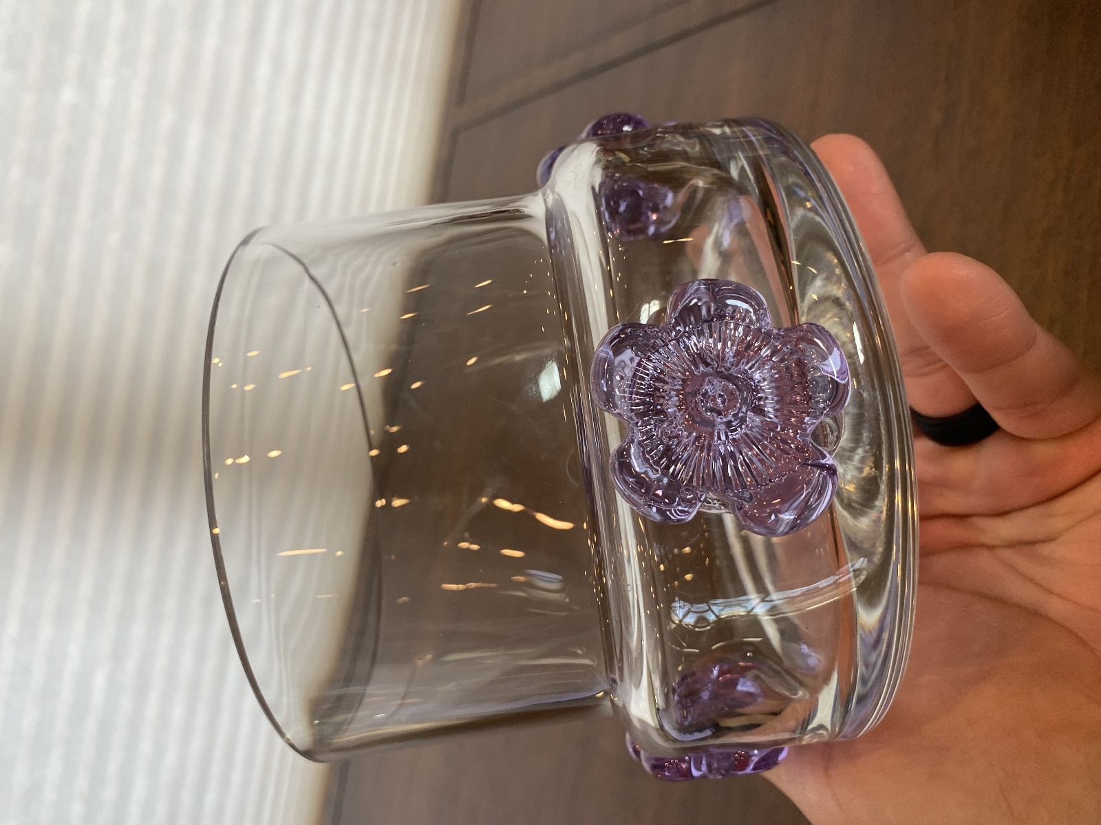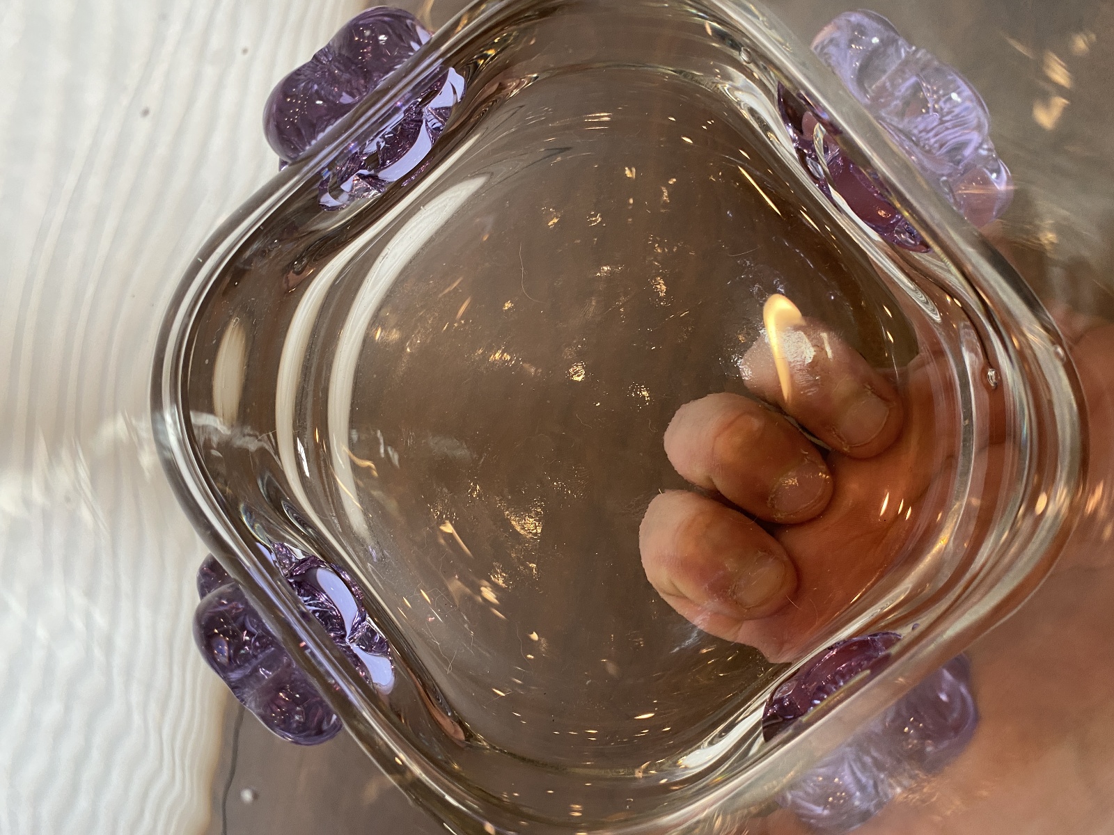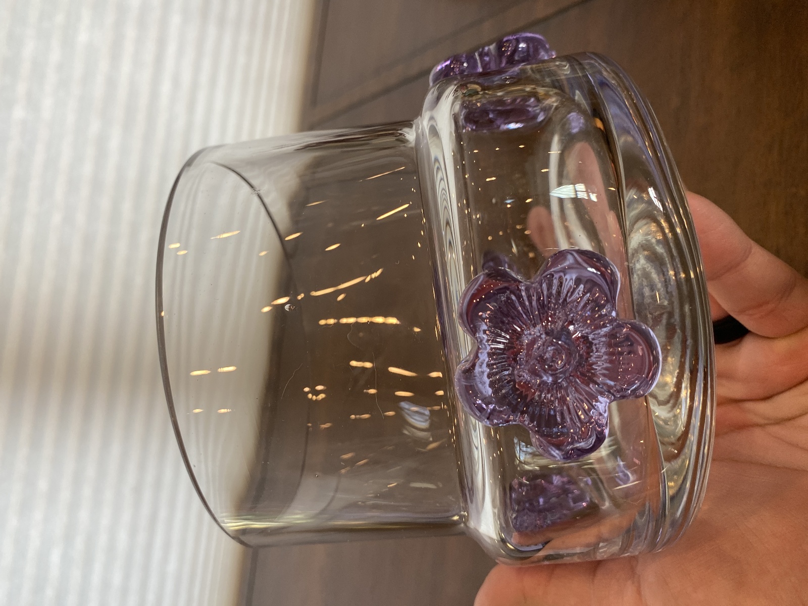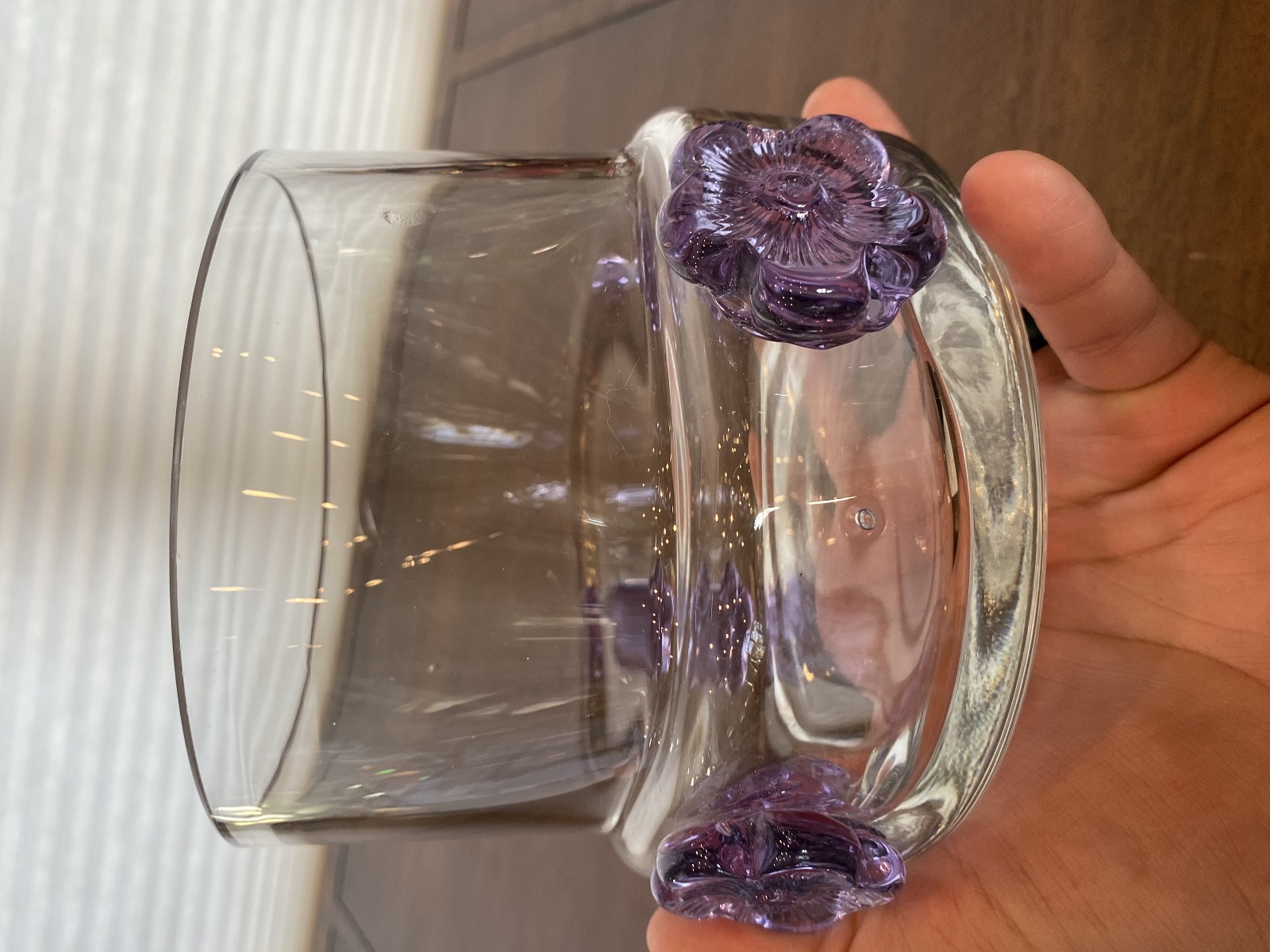 SKLO Union Clear Art Glass Vase W/4 Applied Alexandrite Flowers 5"H