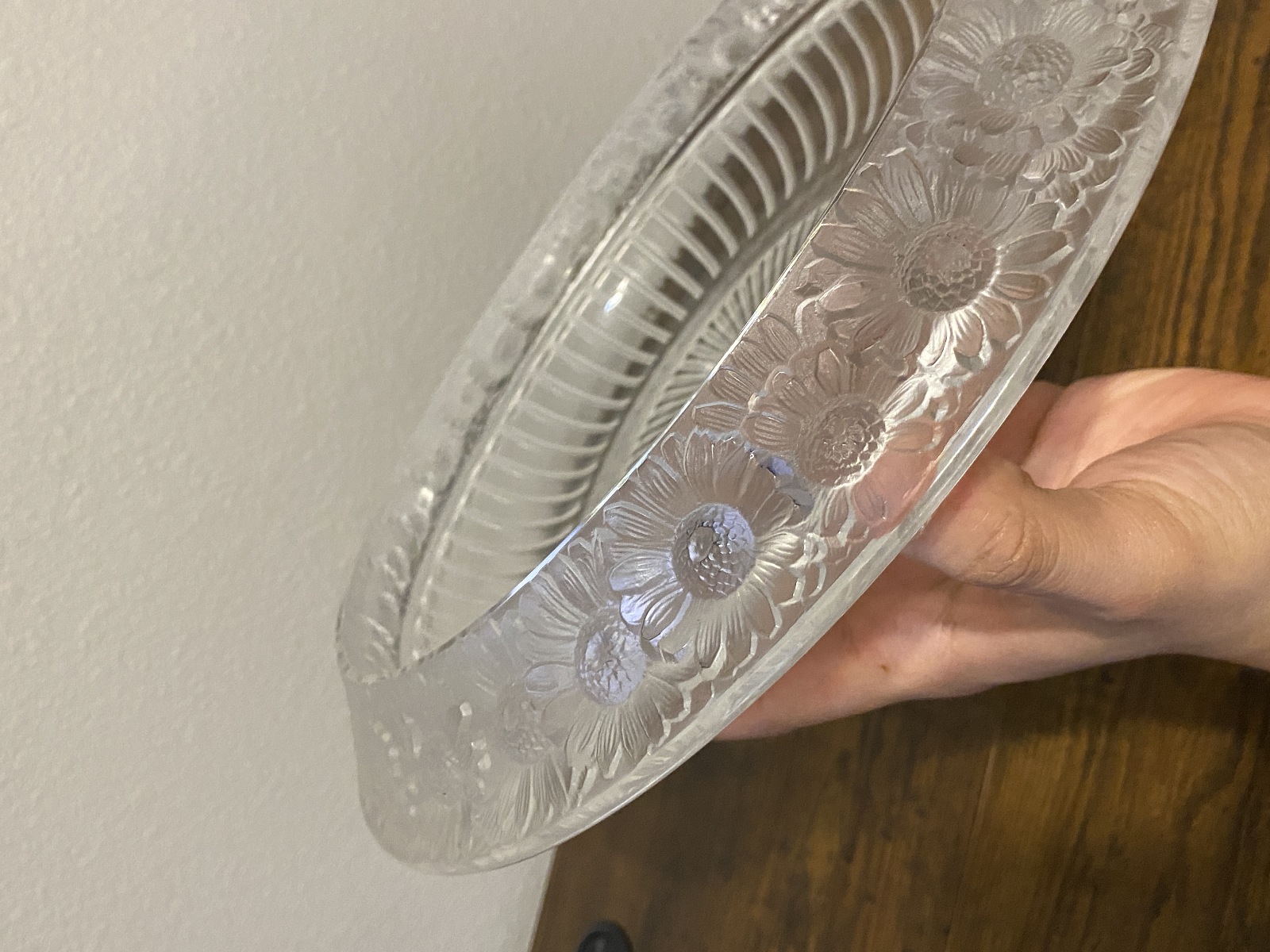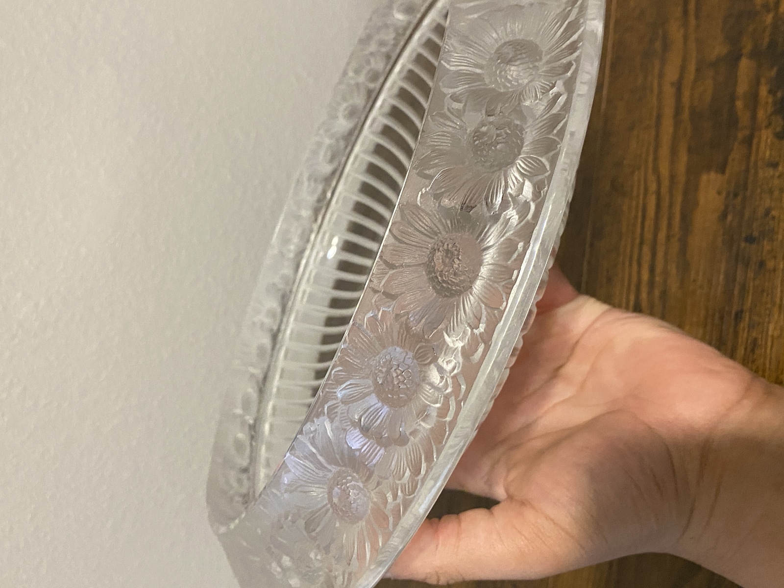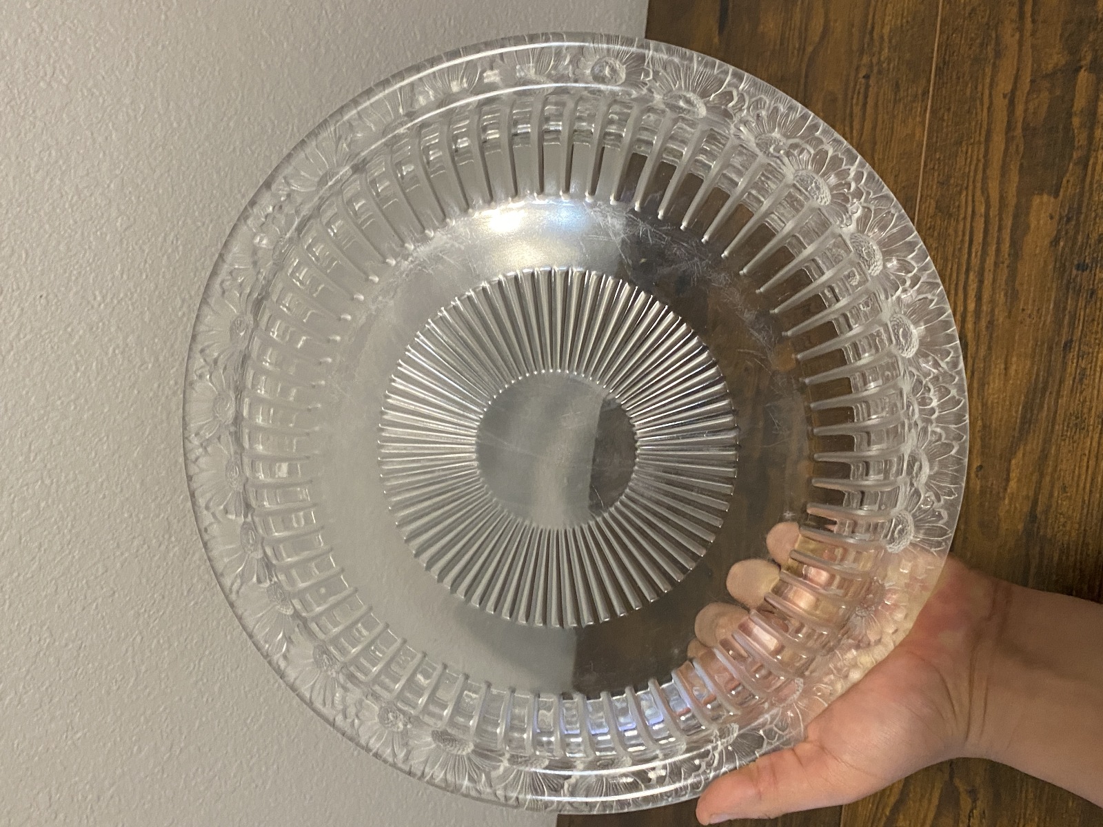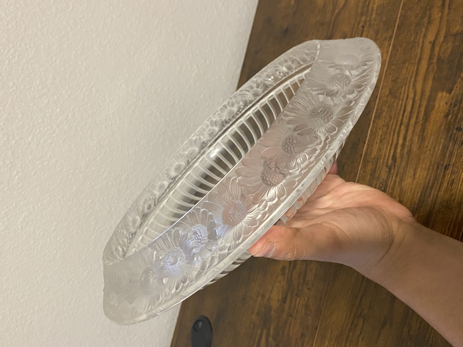 LARGE VTG Lalique Frosted Crystal MARGUERITES Daisy Bowl 13"W SIGNED, FRANCE