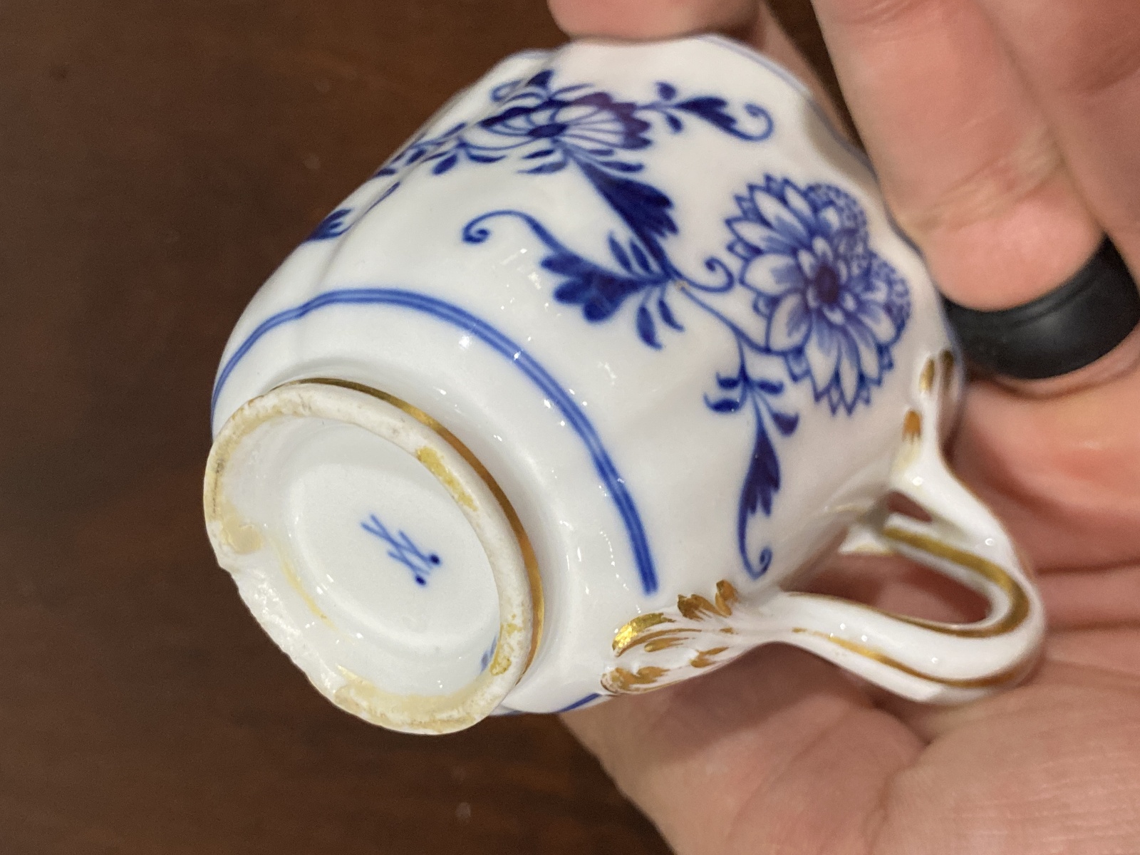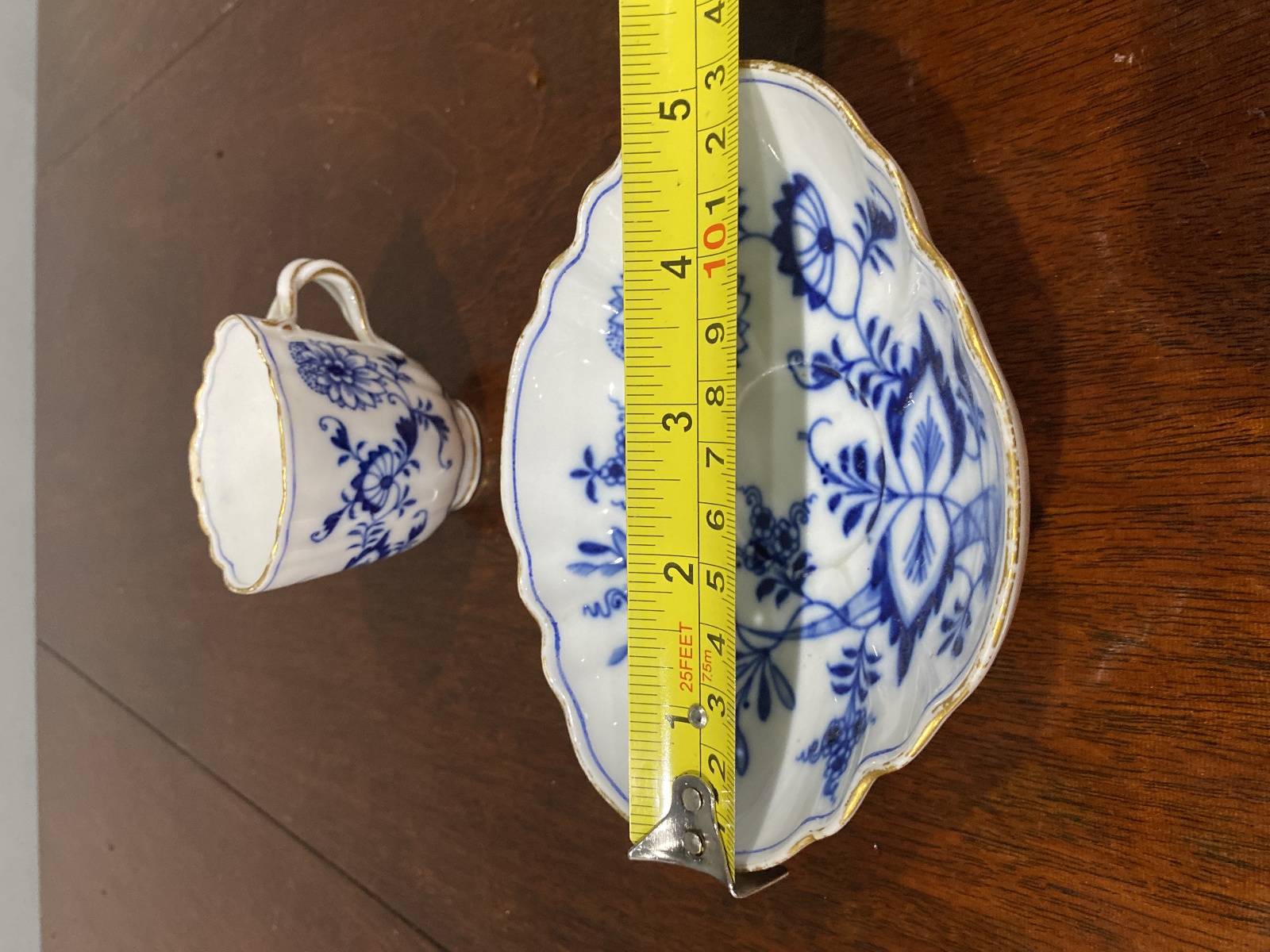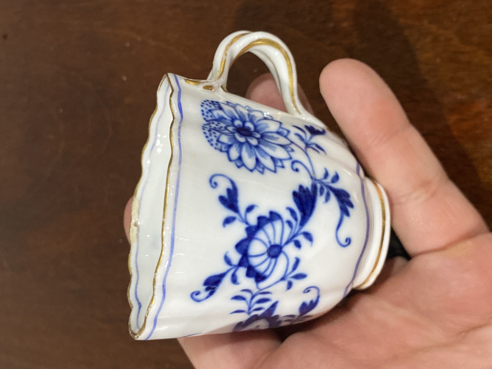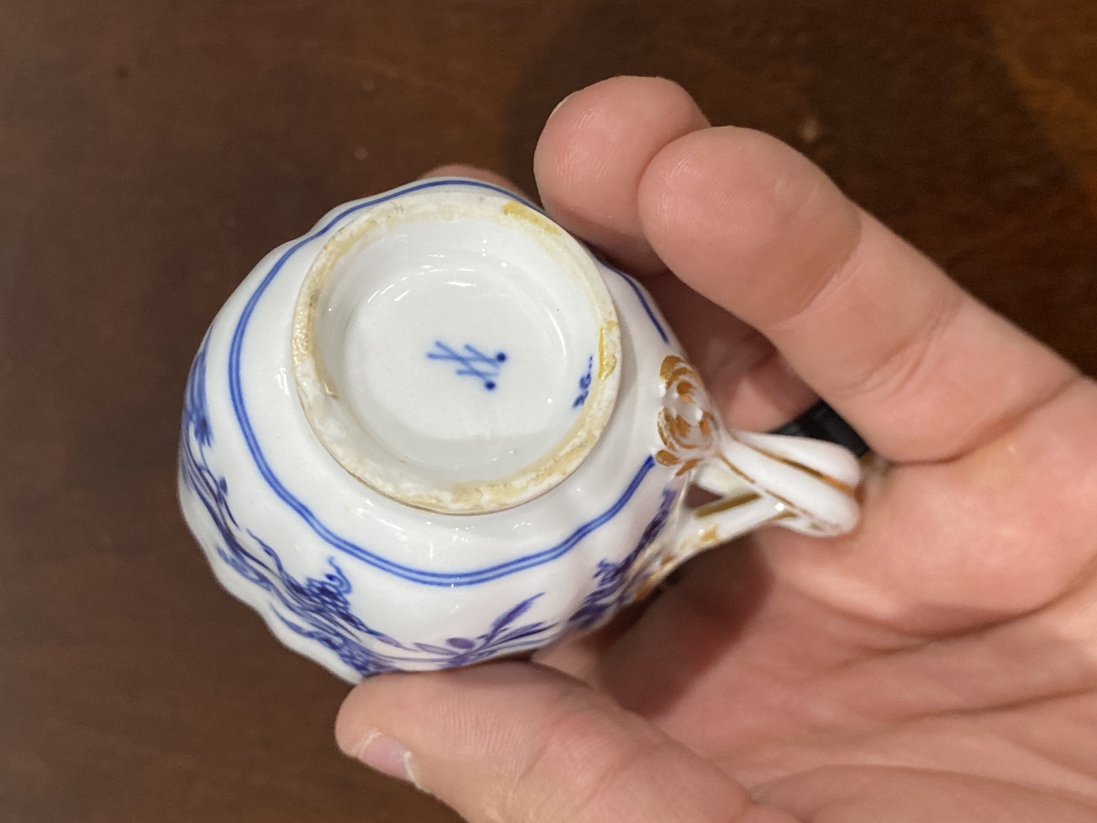 ANTIQUE MEISSEN Gold Gilded BLUE ONION Porcelain Demitasse Tea Cup & Saucer
