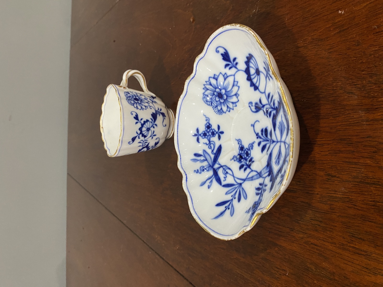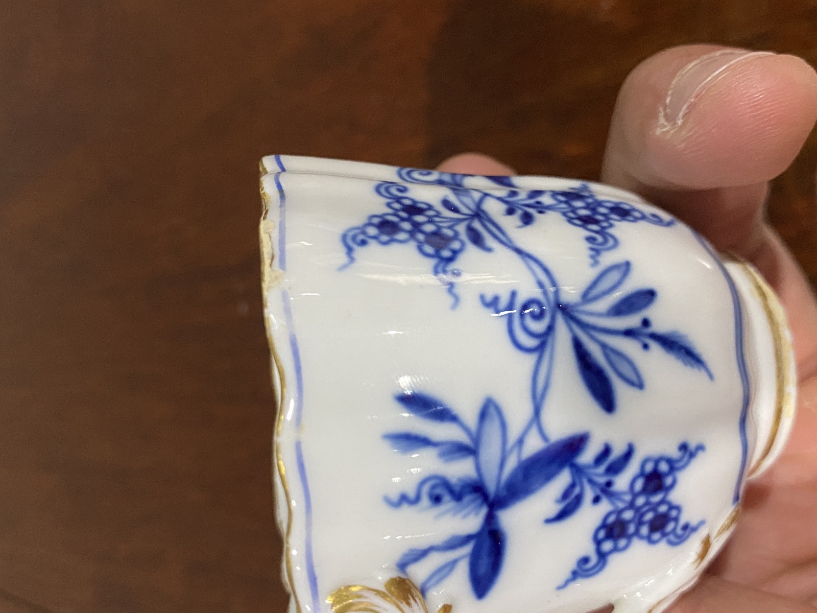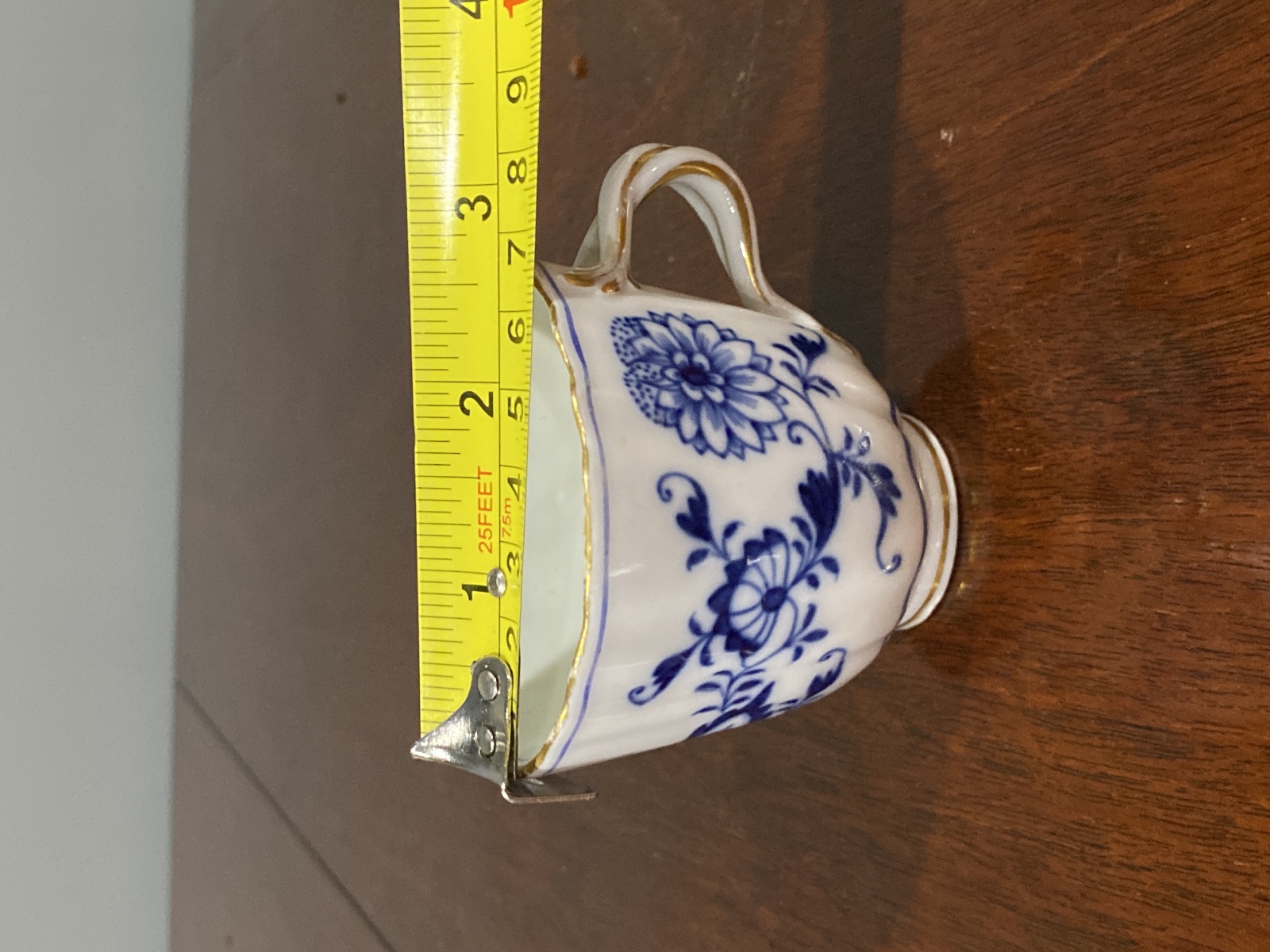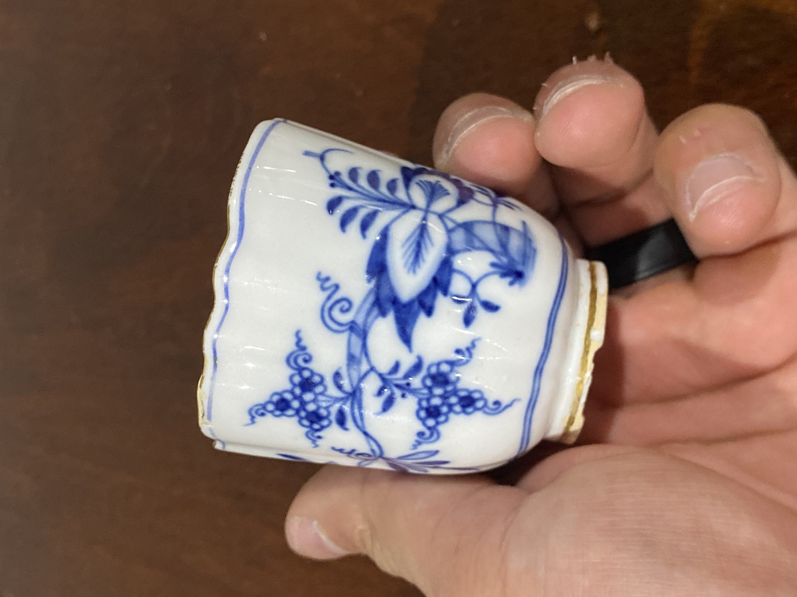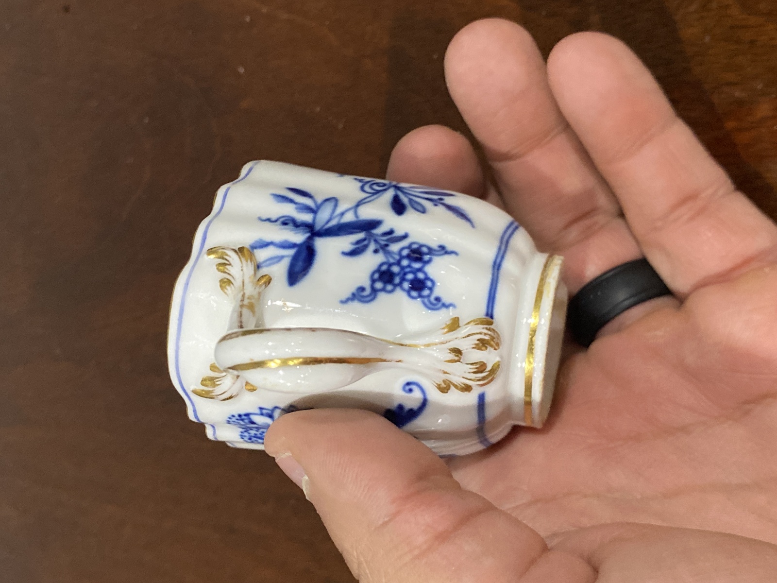 ANTIQUE MEISSEN Gold Gilded BLUE ONION Porcelain Demitasse Tea Cup & Saucer