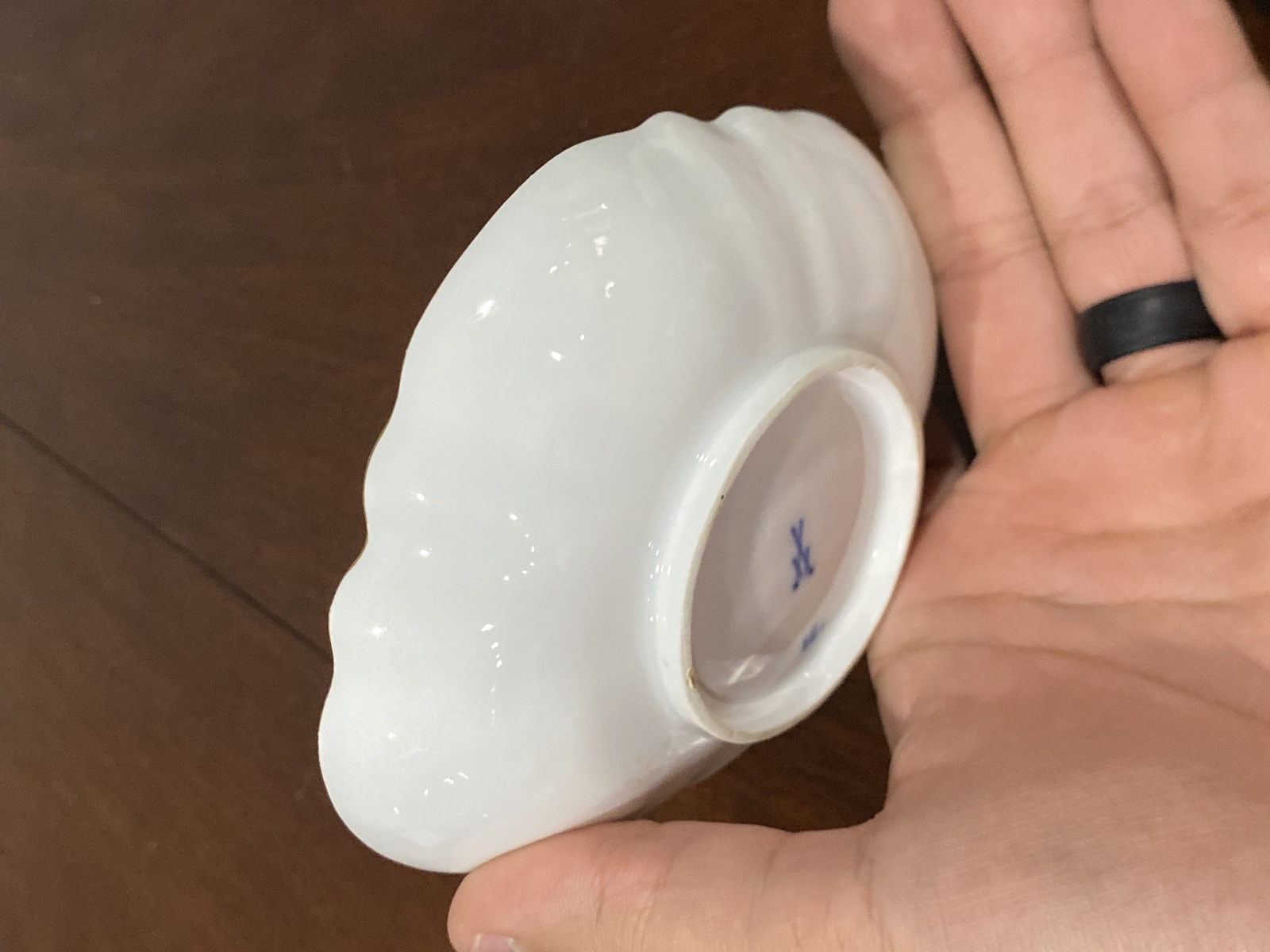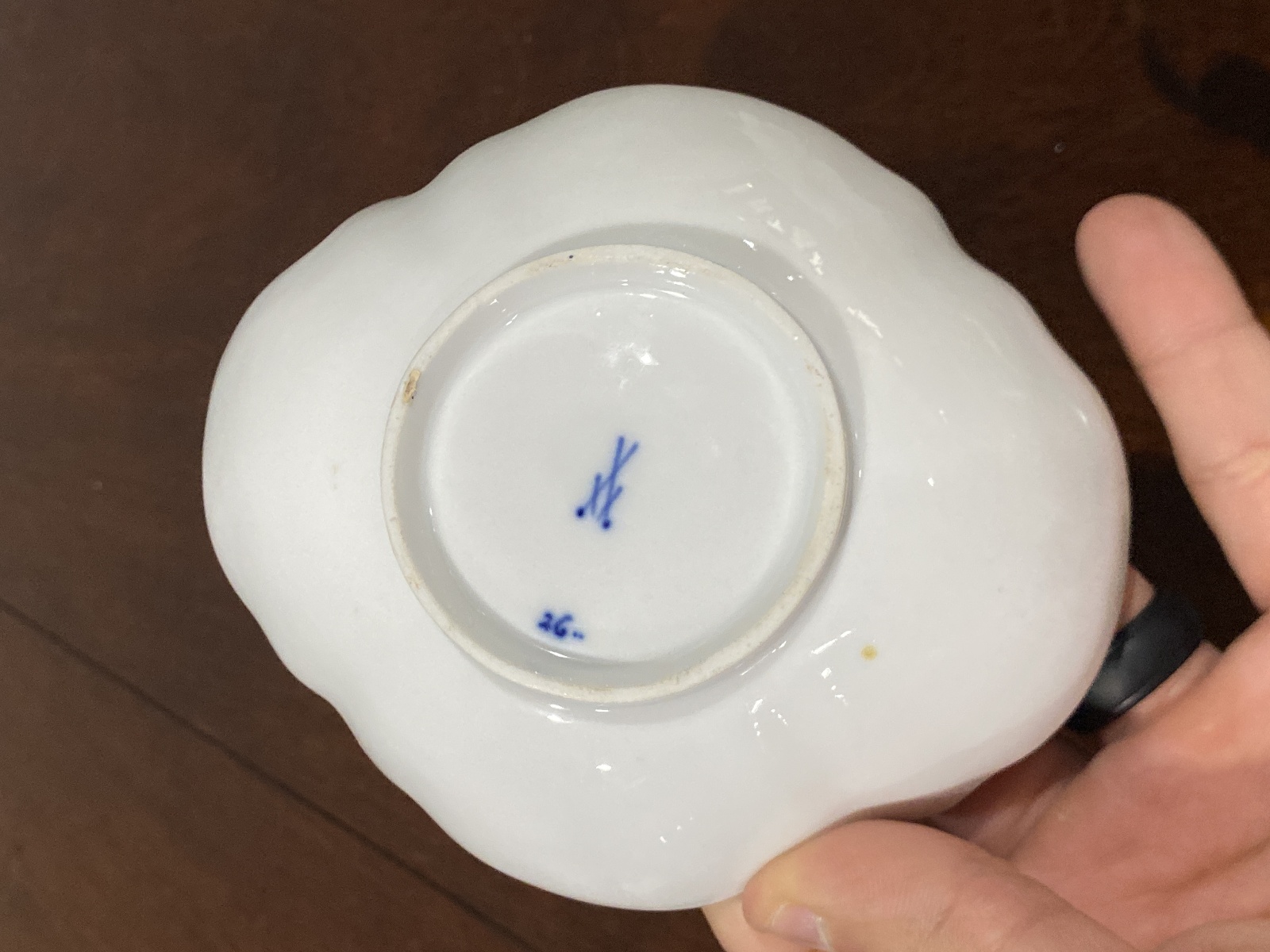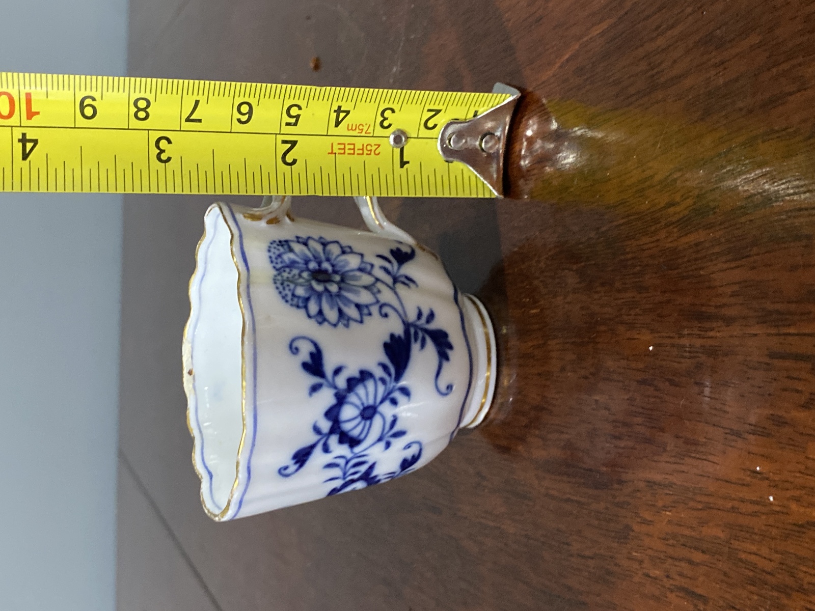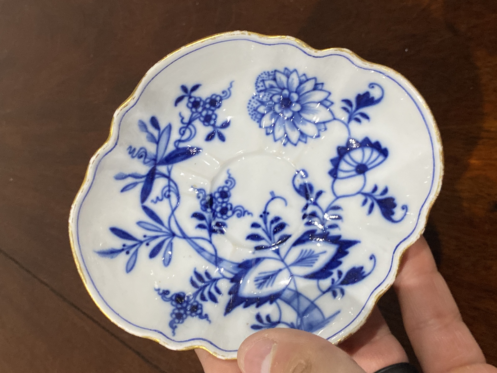 ANTIQUE MEISSEN Gold Gilded BLUE ONION Porcelain Demitasse Tea Cup & Saucer