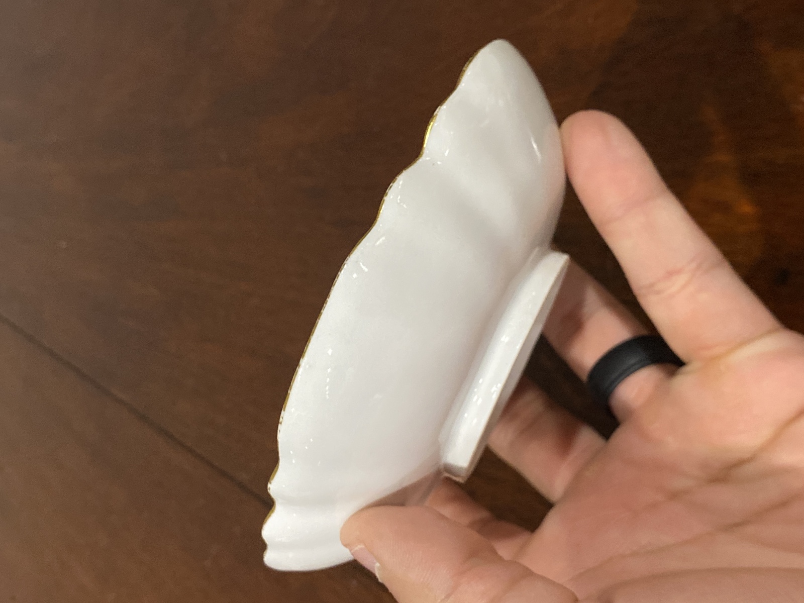 Good used condition (PLEASE NOTE THAT THE CUP HAS SOME CHIPPING ON THE BASE, AND SOME PAINT IT LOOKS LIKE ON THE RIM, NOTED IN THE PHOTOS, AND THERE IS light scratching on both pieces from their many years of love(age) and wear to the paint, but overall in both pieces in good shape for their age). (Please refer back to the photos for condition and feel free to message me if you have any questions. Thank you)!