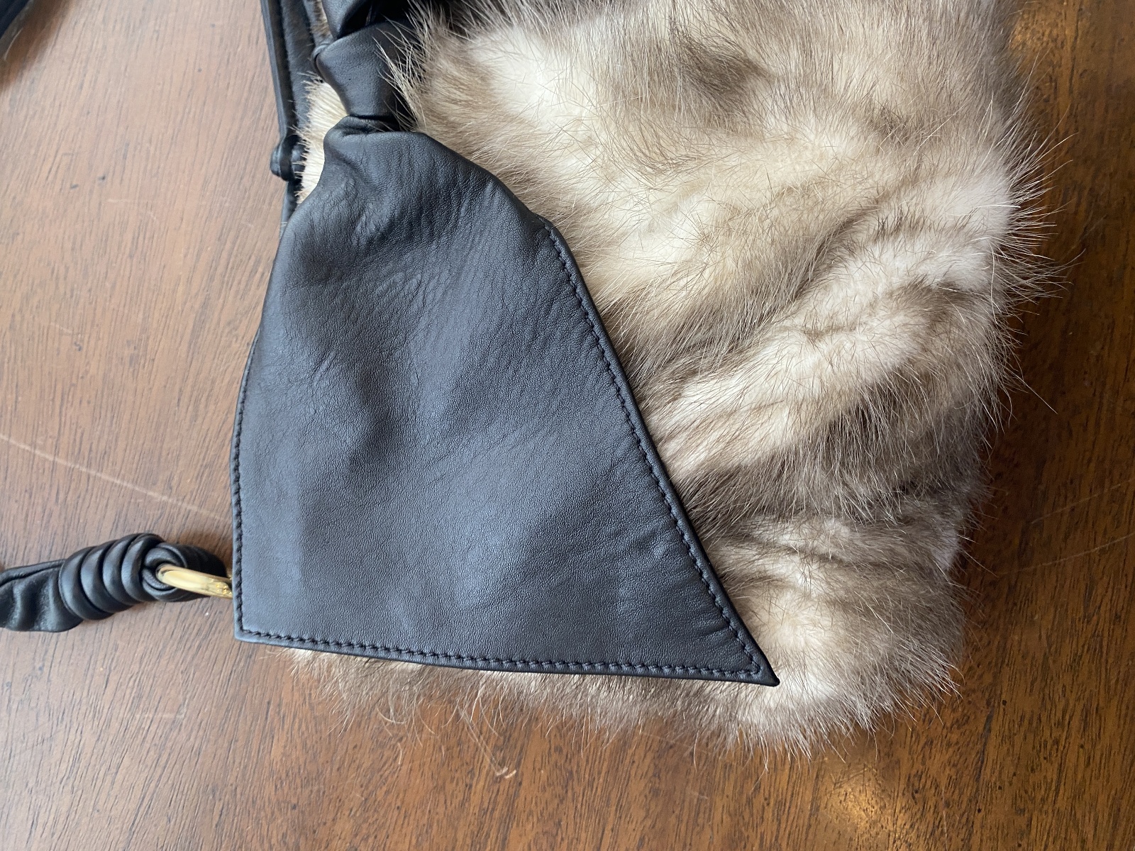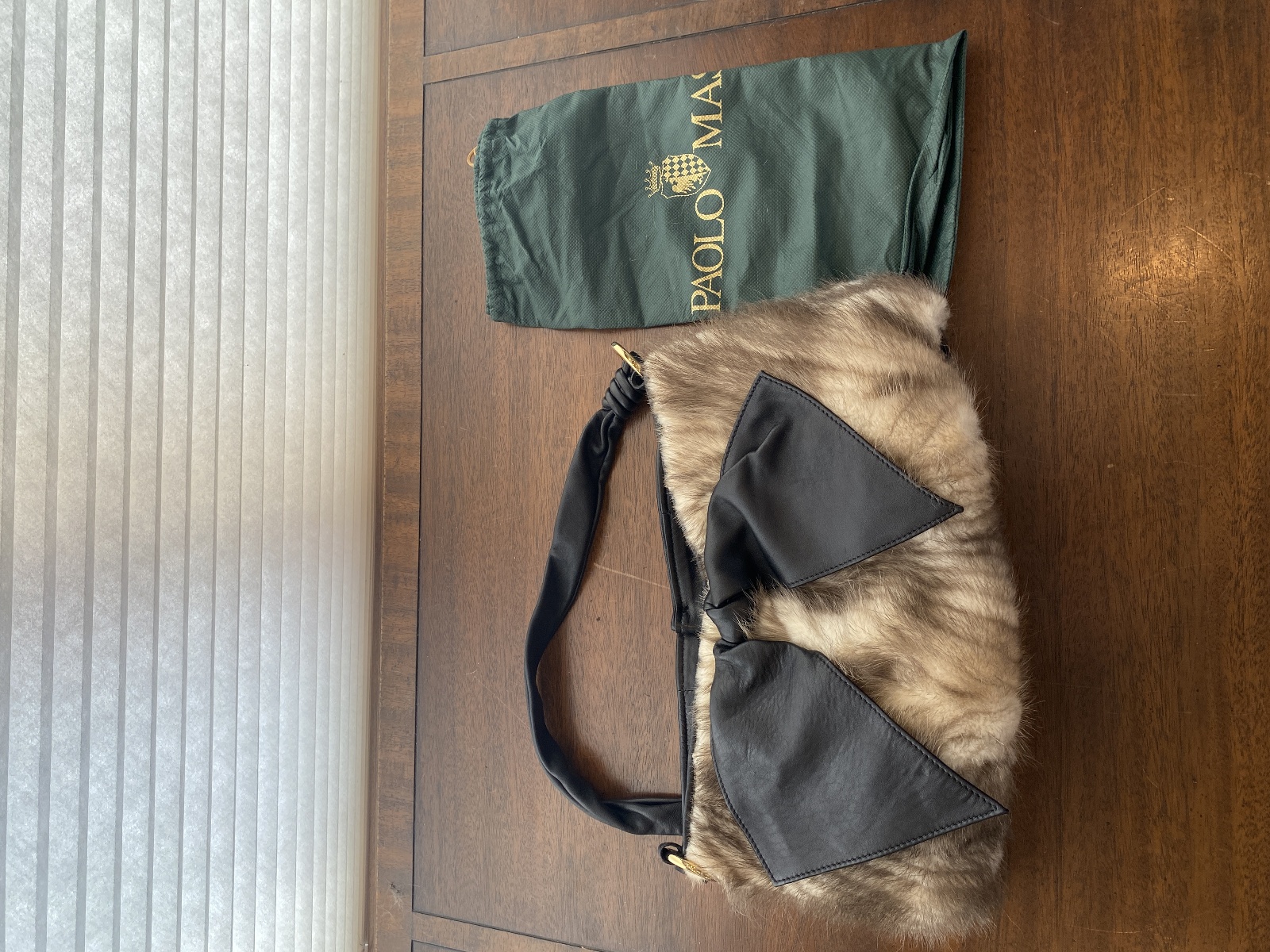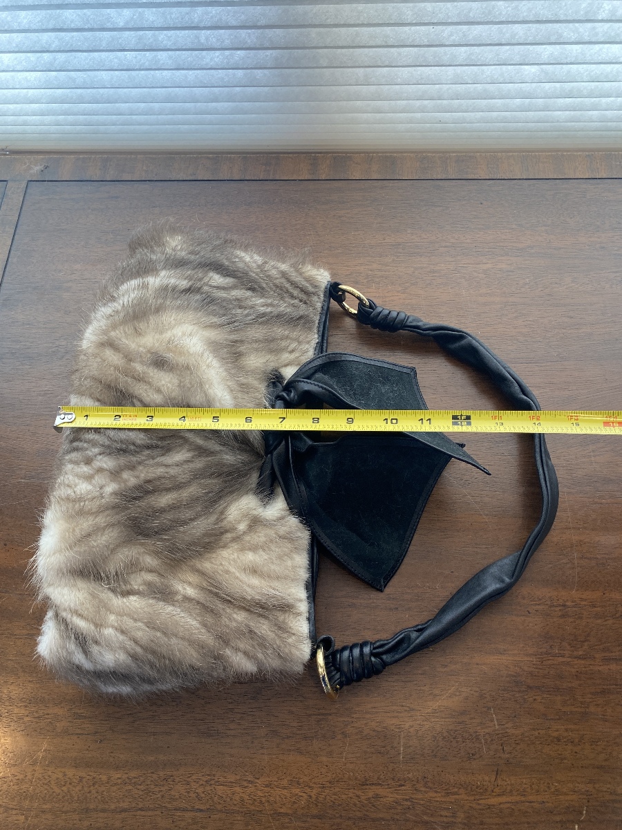 PAOLO MASI Mink Fur Genuine Leather Purse/Hand Bag MADE IN ITALY 15"L