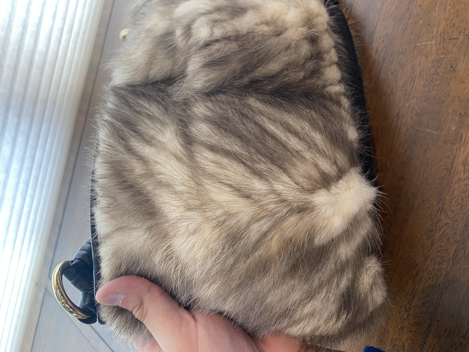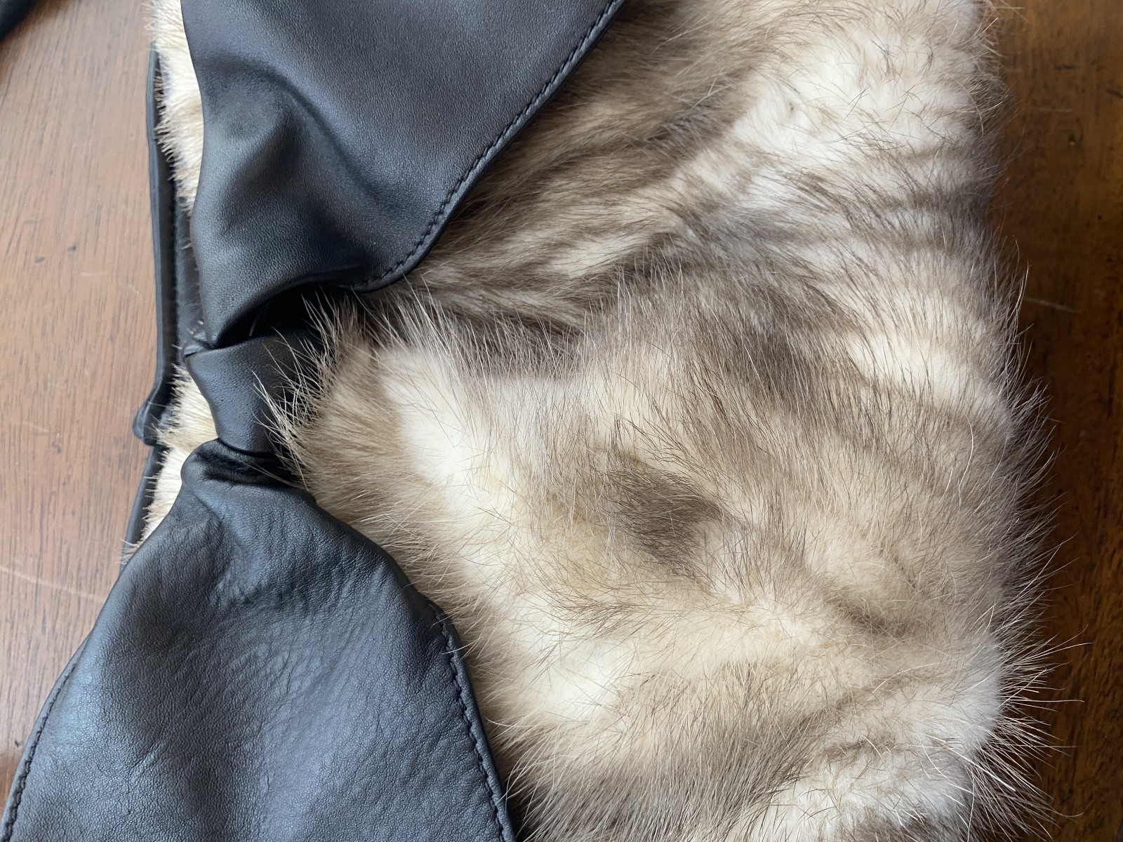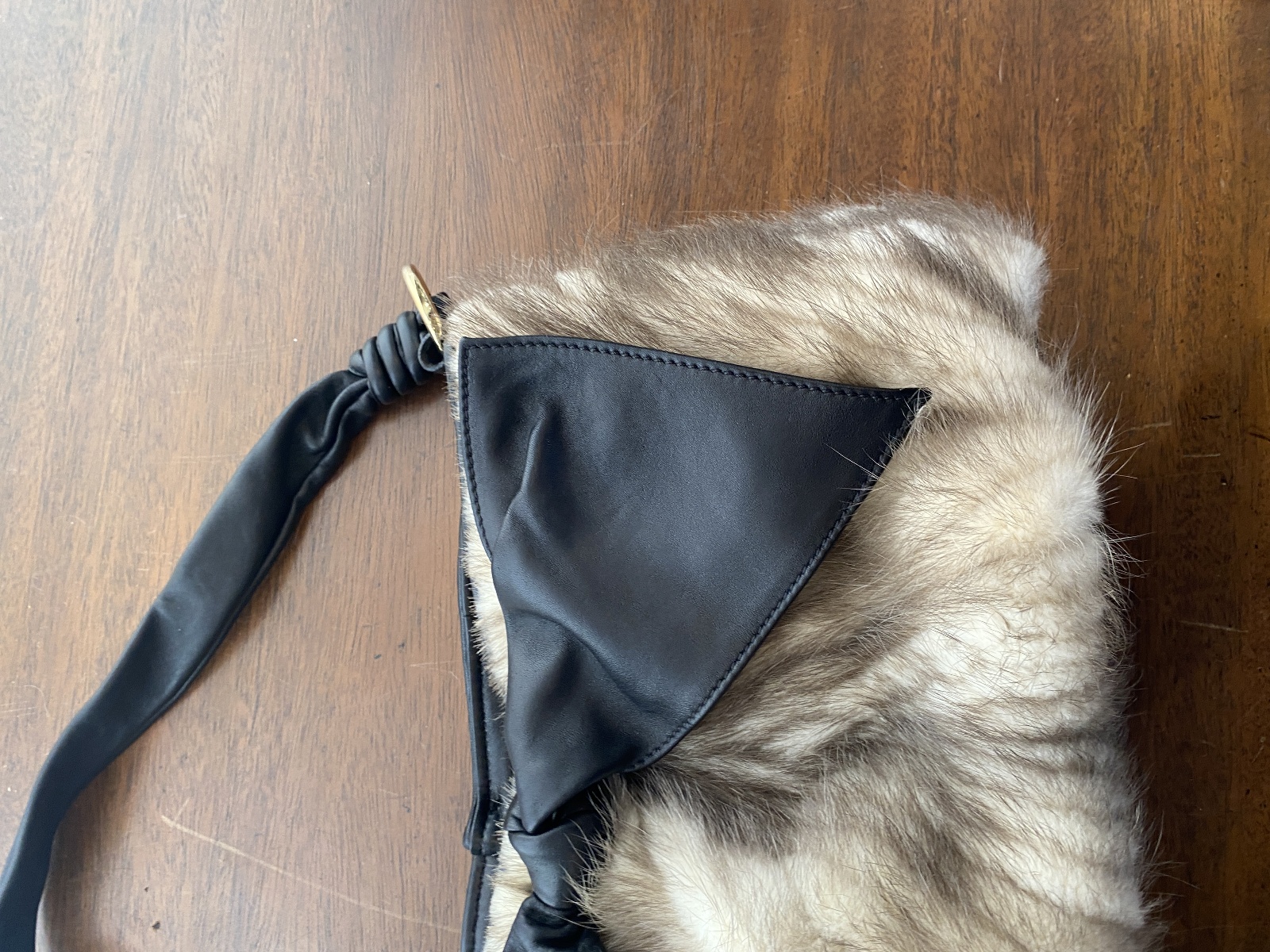 PAOLO MASI Mink Fur Genuine Leather Purse/Hand Bag MADE IN ITALY 15"L