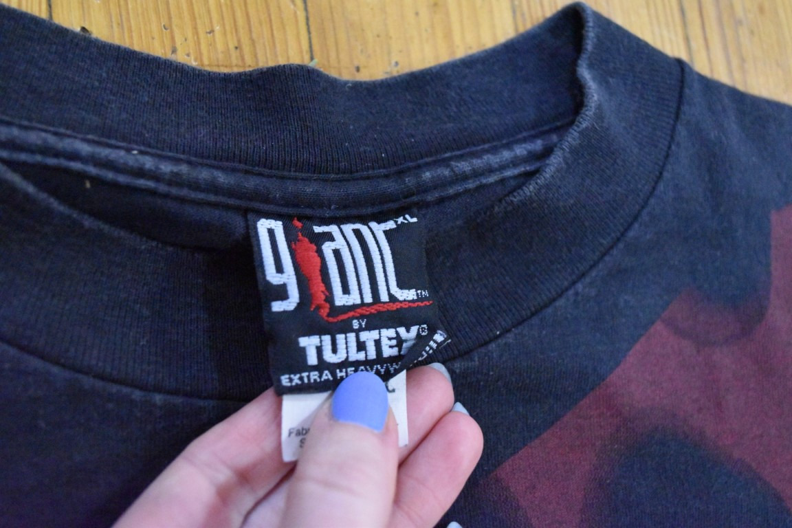 Up for auction is an incredible authentic 1990's Vintage Nirvana Heart Shaped Box T-Shirt with Original Giant by Tultex Tag. Size XL. In very good condition! No rips, tears, or stains. Seams and colors look good. Very minimal cracking. I will upload a lot of close up photos.