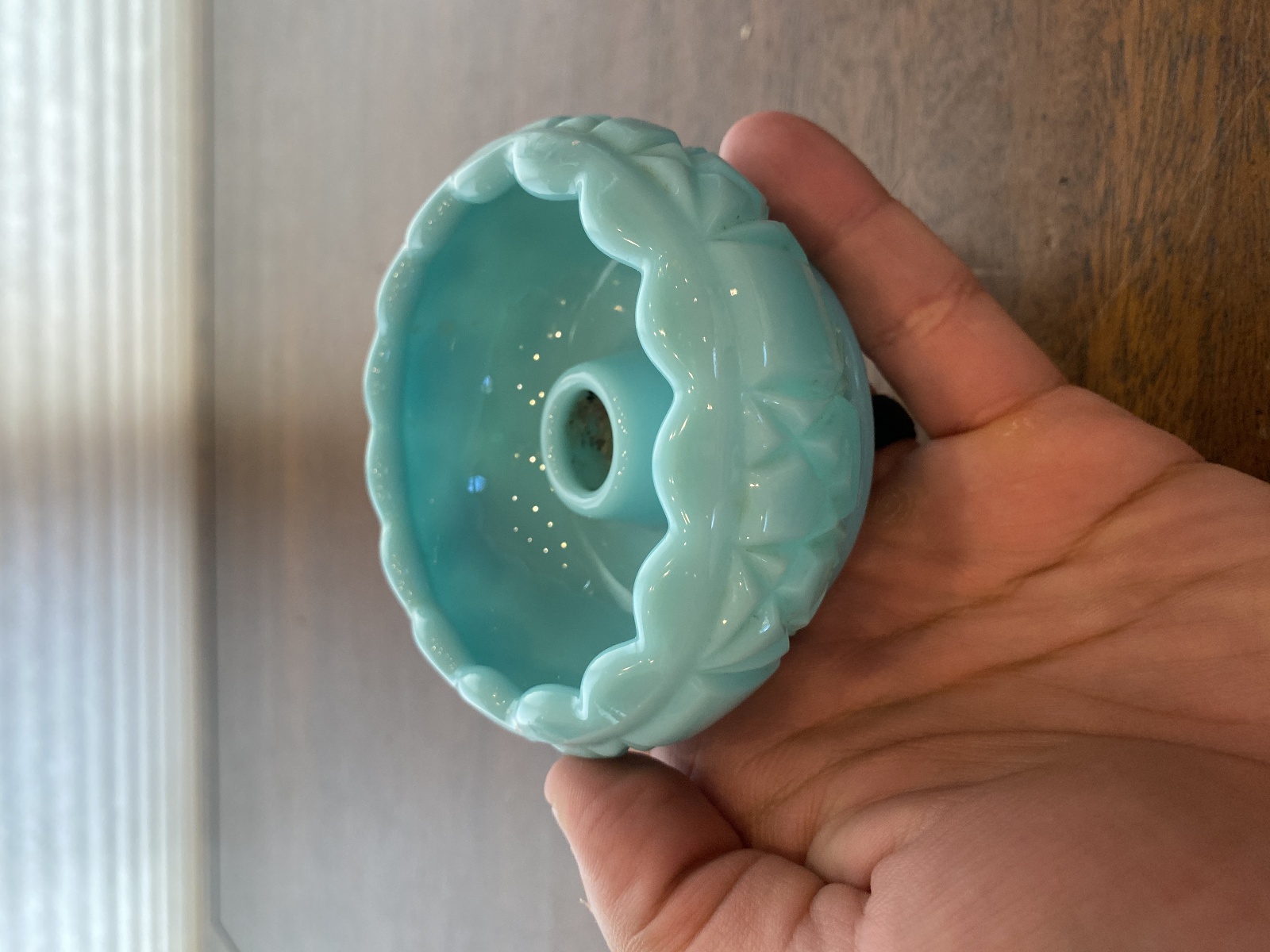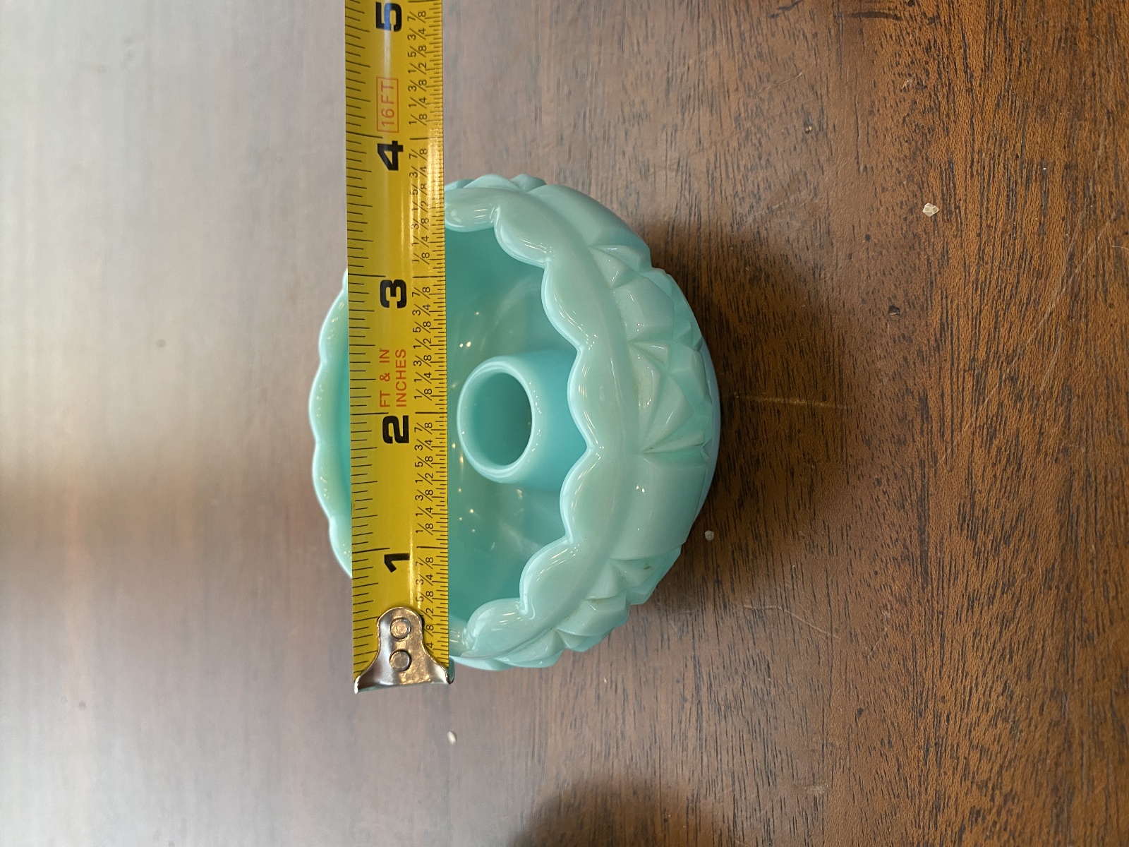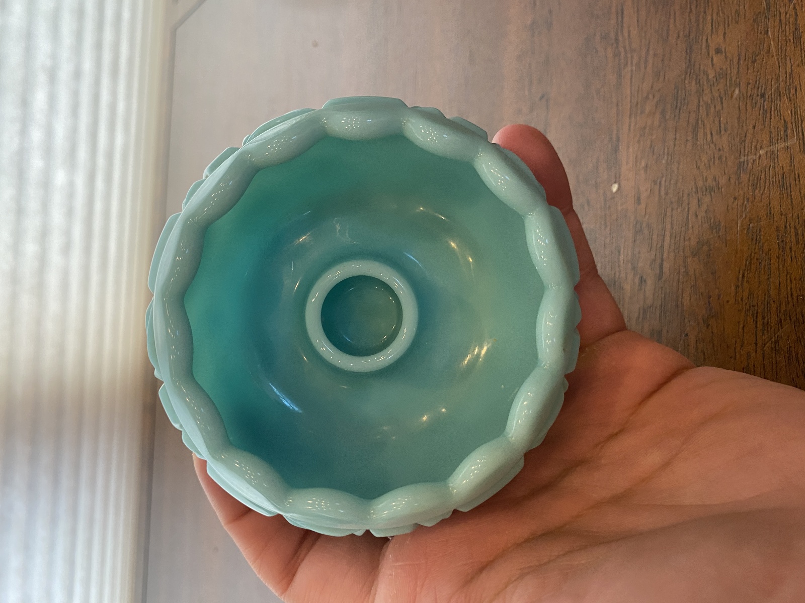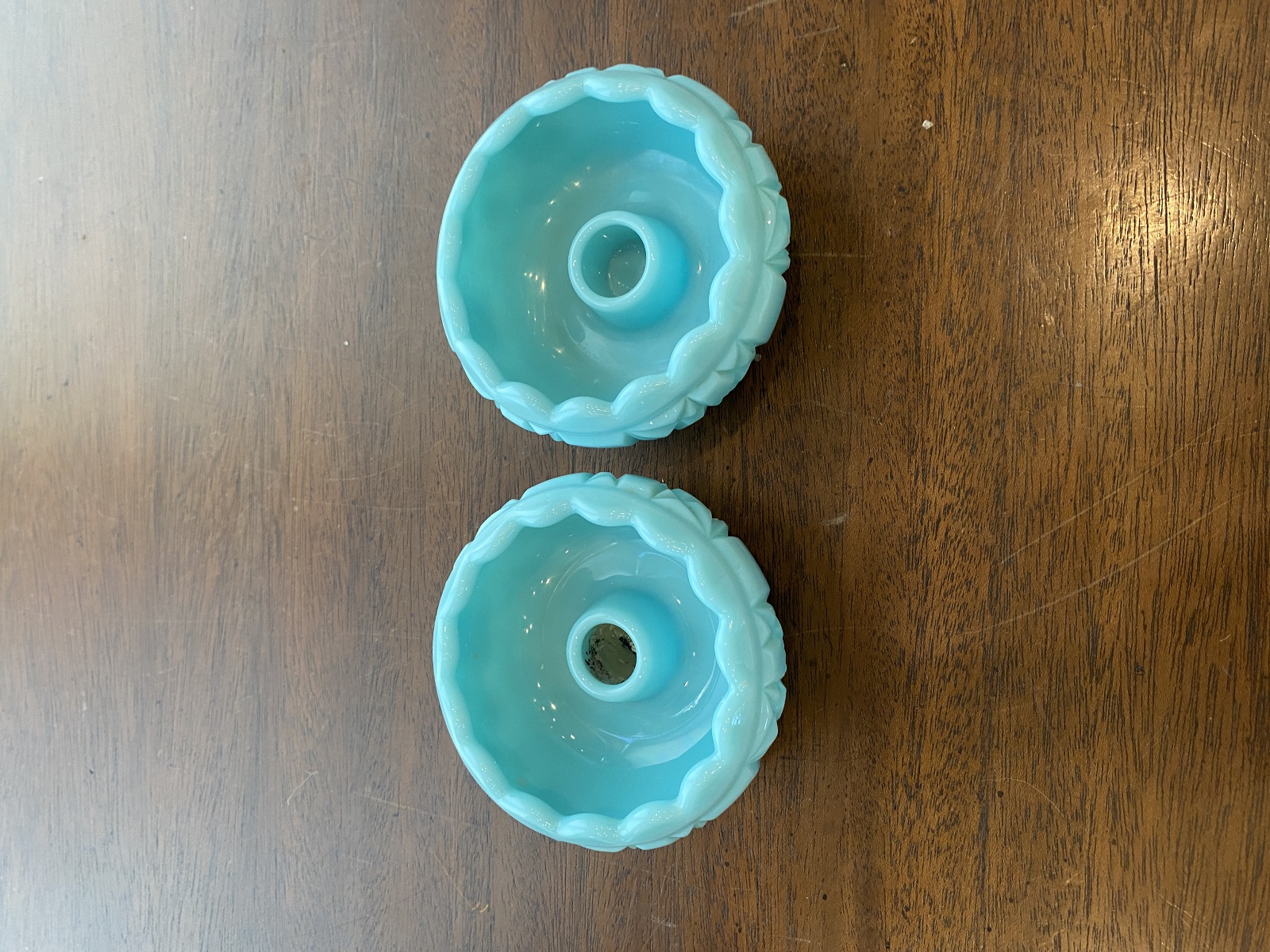 VTG PAIR Of FENTON Turquoise BLOCK & STAR Glass Candle Holders 3.75"W