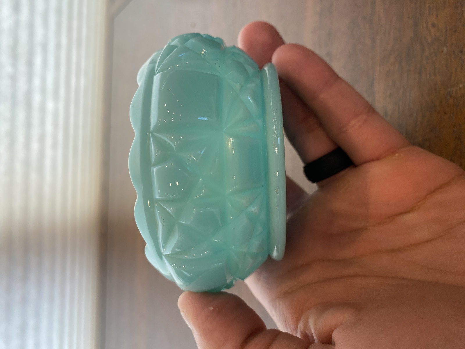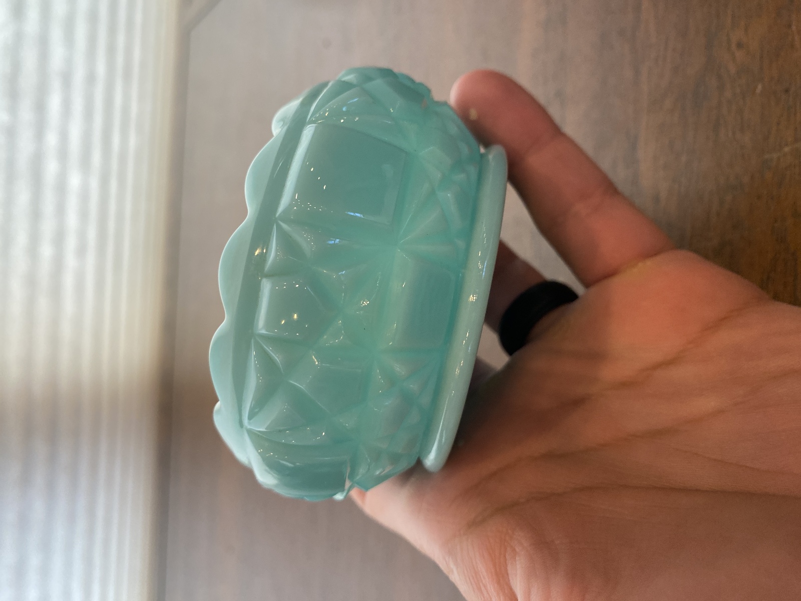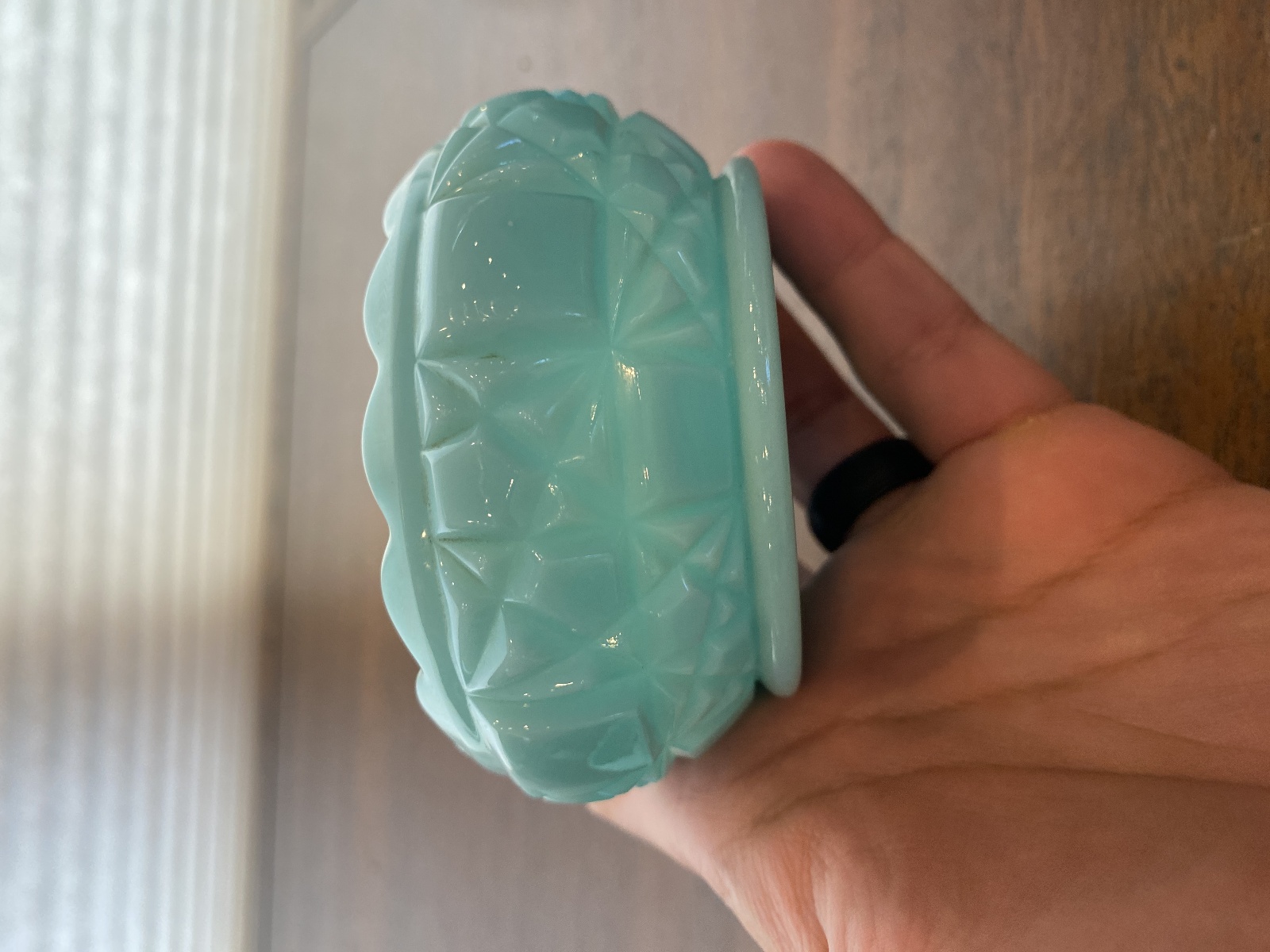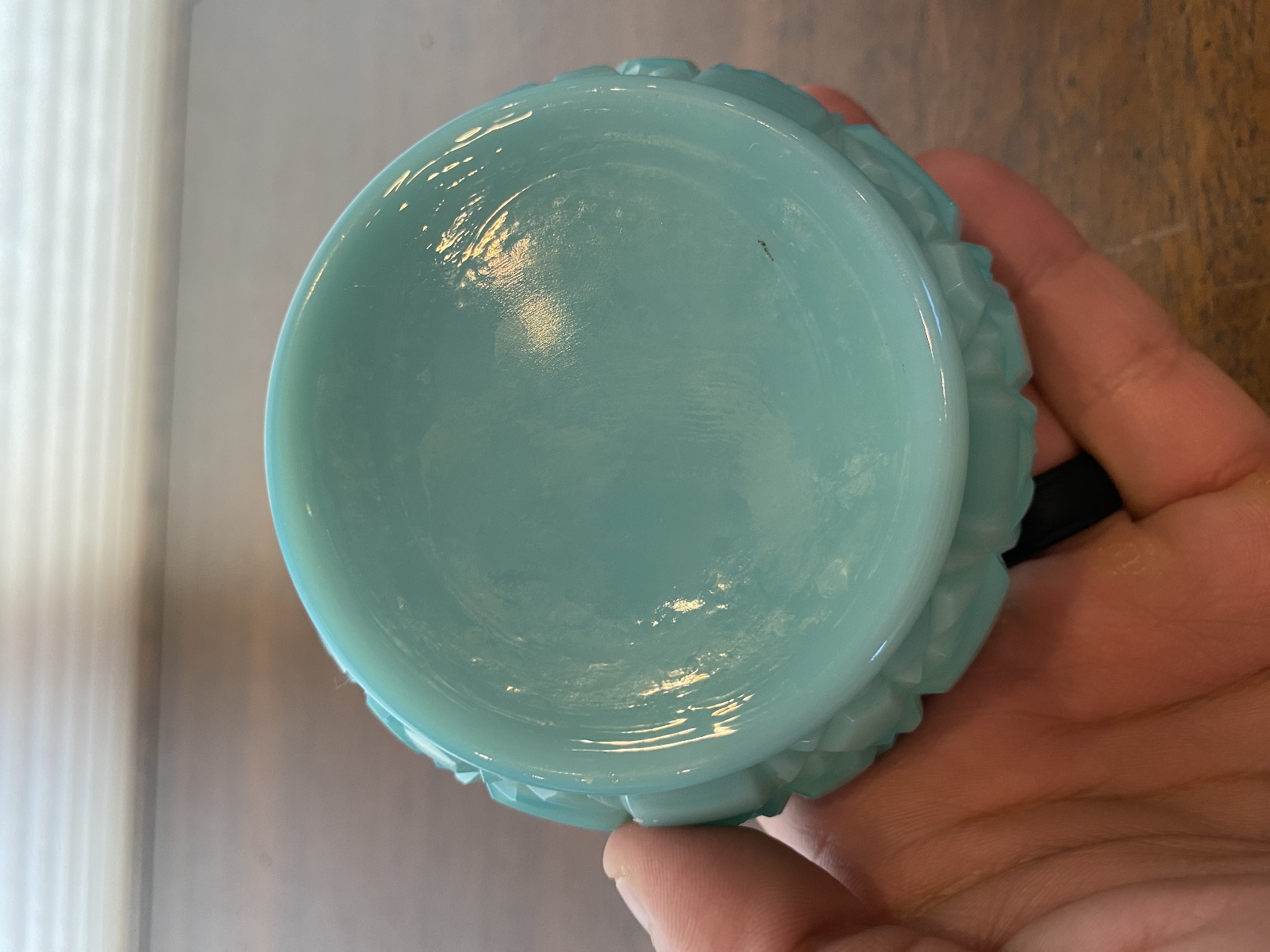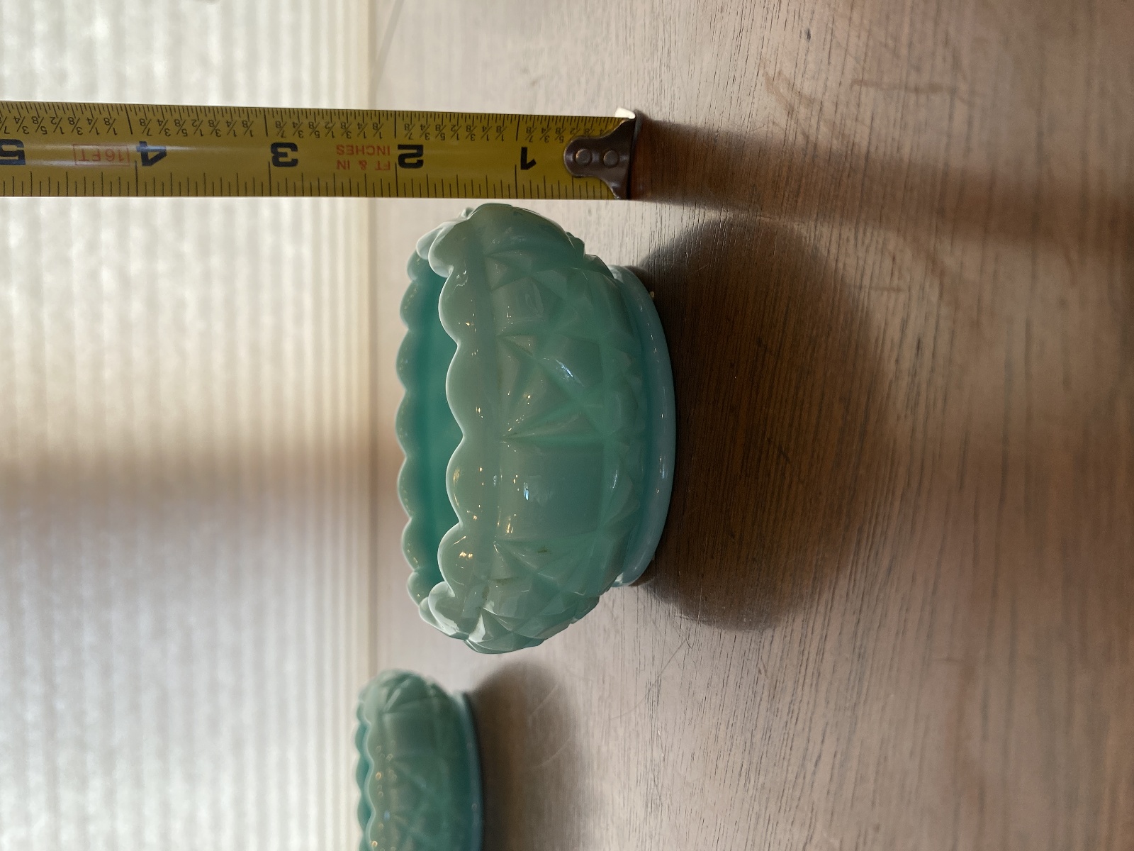 VTG PAIR Of FENTON Turquoise BLOCK & STAR Glass Candle Holders 3.75"W