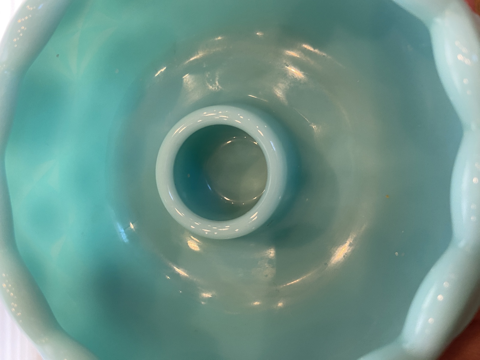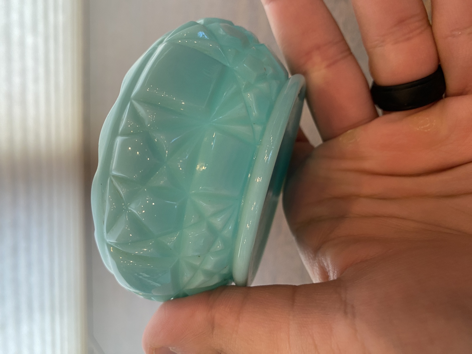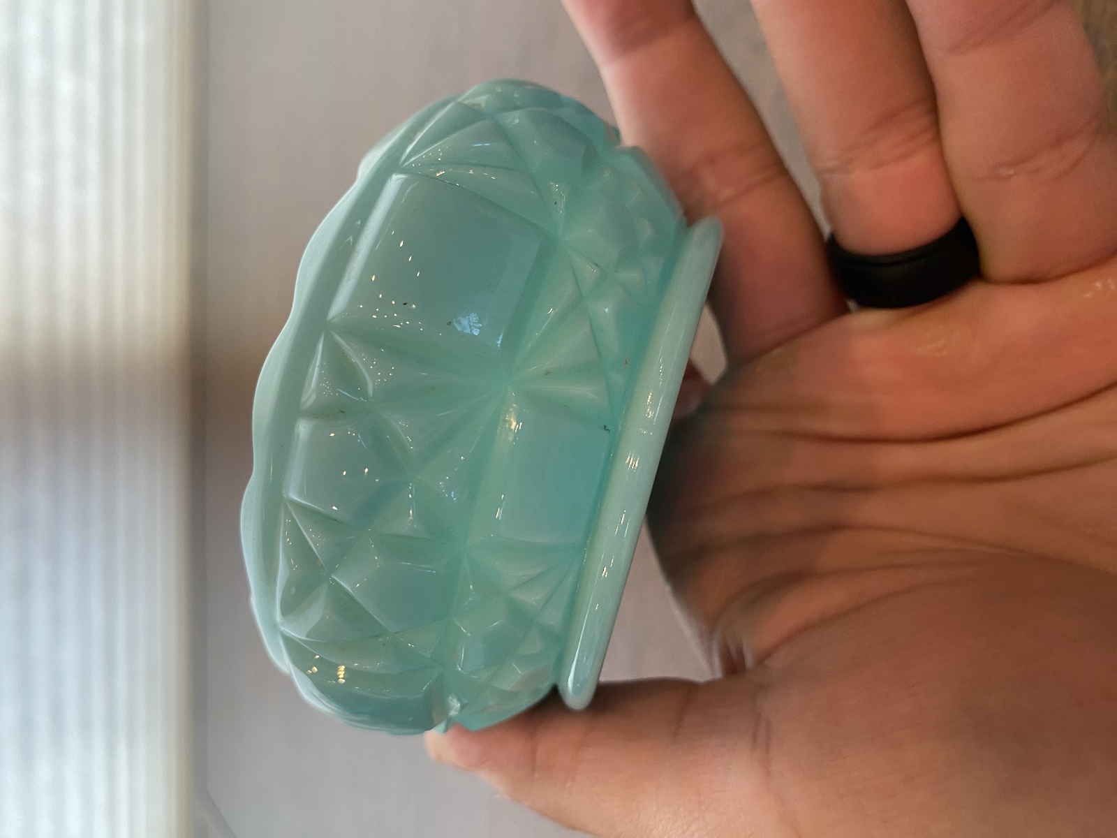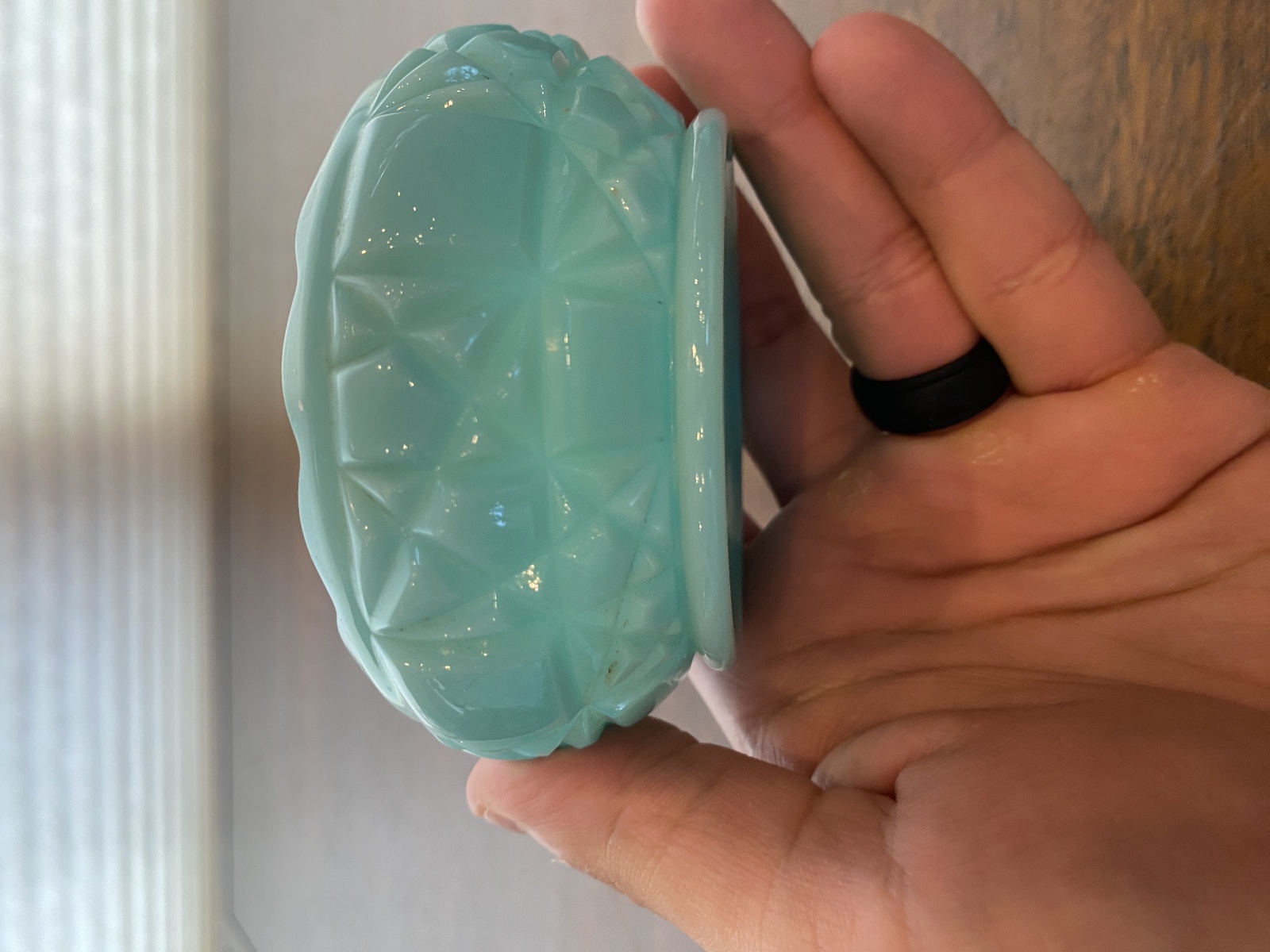 VTG PAIR Of FENTON Turquoise BLOCK & STAR Glass Candle Holders 3.75"W