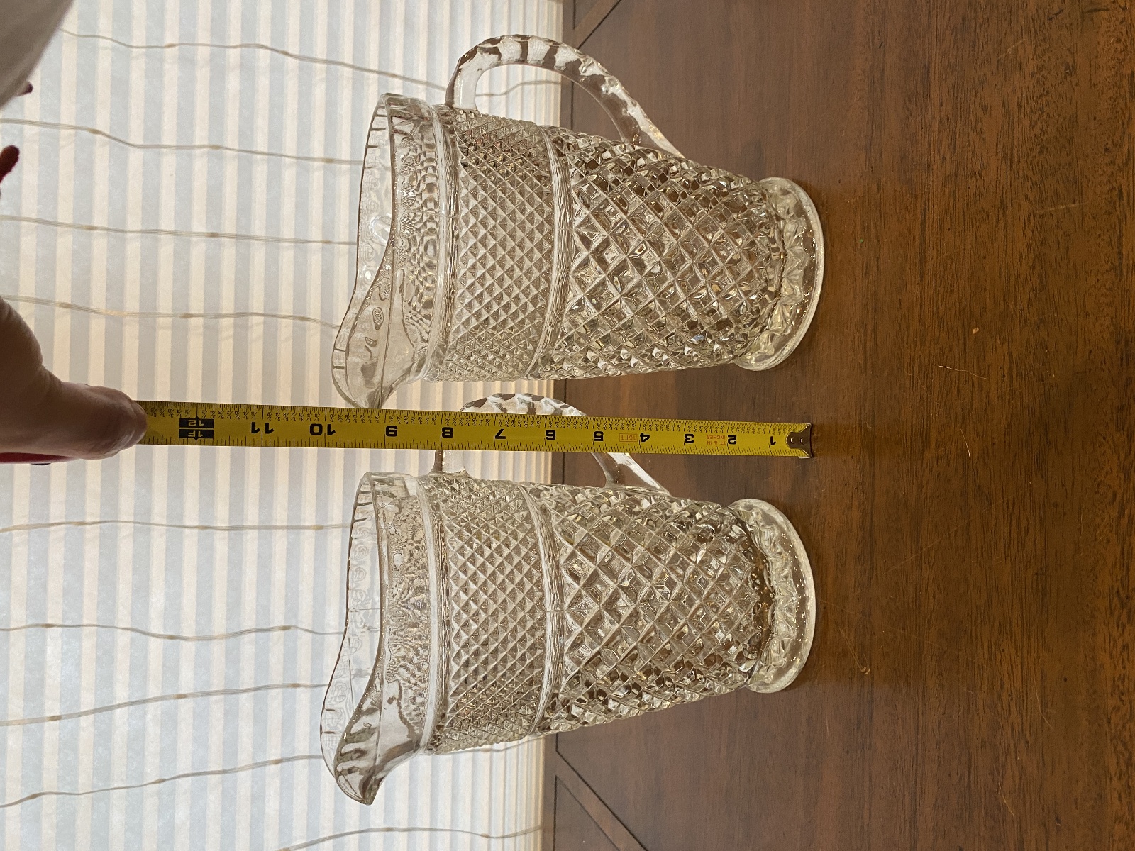 PAIR Of VTG Clear Anchor Hocking WEXFORD Pressed Glass Water Pitchers 9.75"H