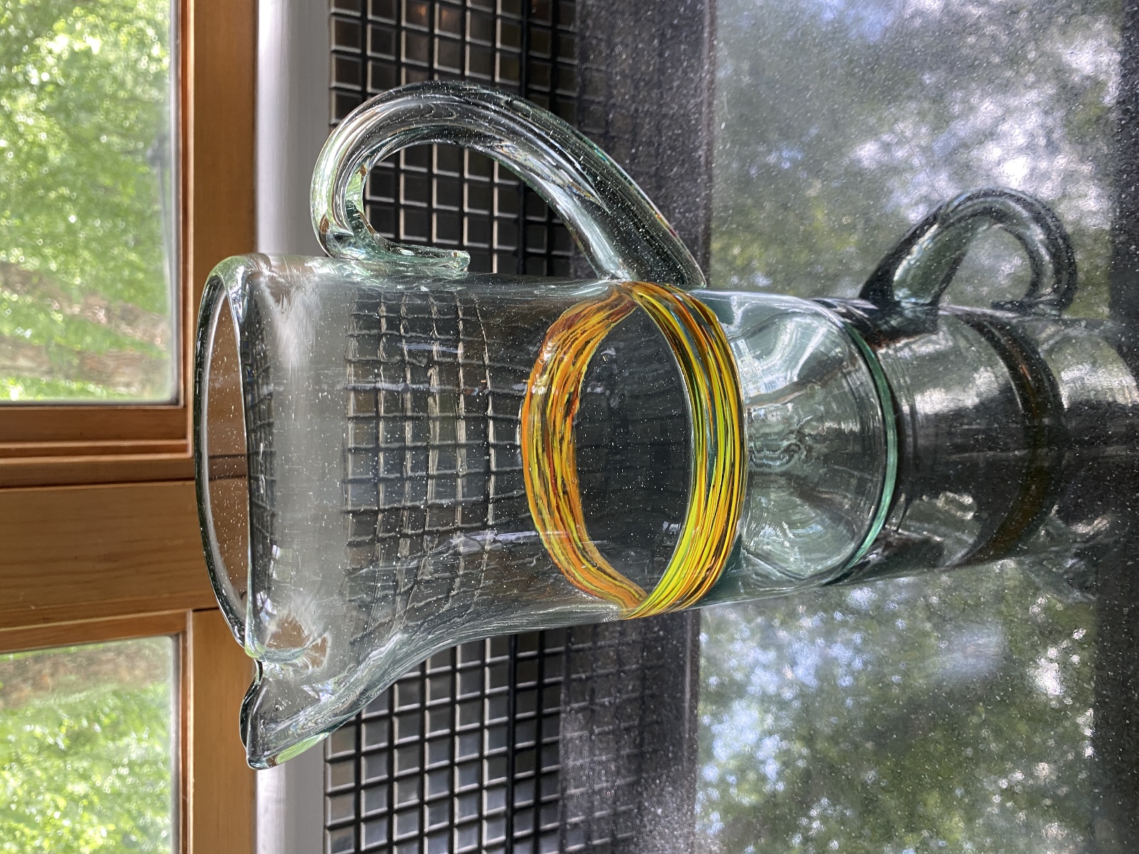 All pieces are in great condition (Please refer back to the photos for condition and feel free to message me if you have any questions. Thank you)! Approximate measurements 8.5"L x 4.5"W x 9"H(Pitcher) 3.5"W x 3.5"H(Cups) . 100% of the proceeds go to the registered non profit Cards of Love Inc. and with your purchase you are helping raise money to fund scholarships for at risk youth. Thank you!