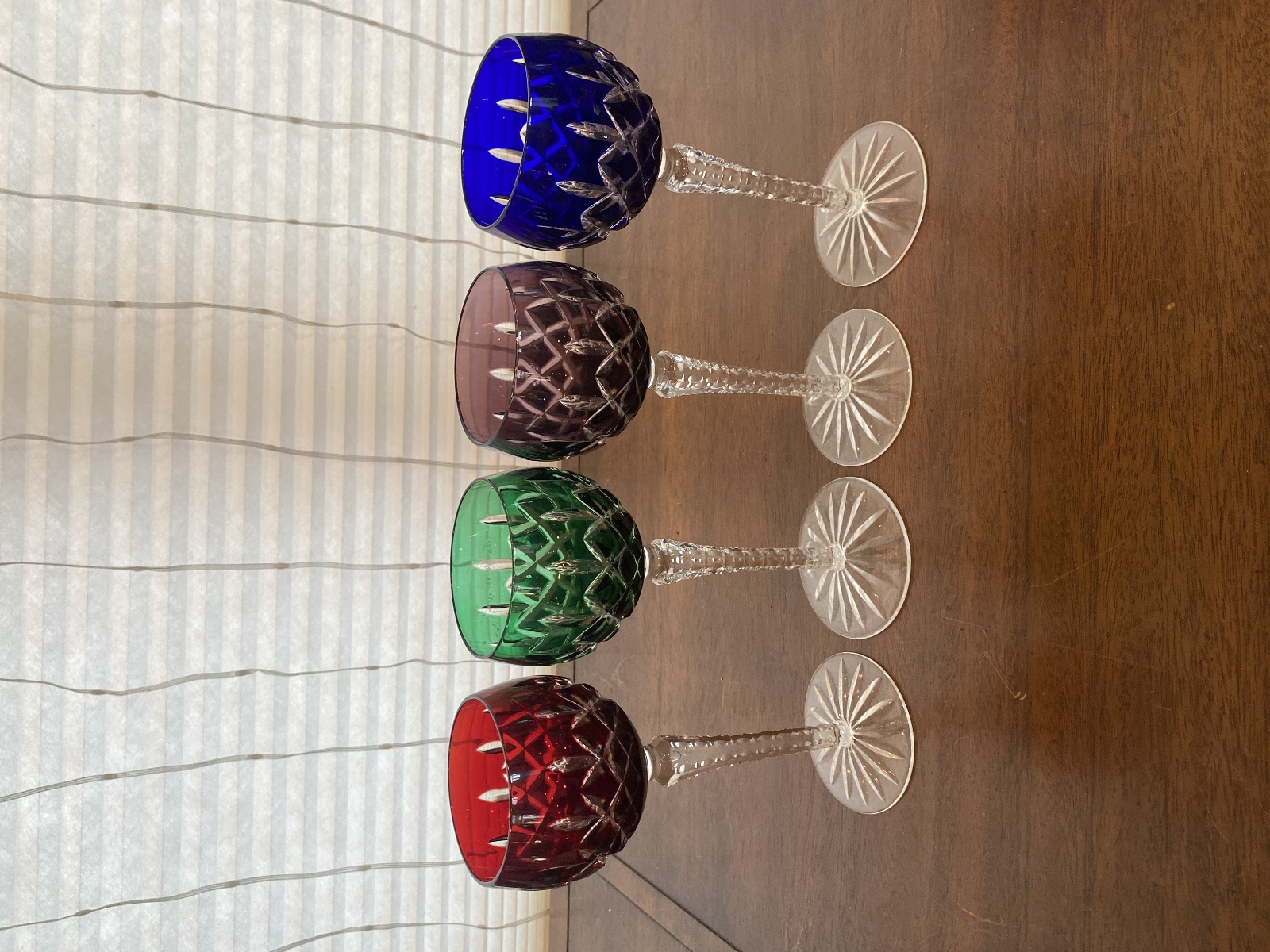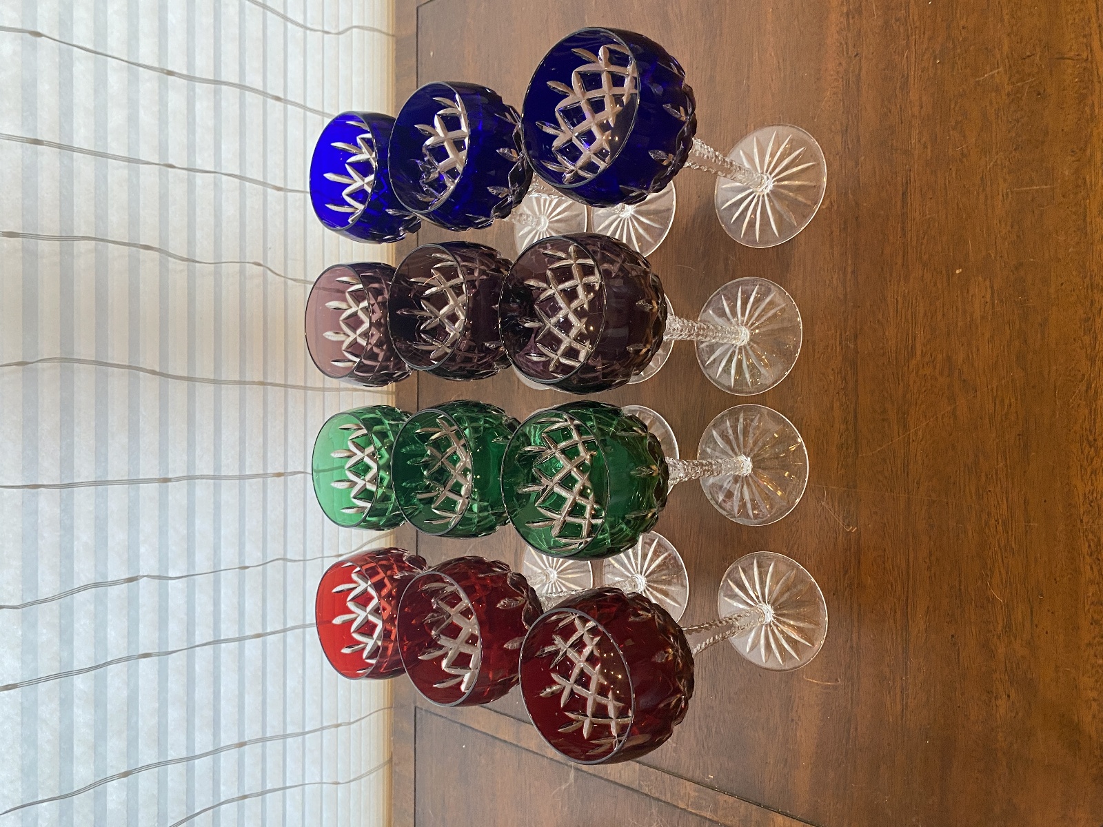 SET(12) AJKA Arabella Multicolored Cut To Clear Crystal Hock Wine Glasses 8.25"H