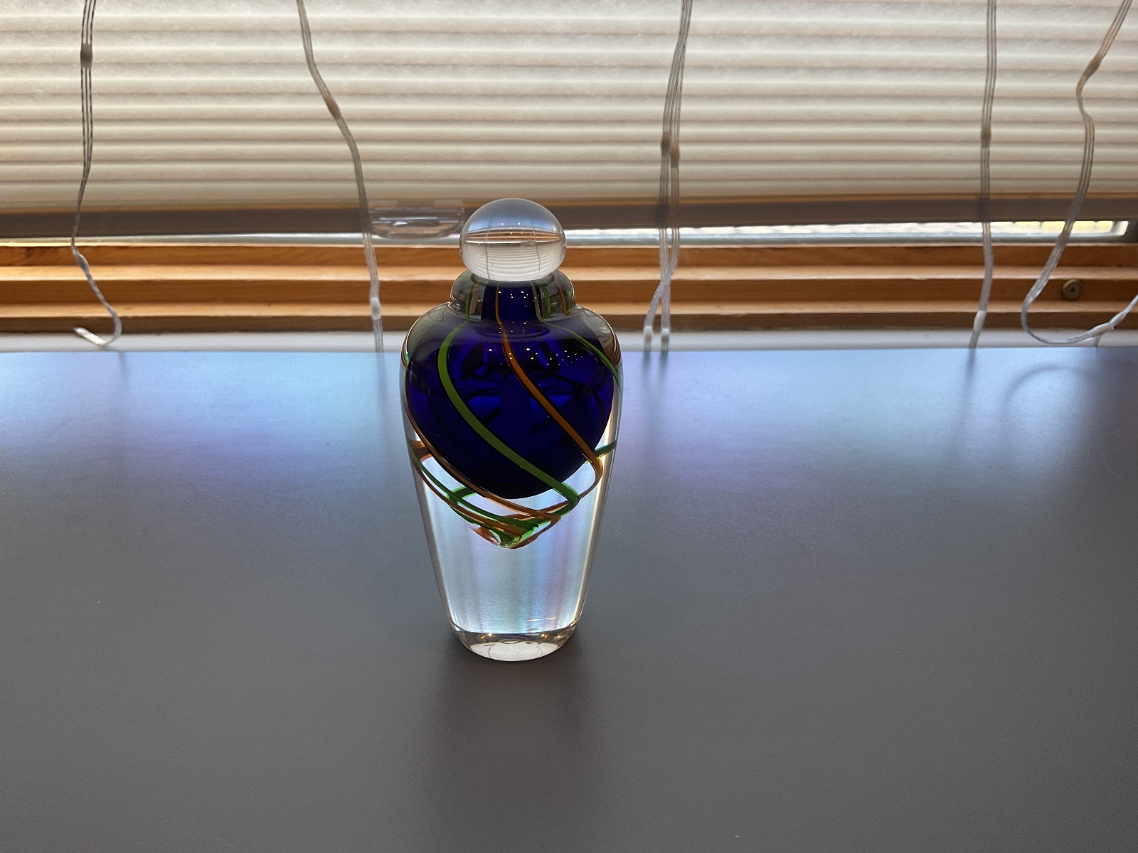 STUNNING Art Glass Perfume Bottle Signed 2004 4”H