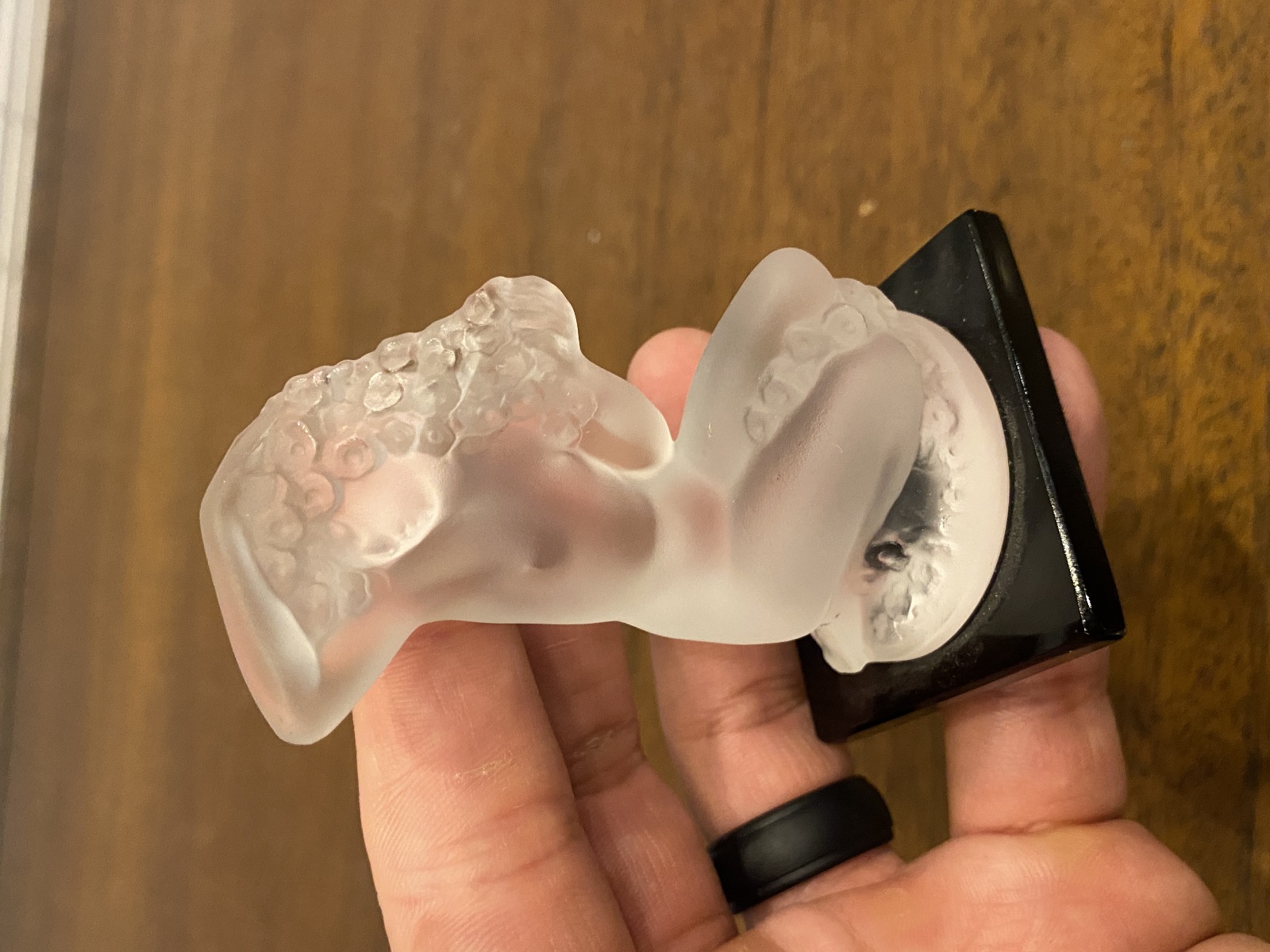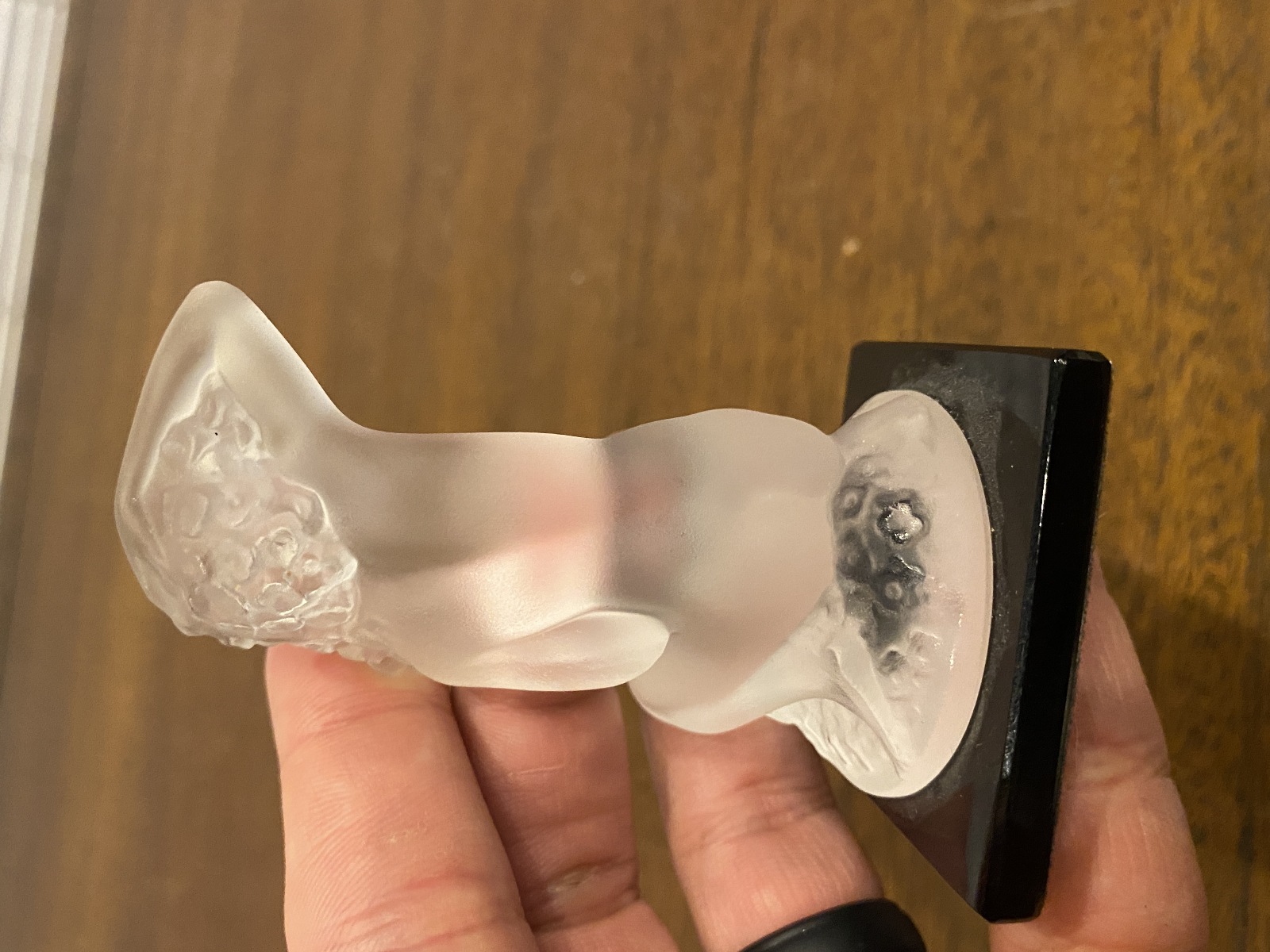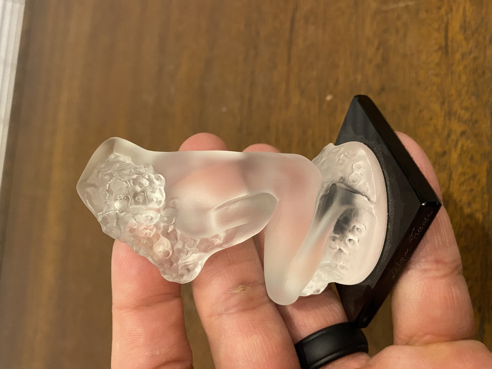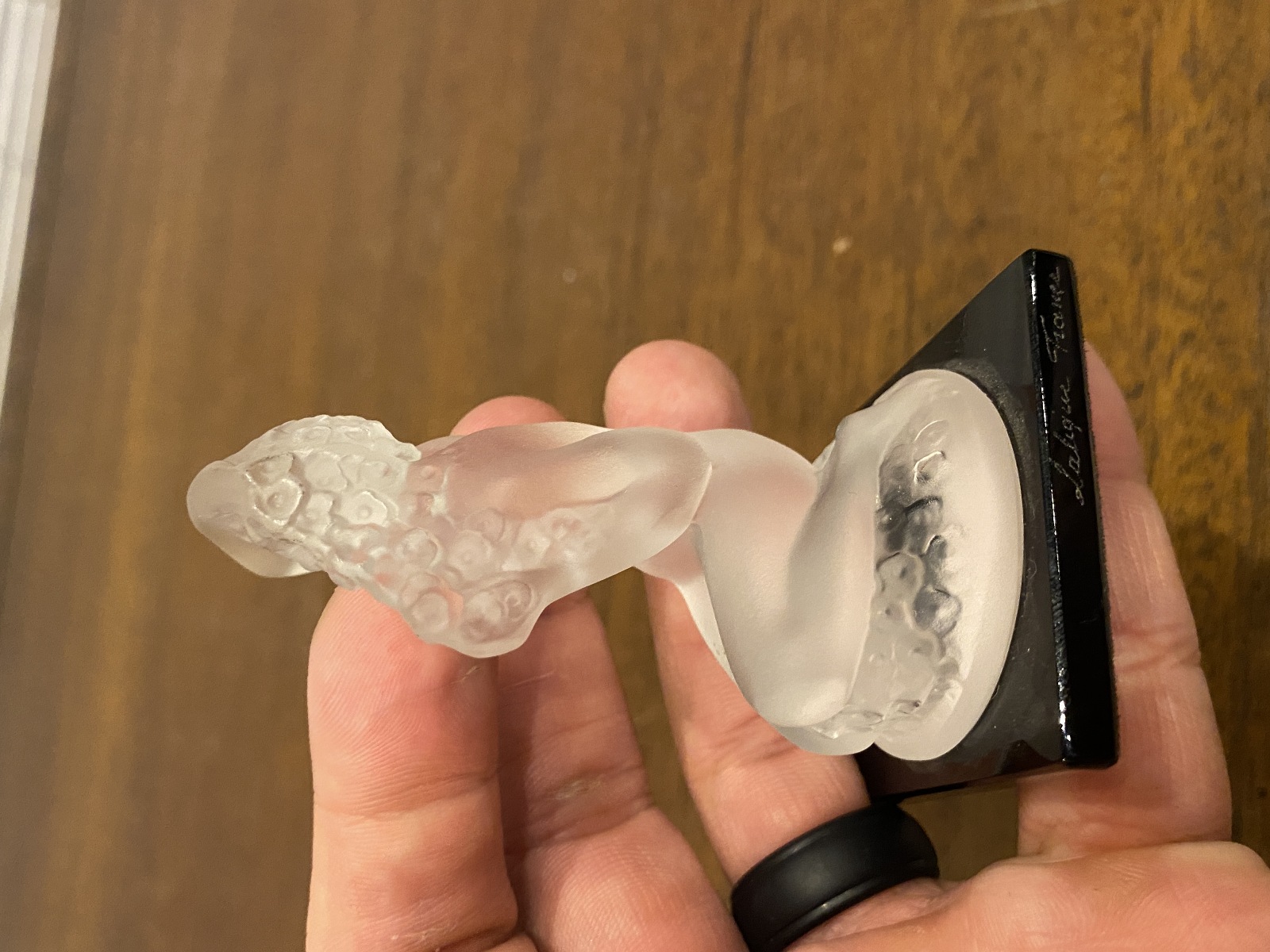 LALIQUE Crystal FLOREAL Nude Woman Figurine W/Black Base SIGNED, FRANCE 3.25"H