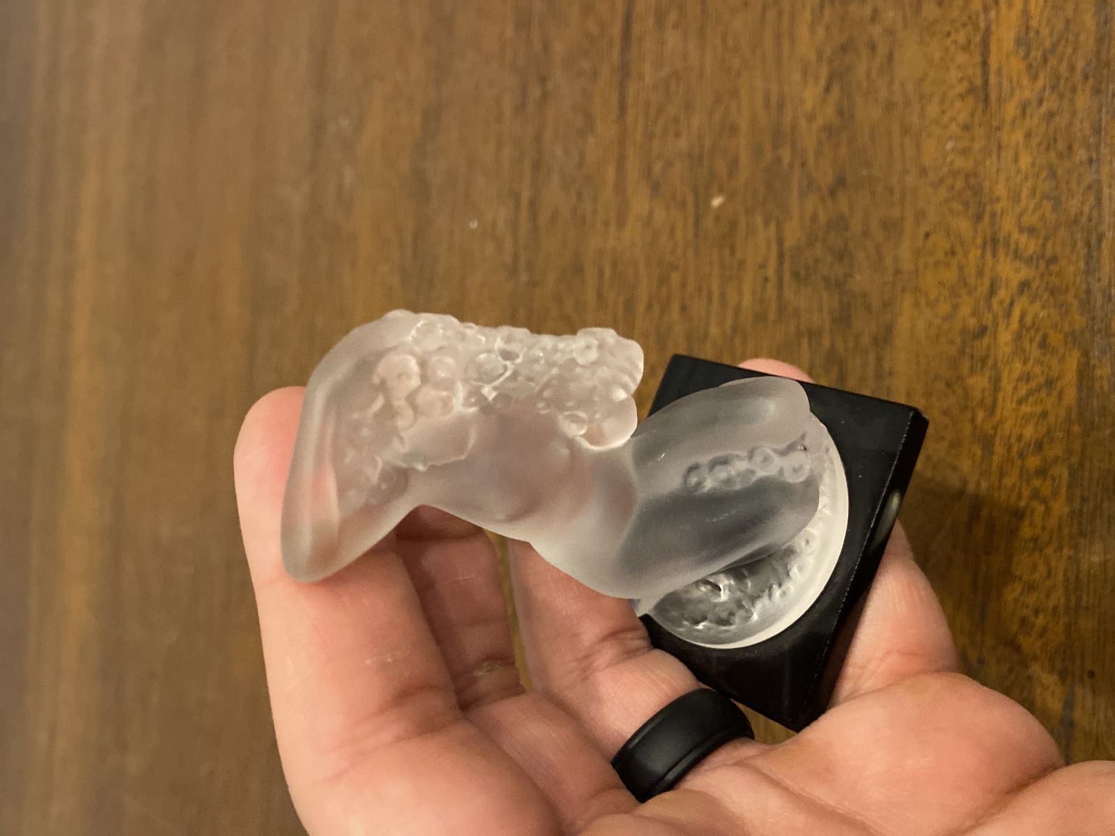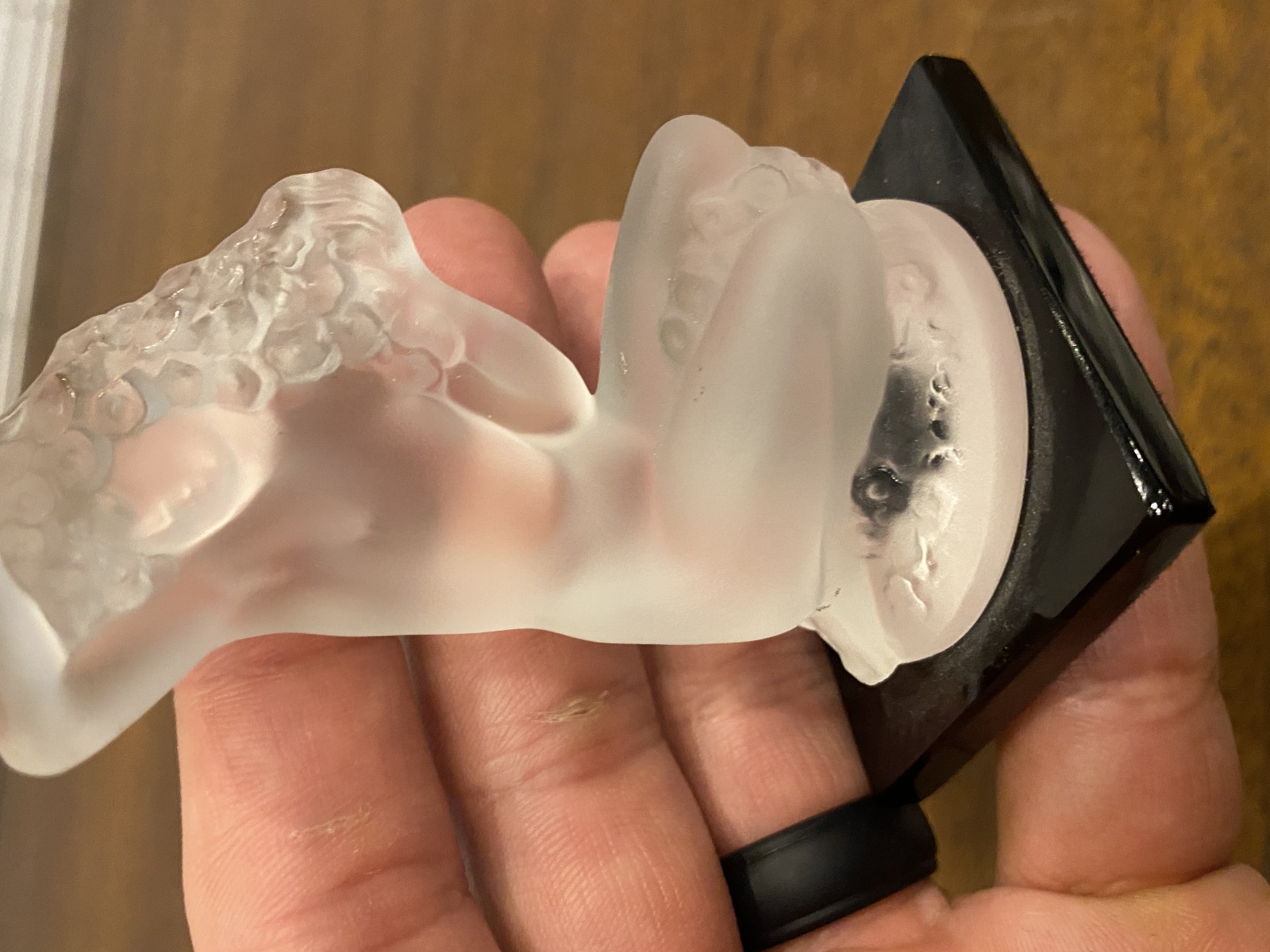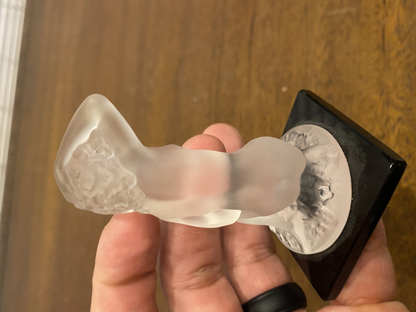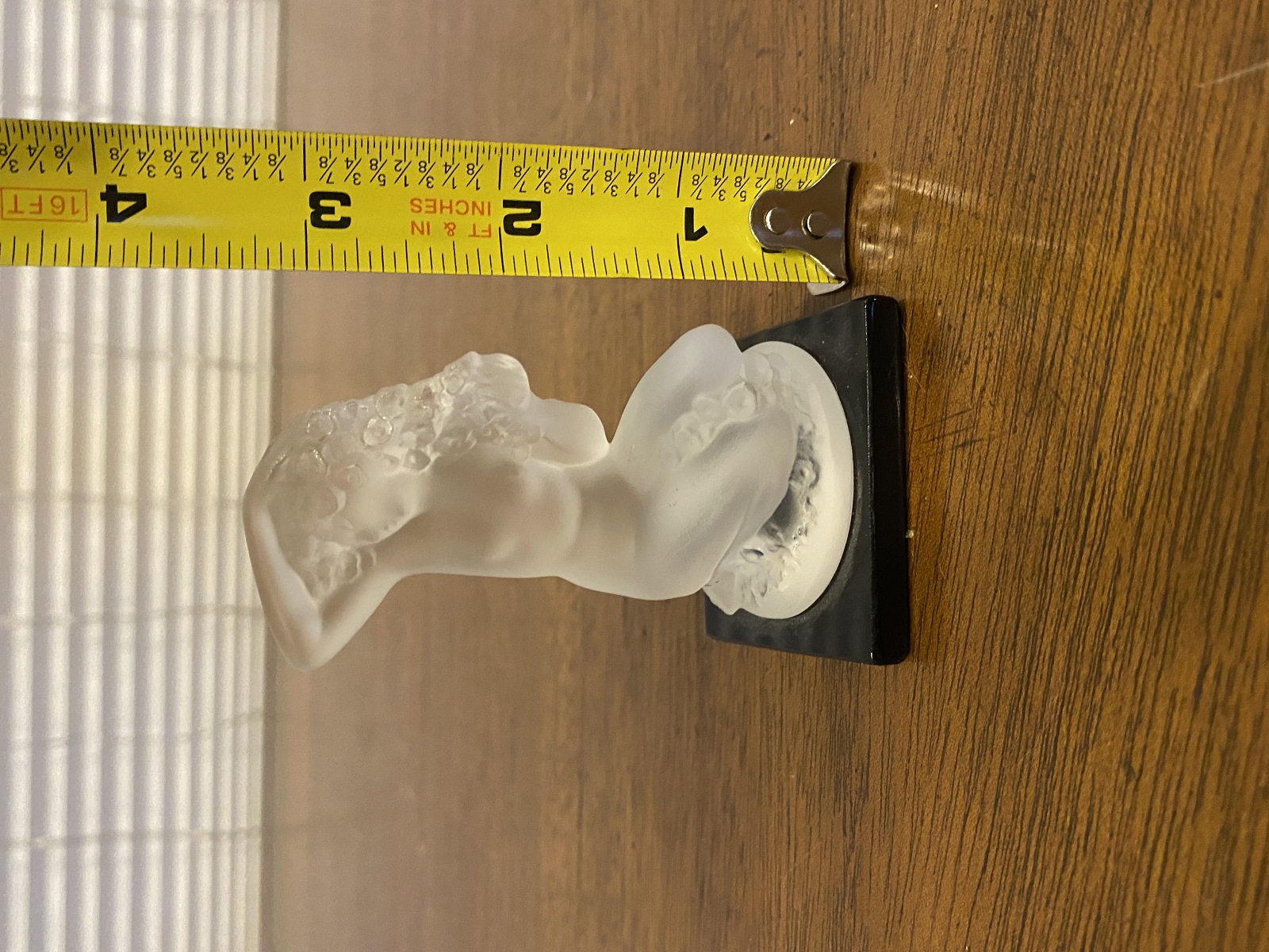 LALIQUE Crystal FLOREAL Nude Woman Figurine W/Black Base SIGNED, FRANCE 3.25"H