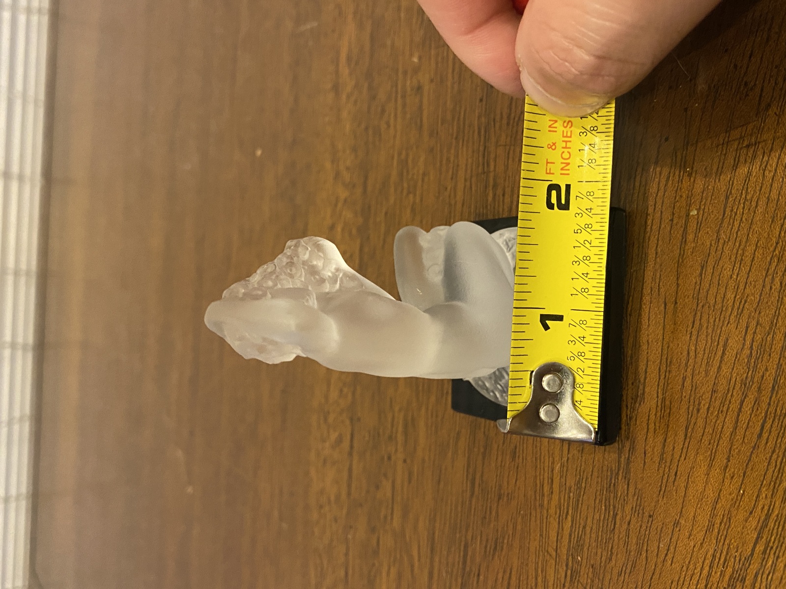 Approximate measurements 1.75"L x 1.5'W x 3"H(Figurine) Base is 2" x 2". 100% of the proceeds go to the registered non profit Cards of Love Inc. and with your purchase you are helping raise money to fund scholarships for at risk youth. Thank you!