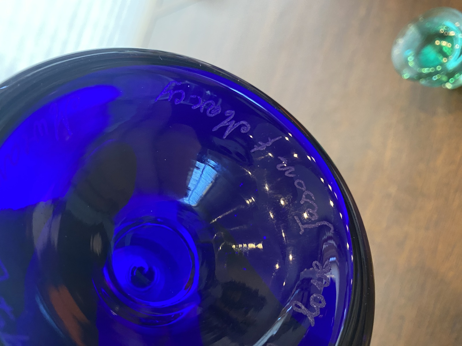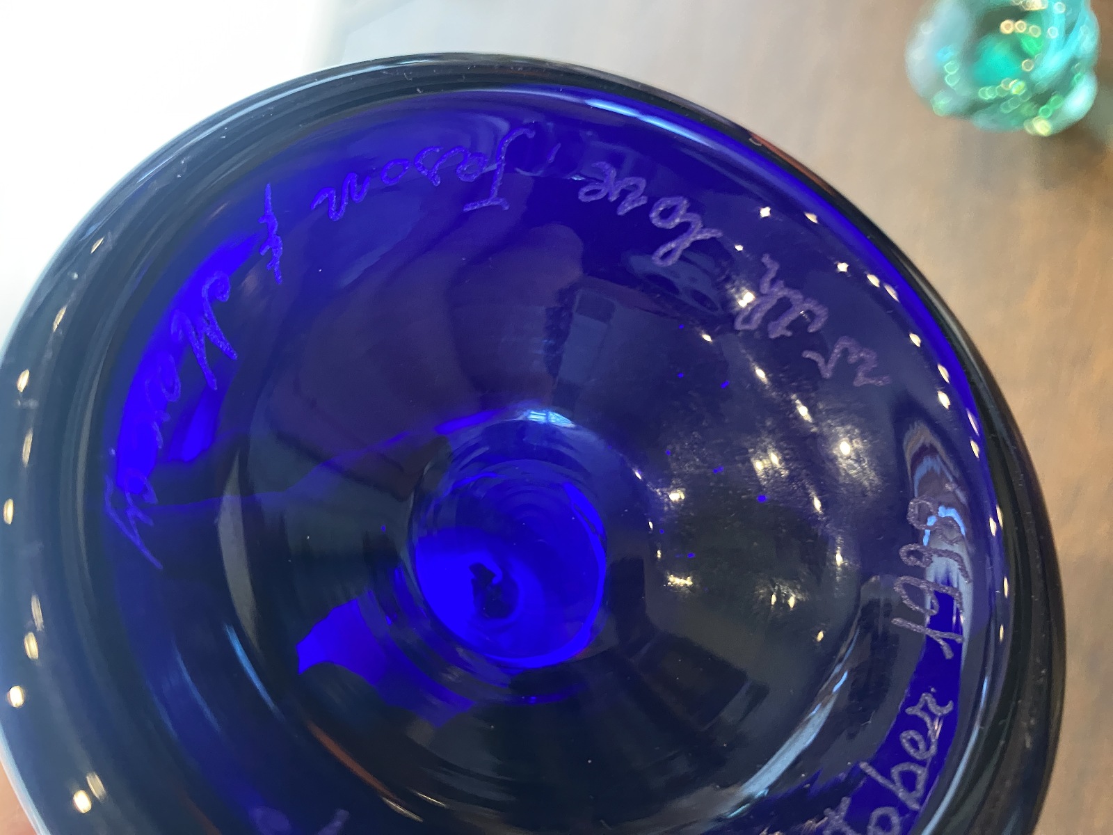 INSCRIPTION ON THE BOTTOM READS "MURANO OCTOBER 1998, WITH LOVE, JASON & MARCY"