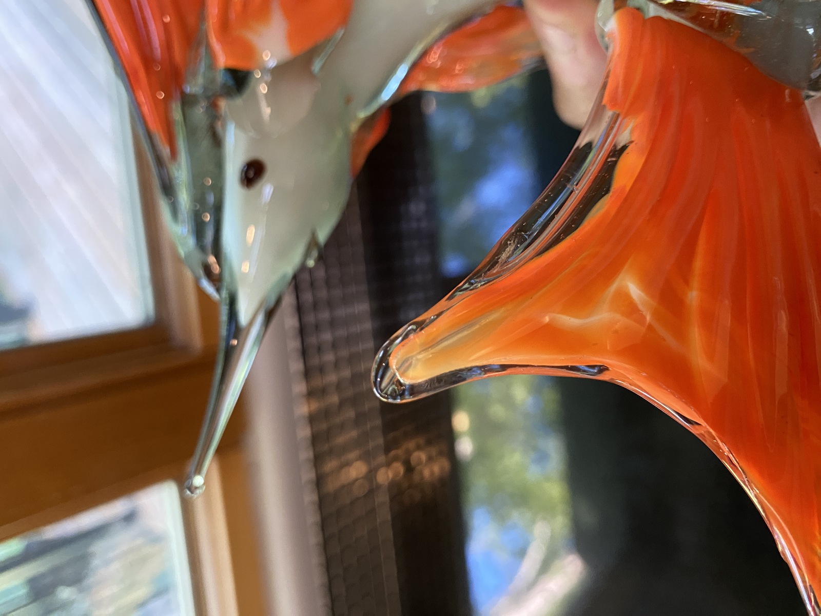 Great condition (Has 3 little rough edges that are in our last 3 images, don't know if they are chips or if this was a byproduct of the hand blown process. Has slight wear from many years of love, but overall in really great condition for its age). Please refer back to the photos for condition and feel free to message me if you have any questions. Thank you)! Approximate measurements 12"L x 8"W x 9"H. 100% of the proceeds go to the registered non profit Cards of Love Inc. and with your purchase you are helping raise money to fund scholarships for at risk youth. Thank you!