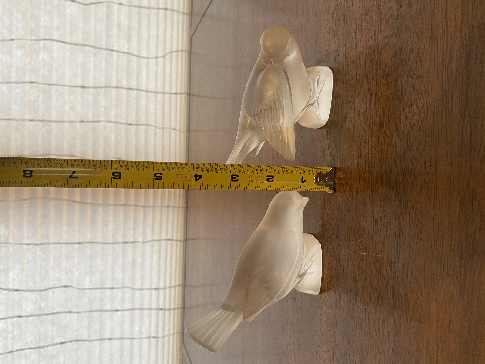 Approximate measurements 4"L x 2"W x 4"H(BIRD WITH HEAD DOWN) 4.75"L x 2.75"W x 3"H(BIRD LOOKING BACK) 100% of the proceeds go to the registered non profit Cards of Love Inc. and with your purchase you are helping raise money to fund scholarships for at risk youth. Thank you!