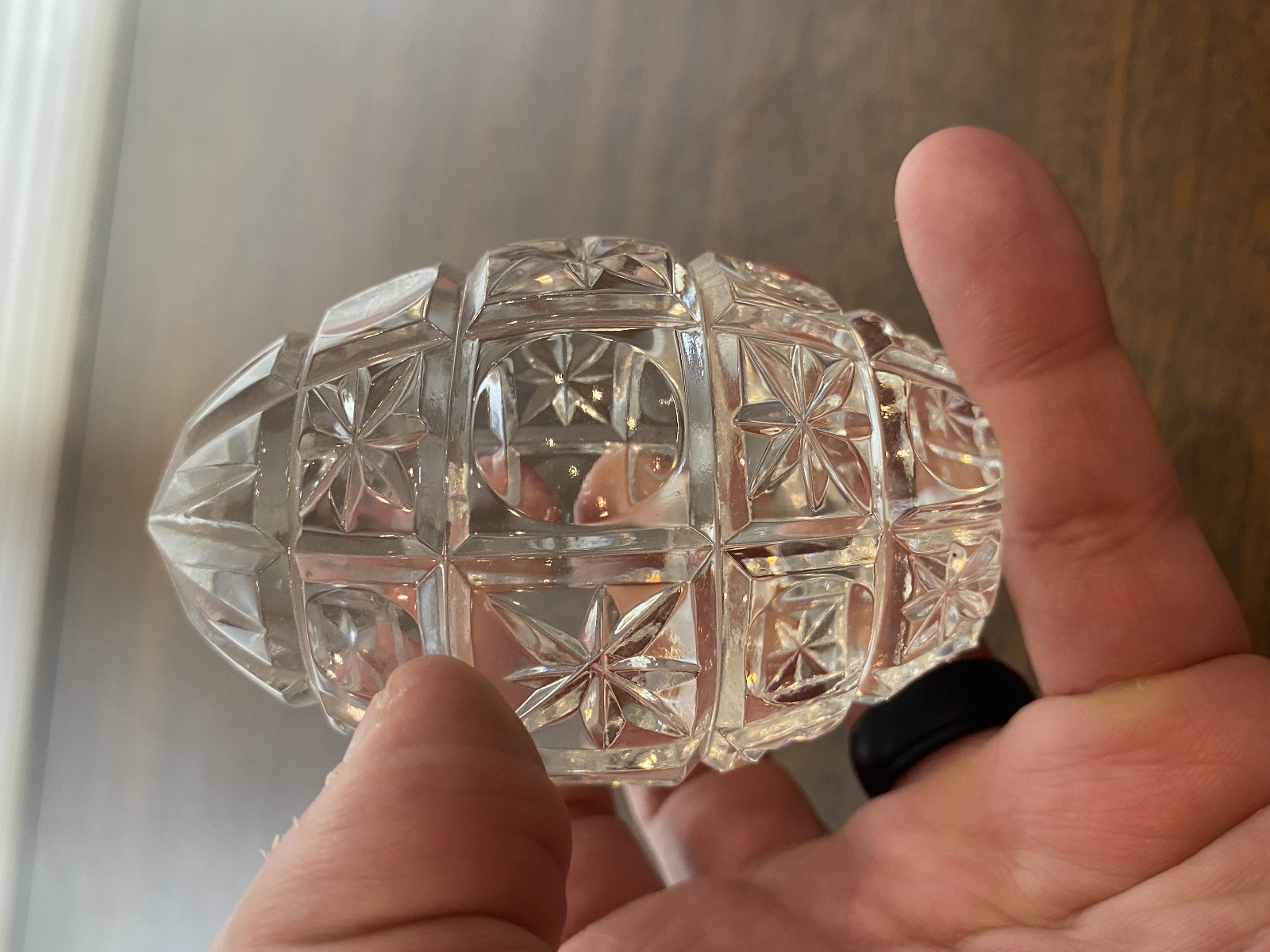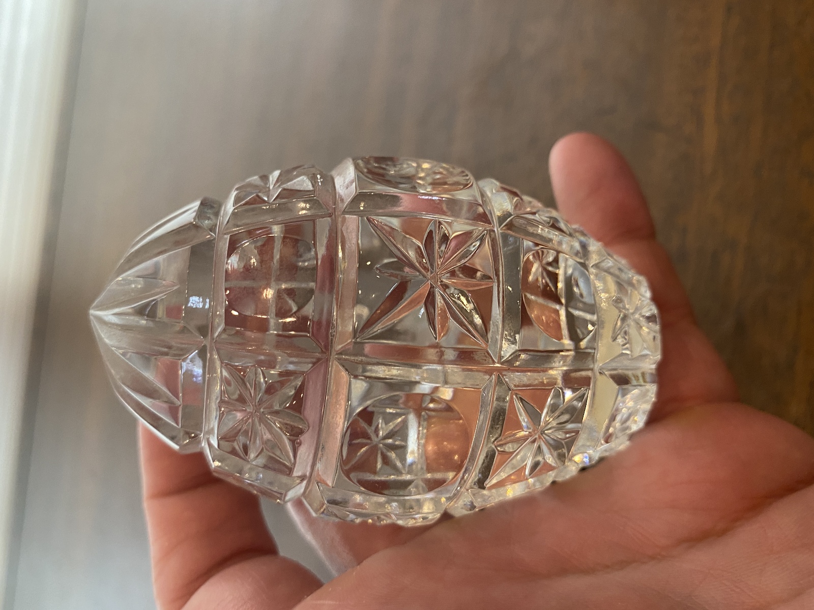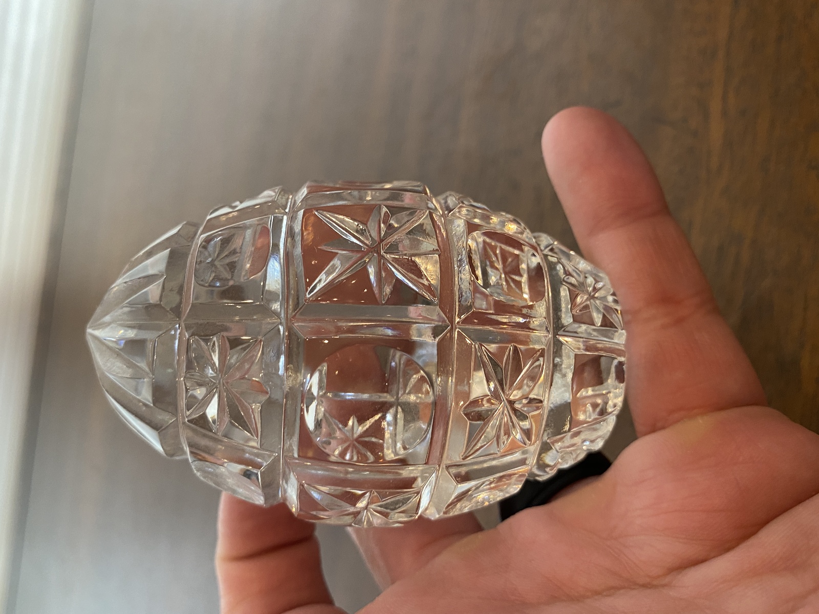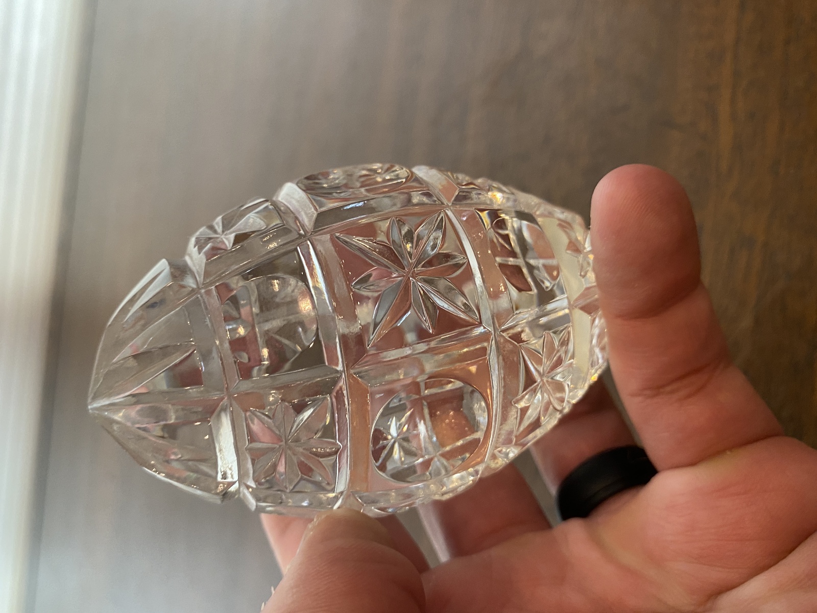 Sullivans Crystal Stars & Circles Egg Shaped Paperweight W/LABEL 3.5"H POLAND