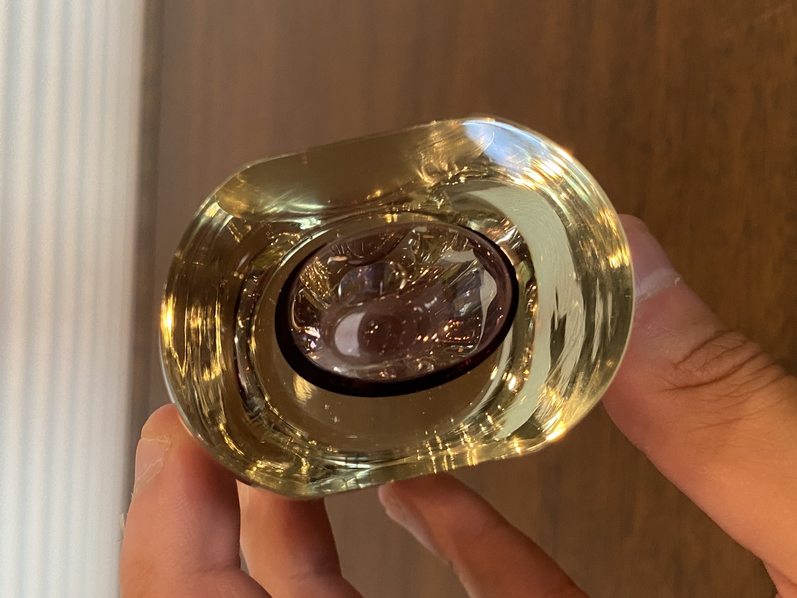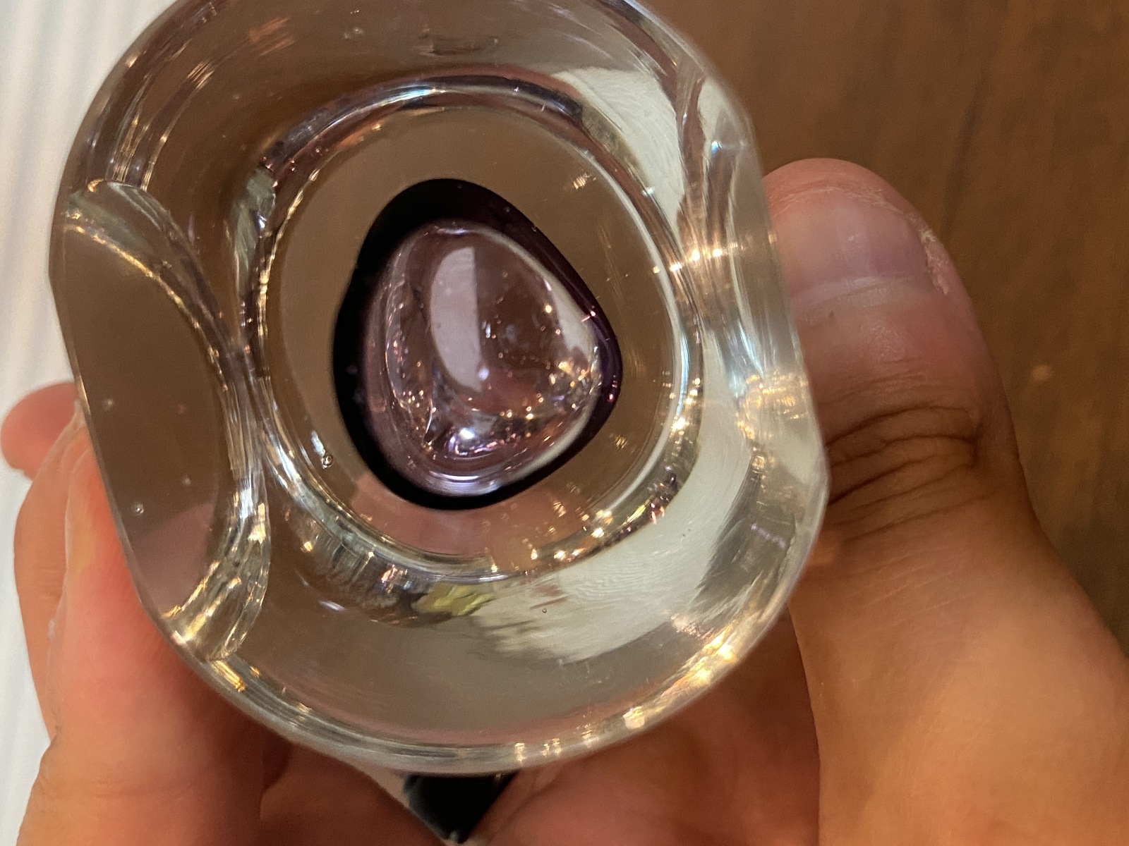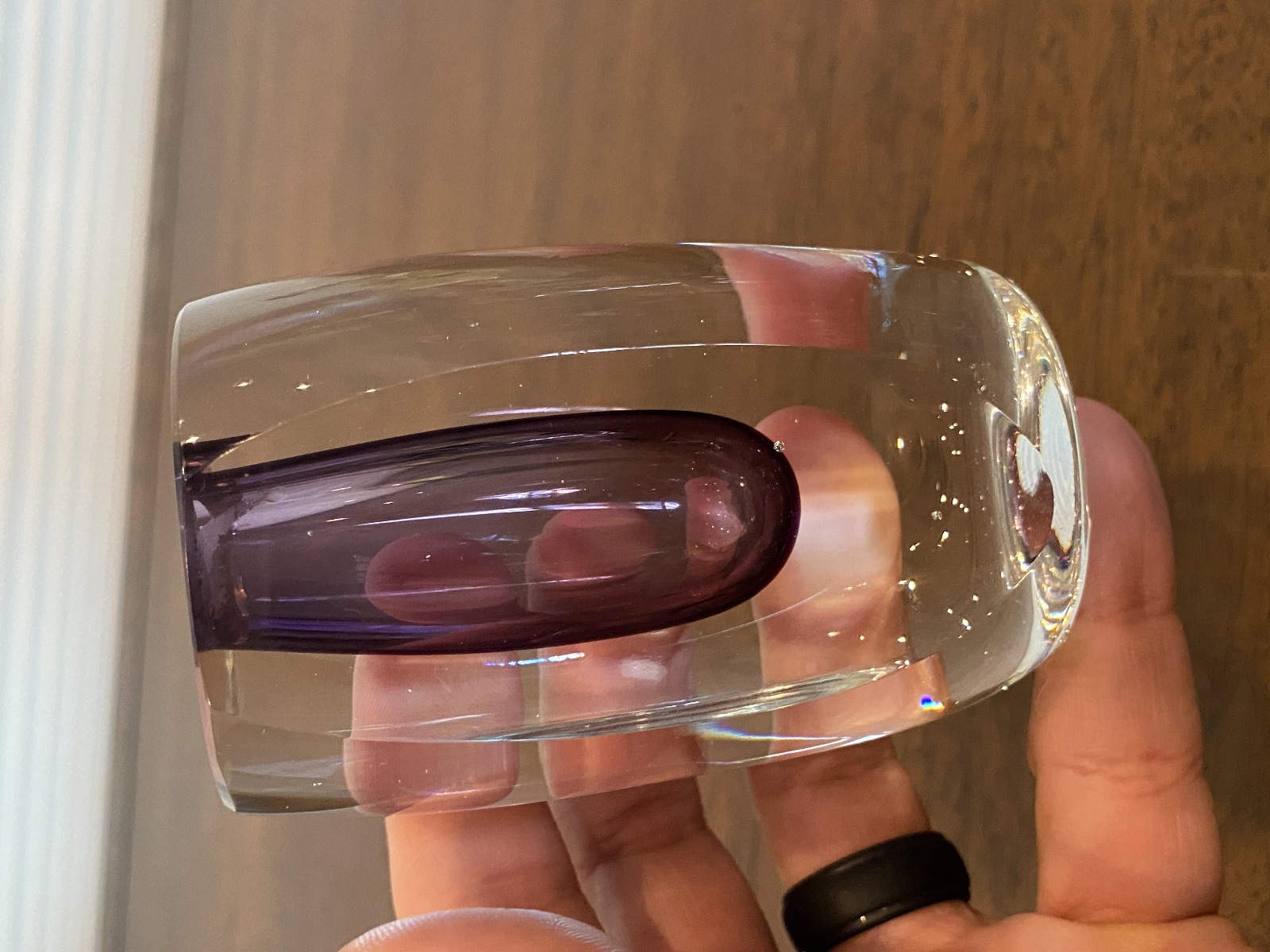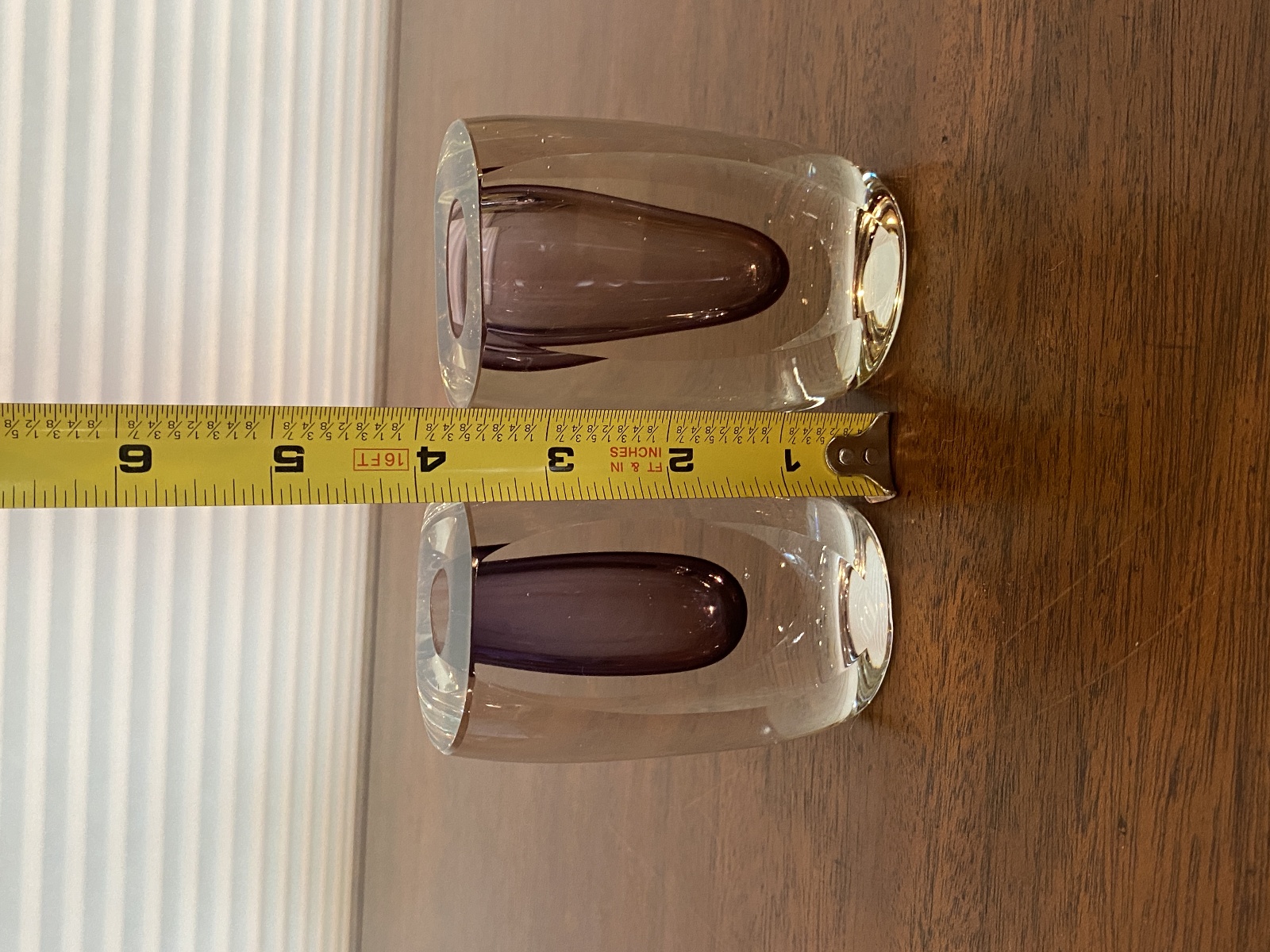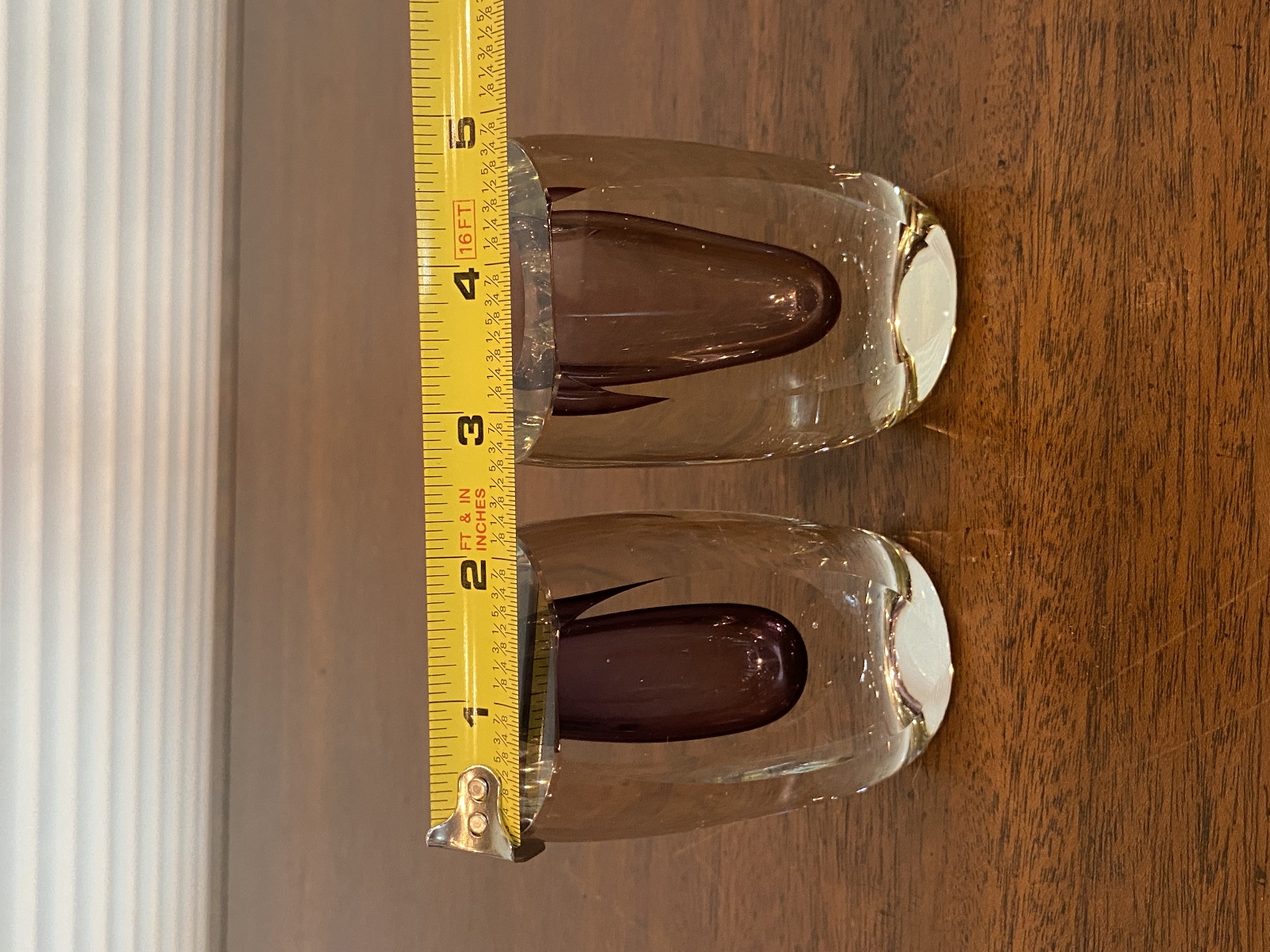 Approximate measurements 2.25"L x 1 5/8"W x 3.5"H(Amber and purple One), 2 1/8"L x 1.75"W x 3 5/8"H(Purple & Clear One).