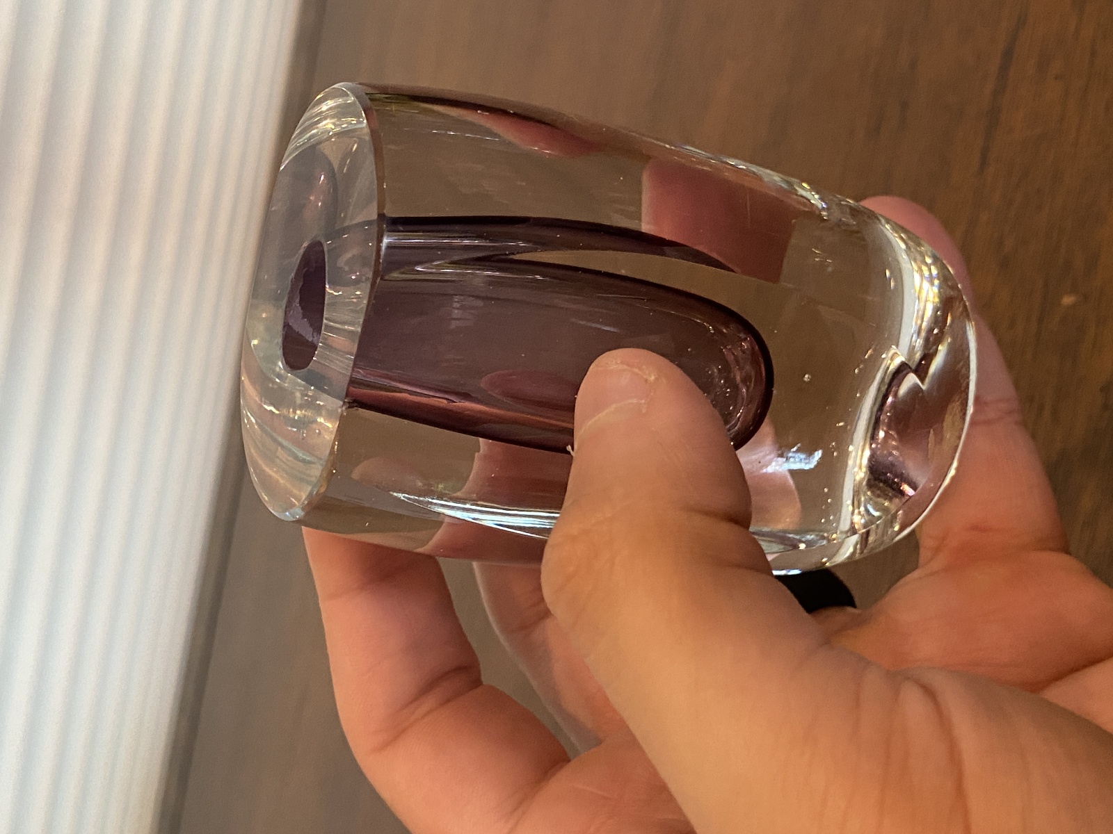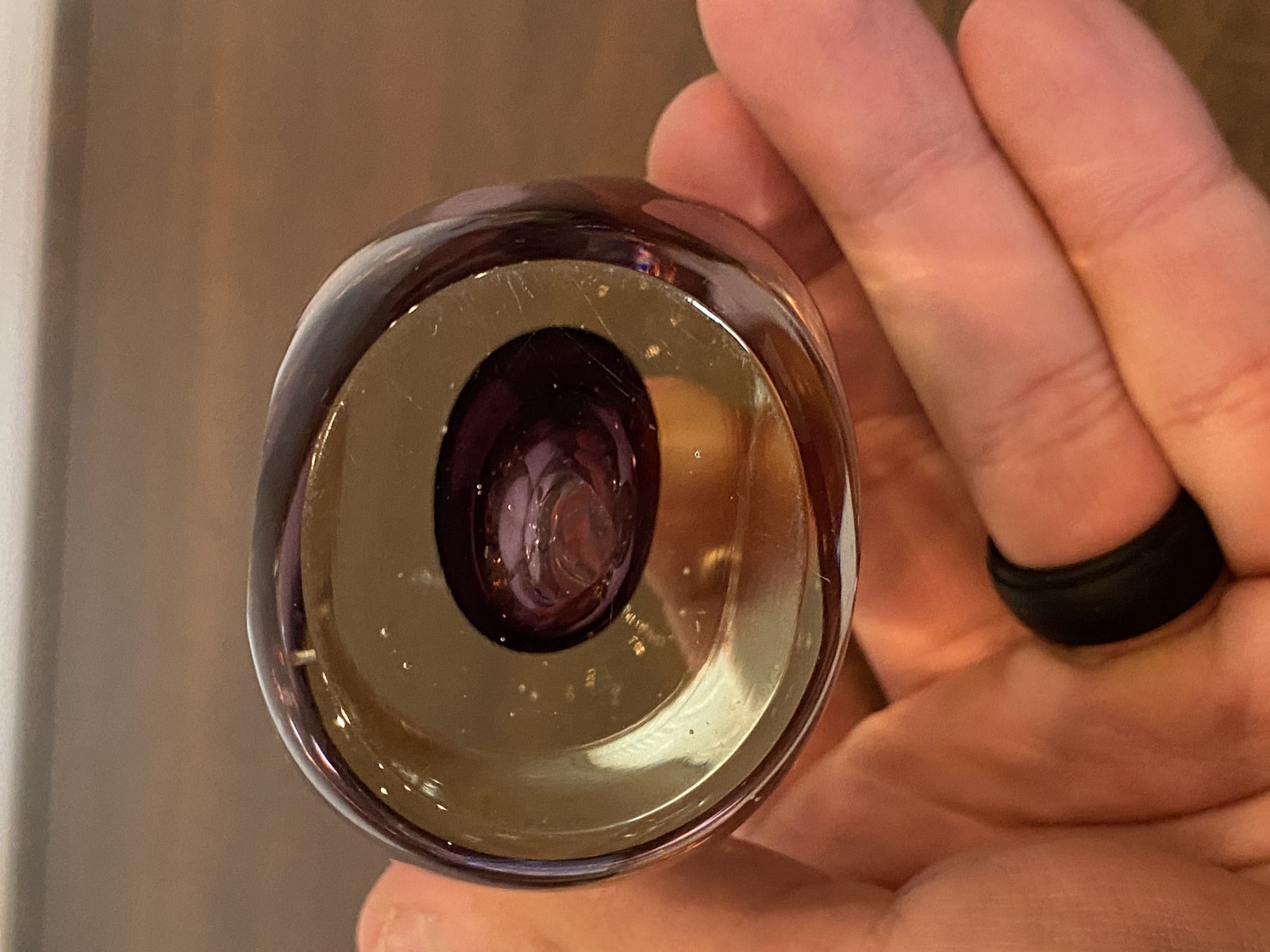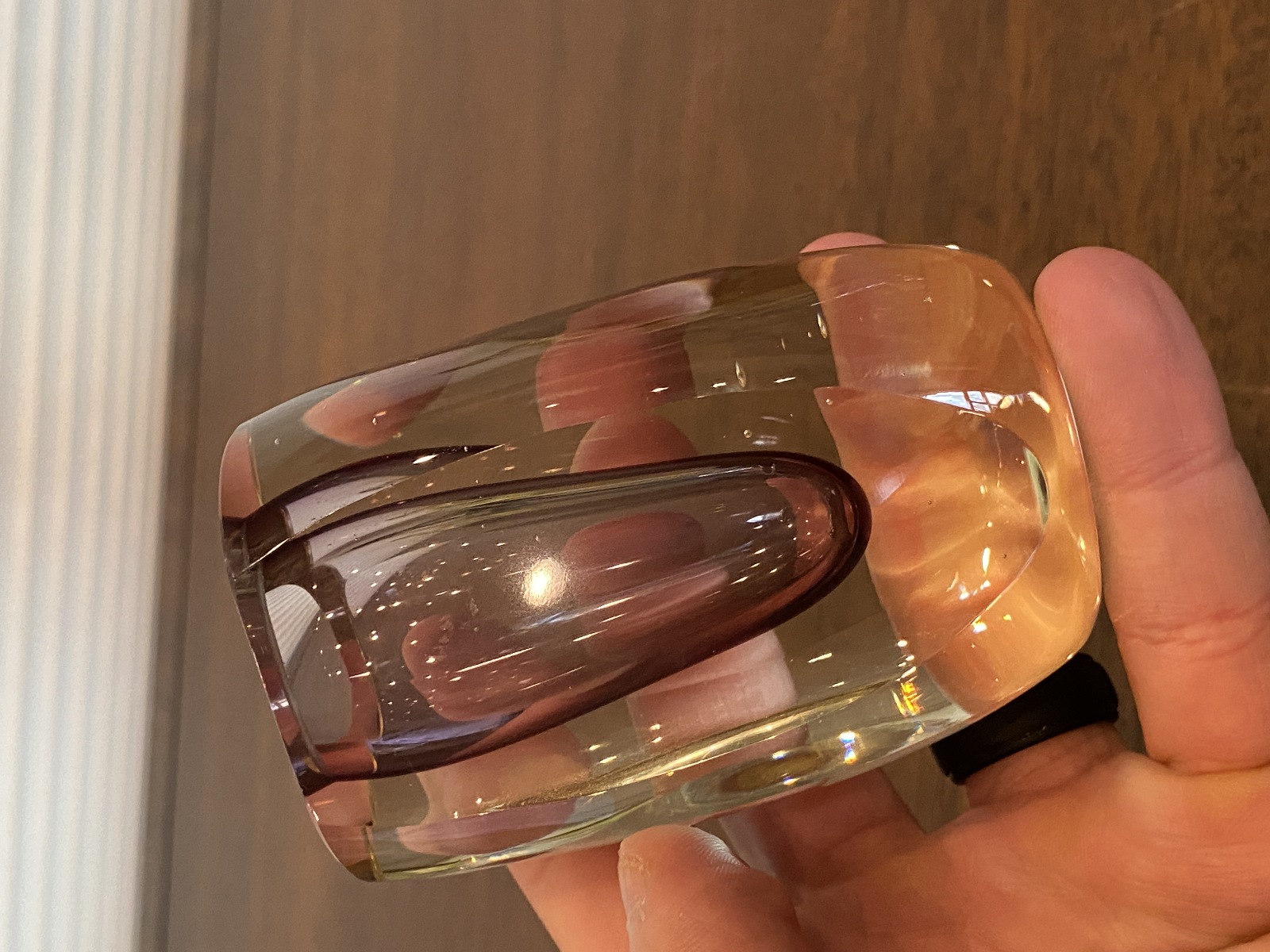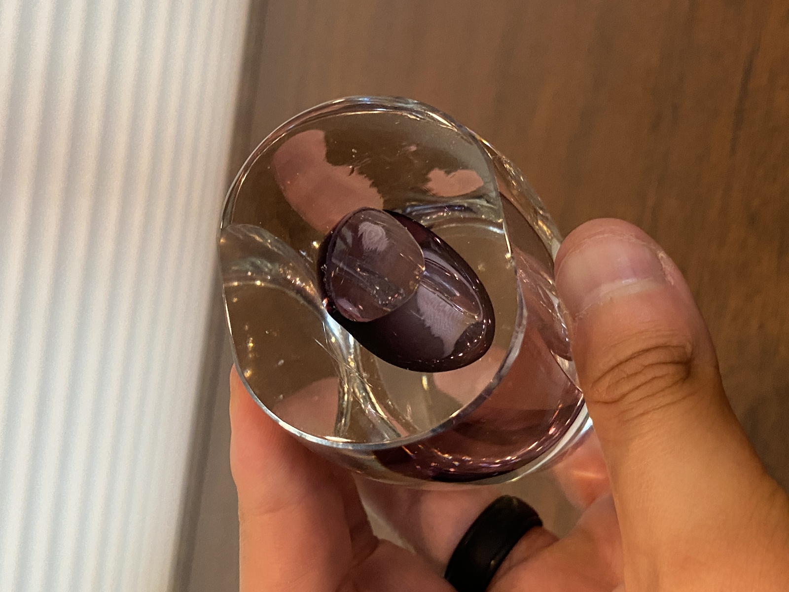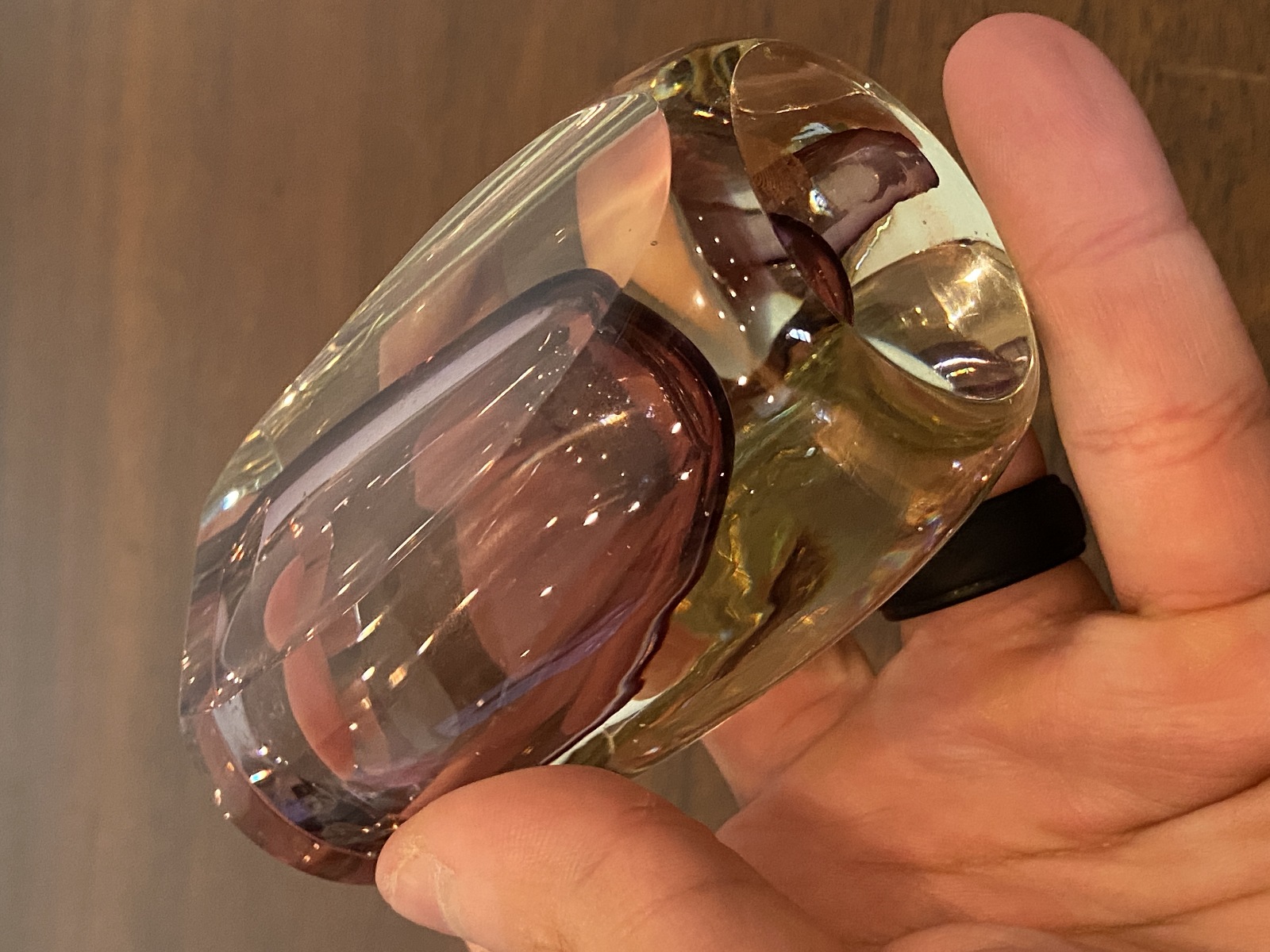 Approximate measurements 2.25"L x 1 5/8"W x 3.5"H(Amber and purple One), 2 1/8"L x 1.75"W x 3 5/8"H(Purple & Clear One).