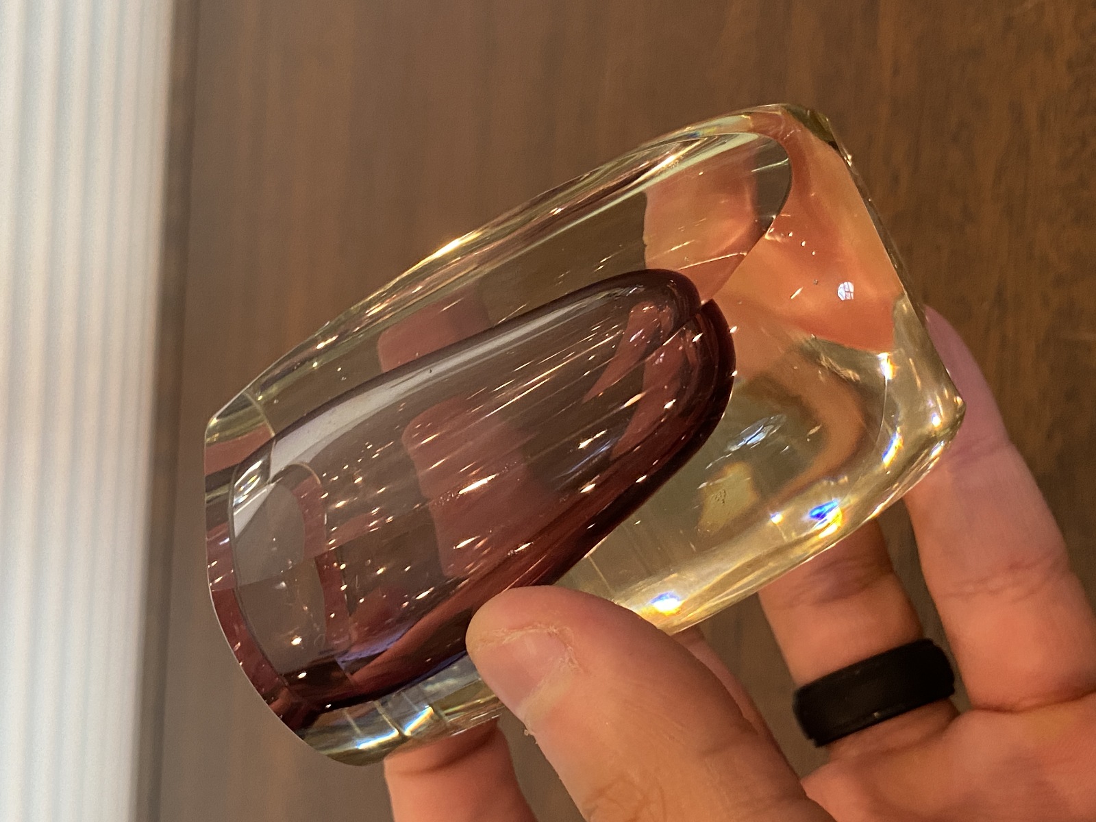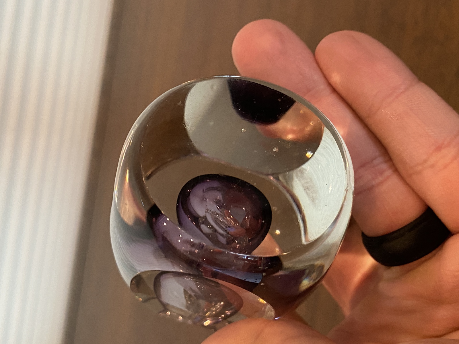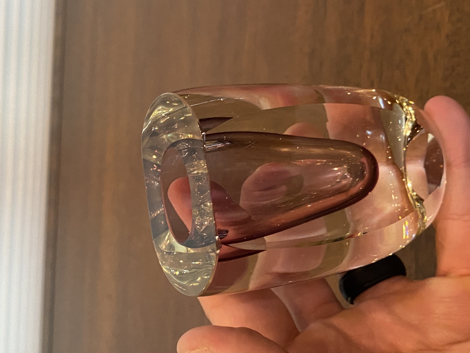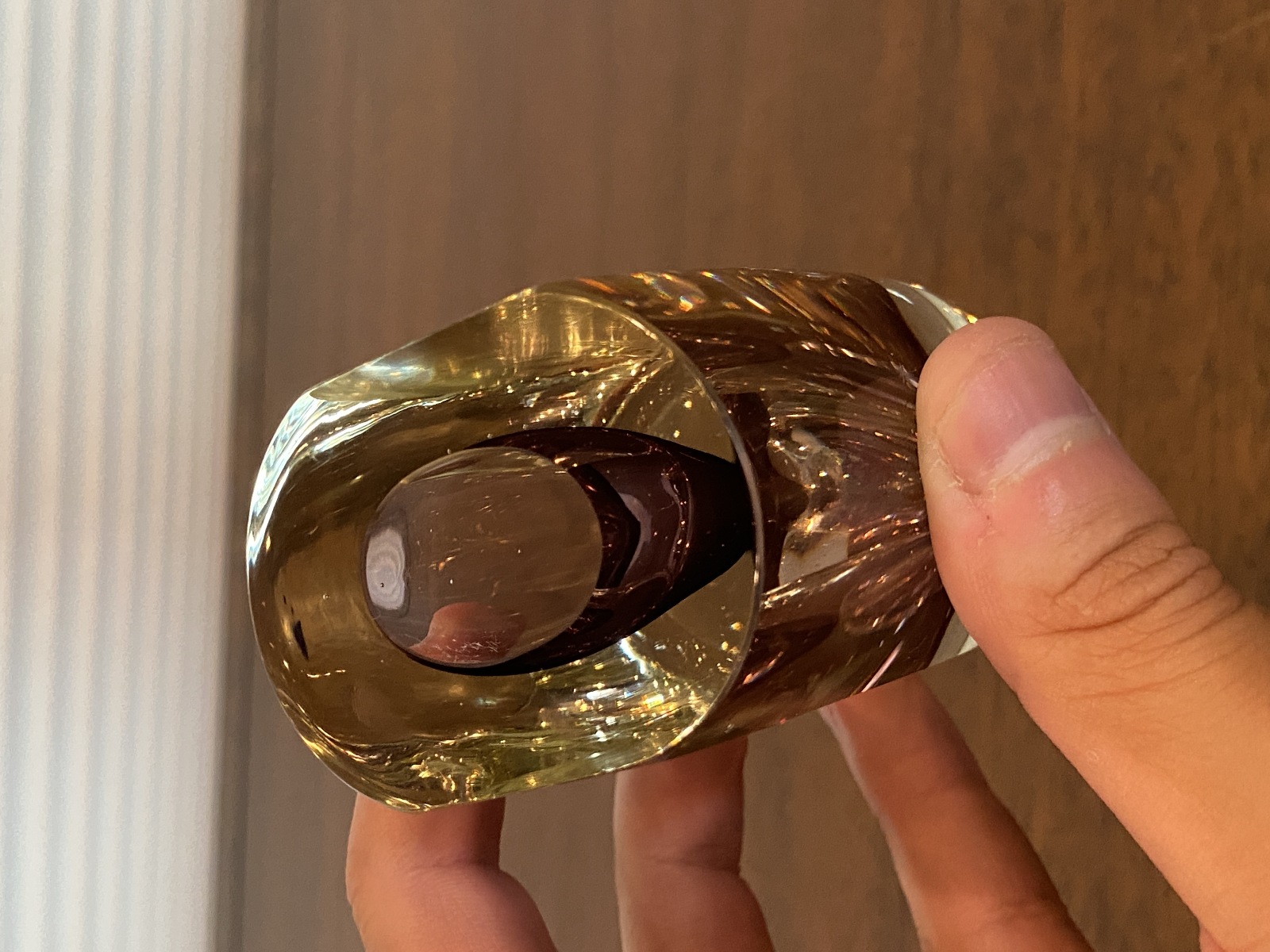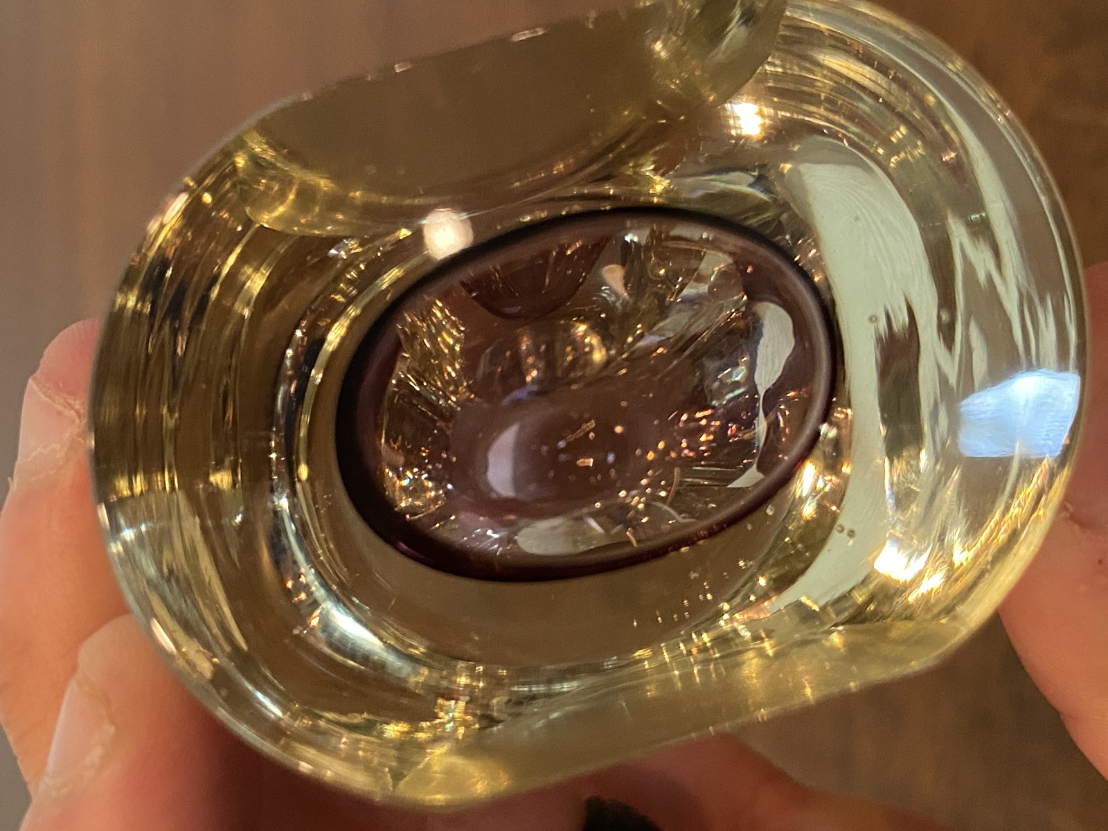 Approximate measurements 2.25"L x 1 5/8"W x 3.5"H(Amber and purple One), 2 1/8"L x 1.75"W x 3 5/8"H(Purple & Clear One).