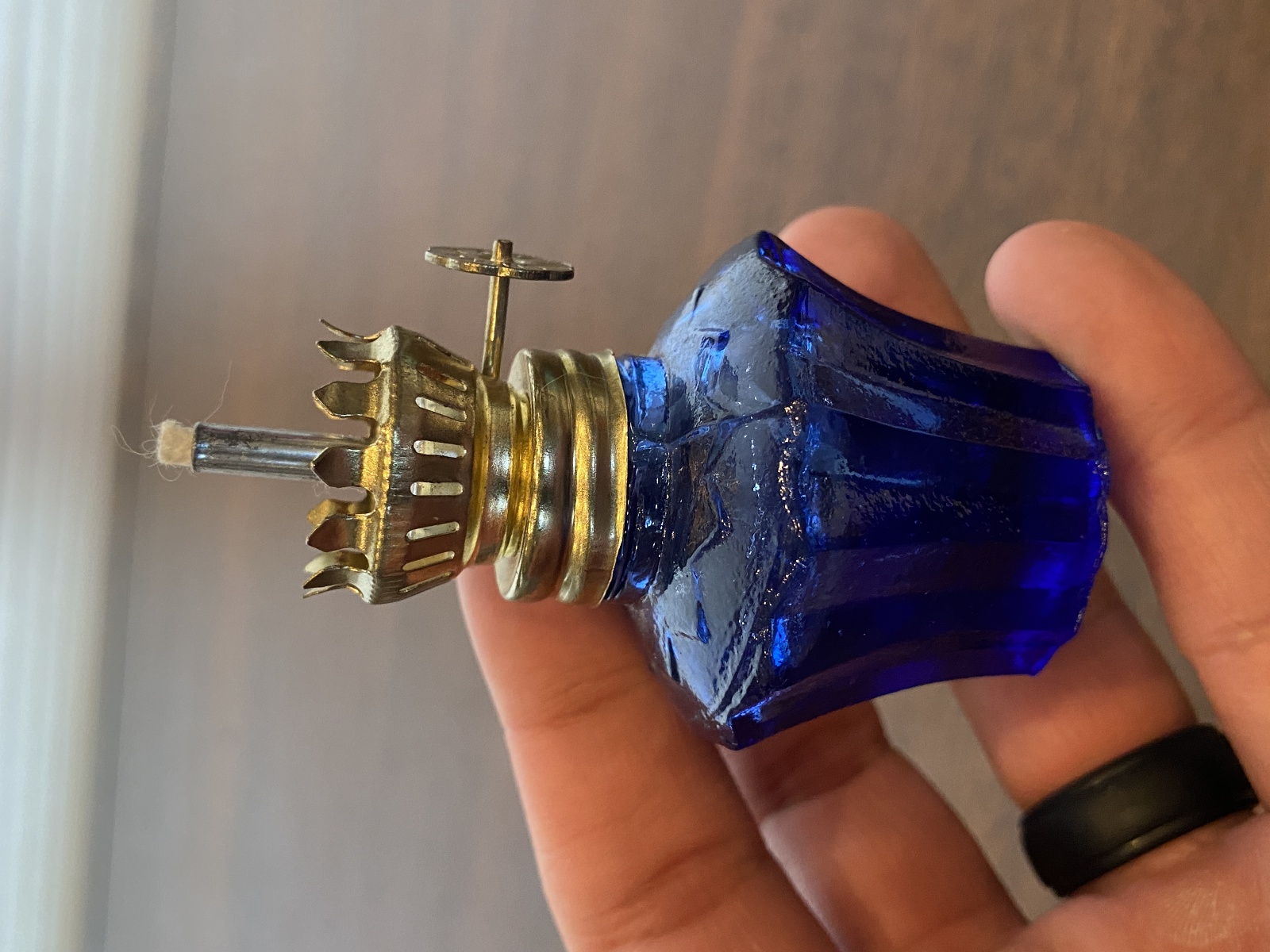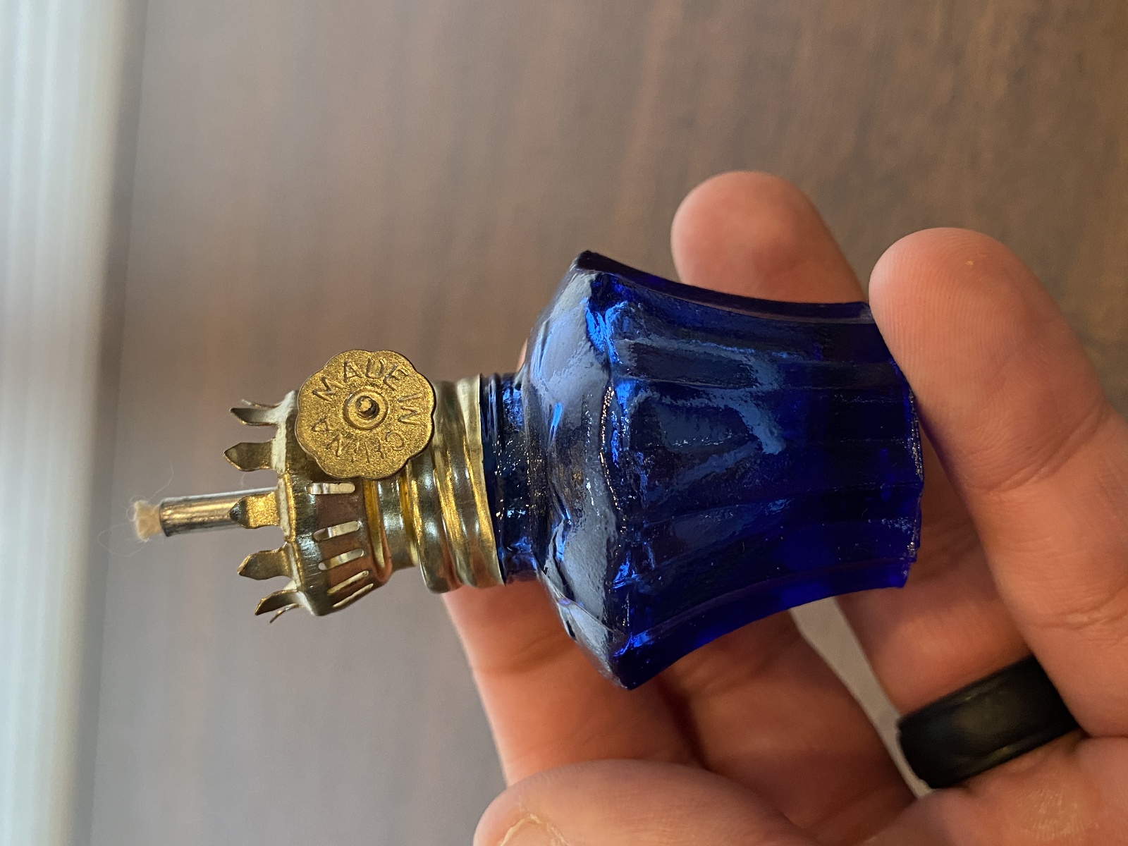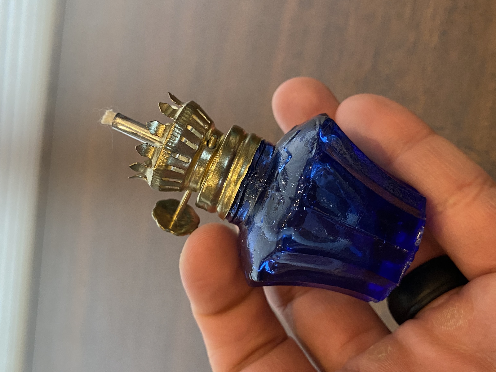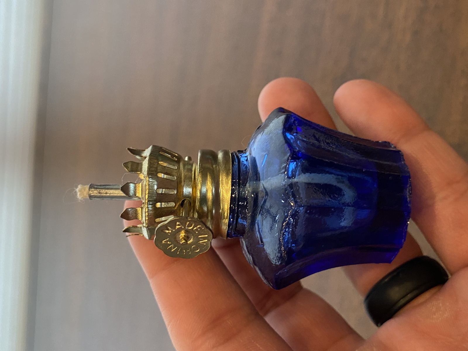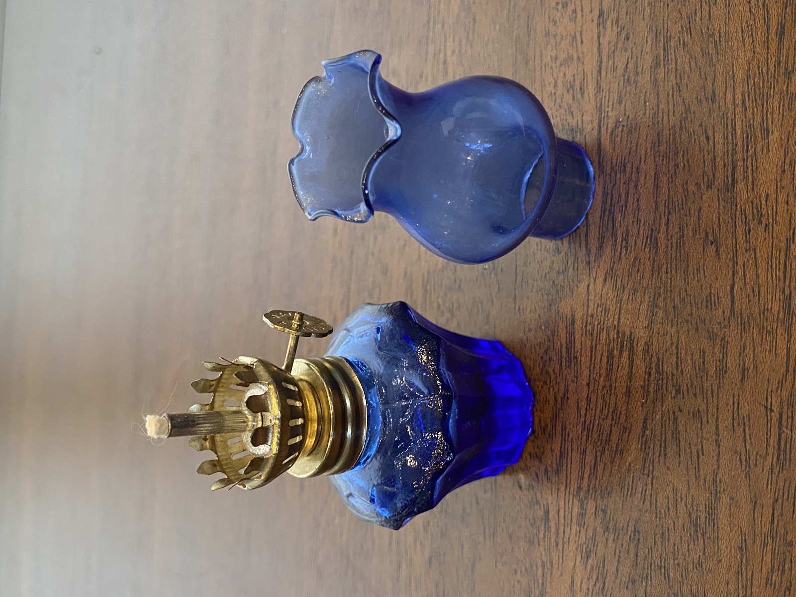 VTG Mini Cobalt Blue Oil Lamp 4.5"H