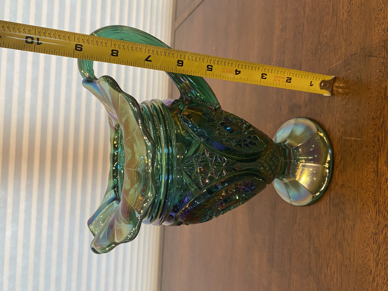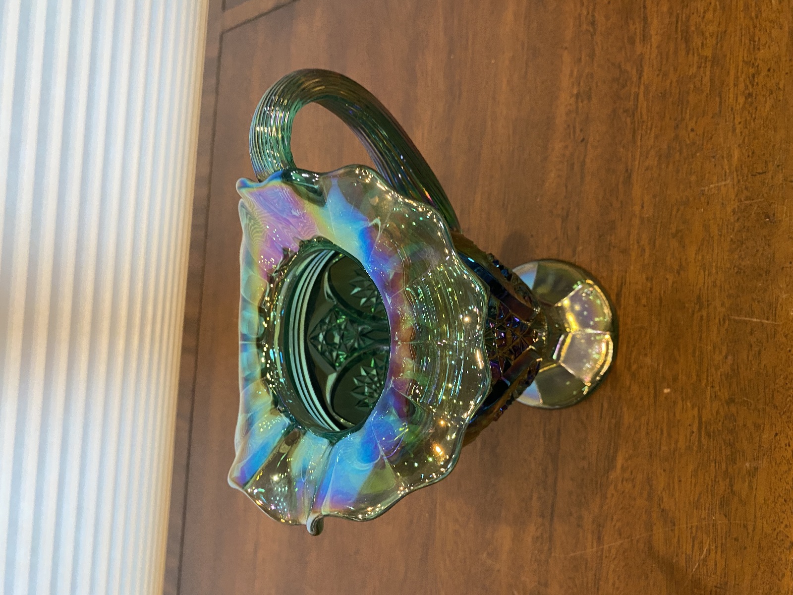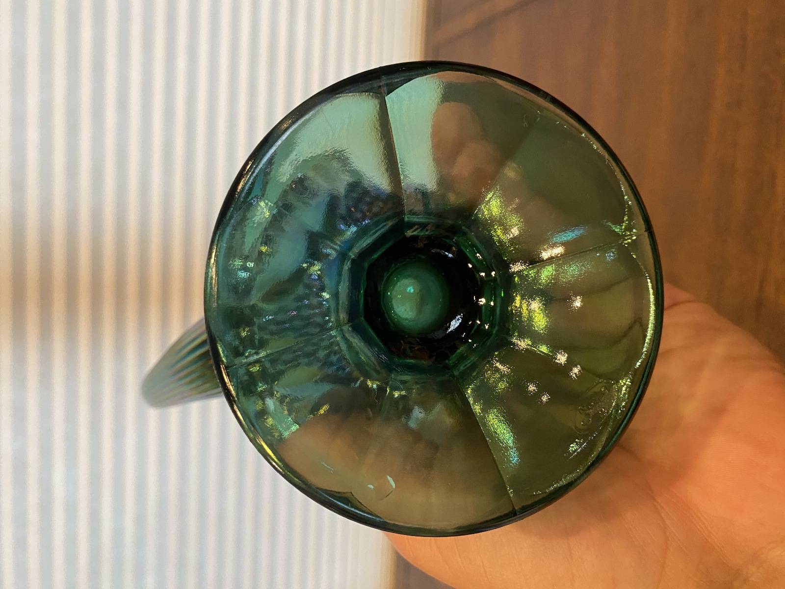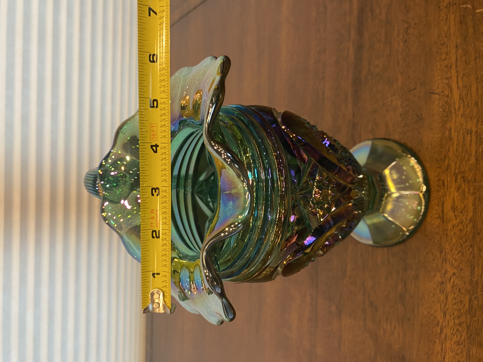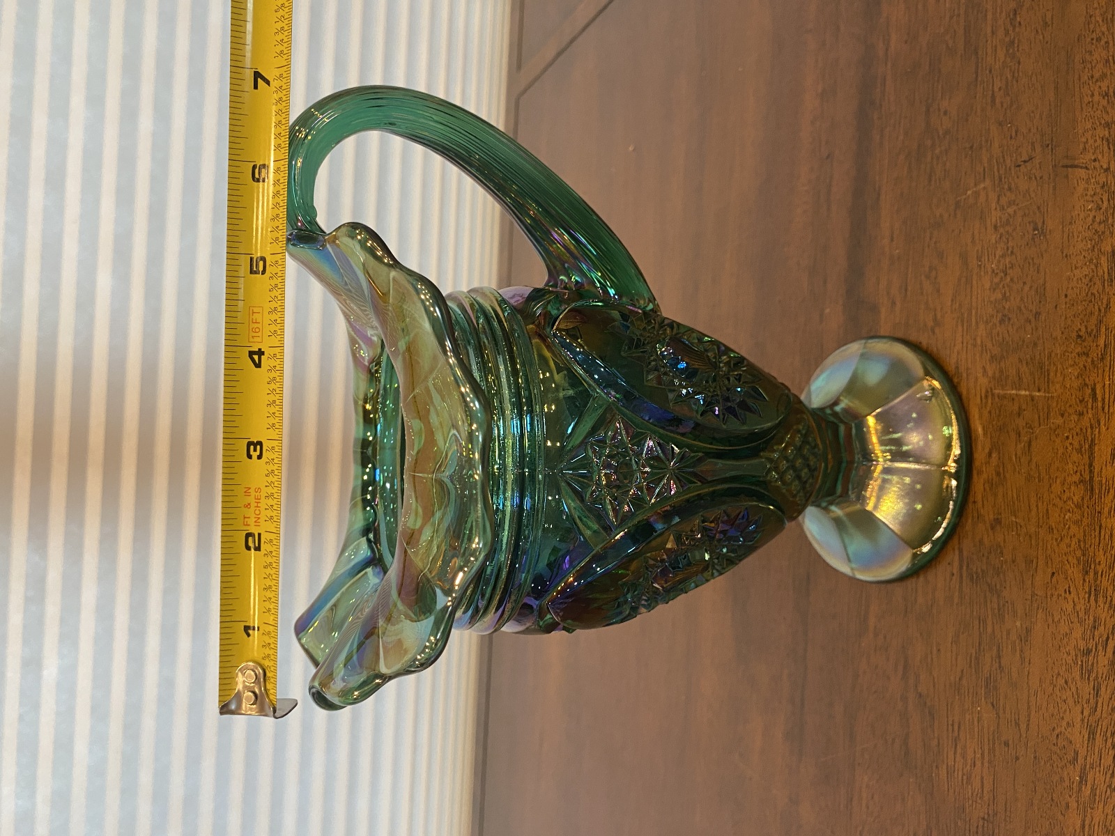 VTG FENTON Teal/Green Iridescent Hobstar Carnival Glass Pitcher 9"H