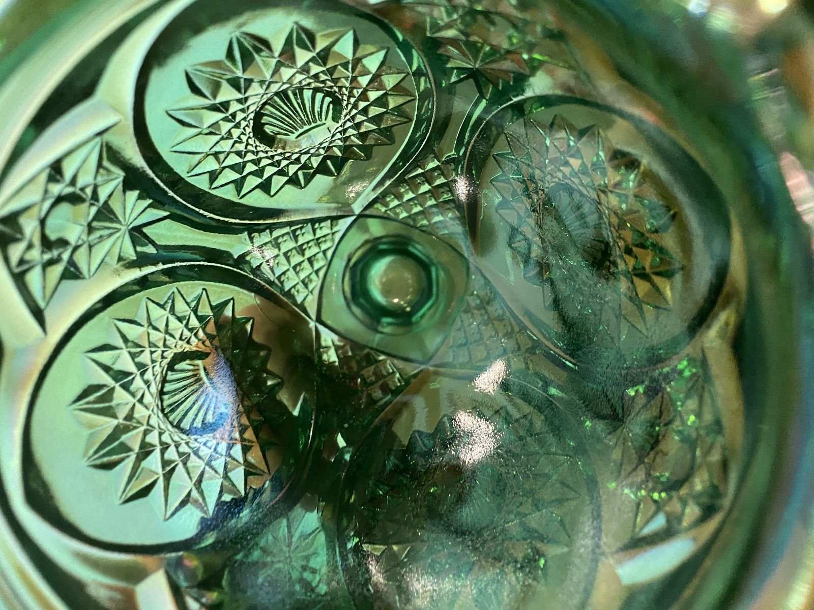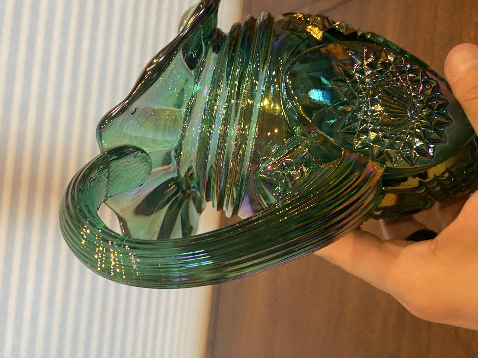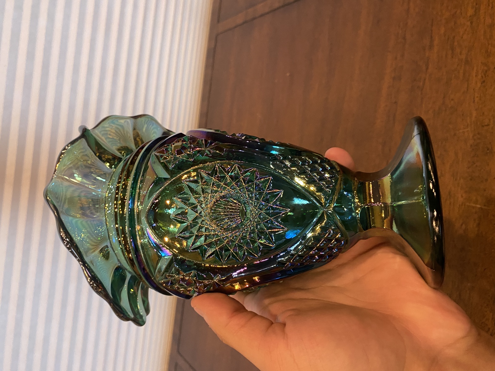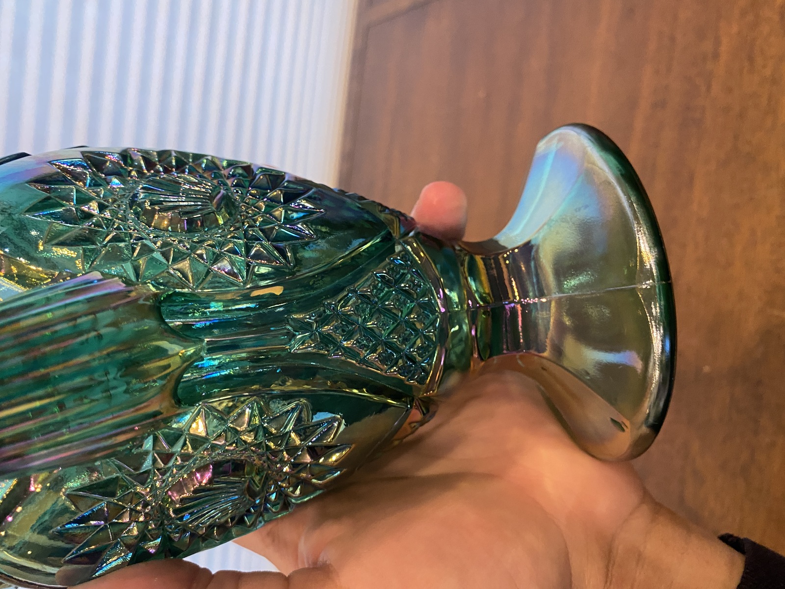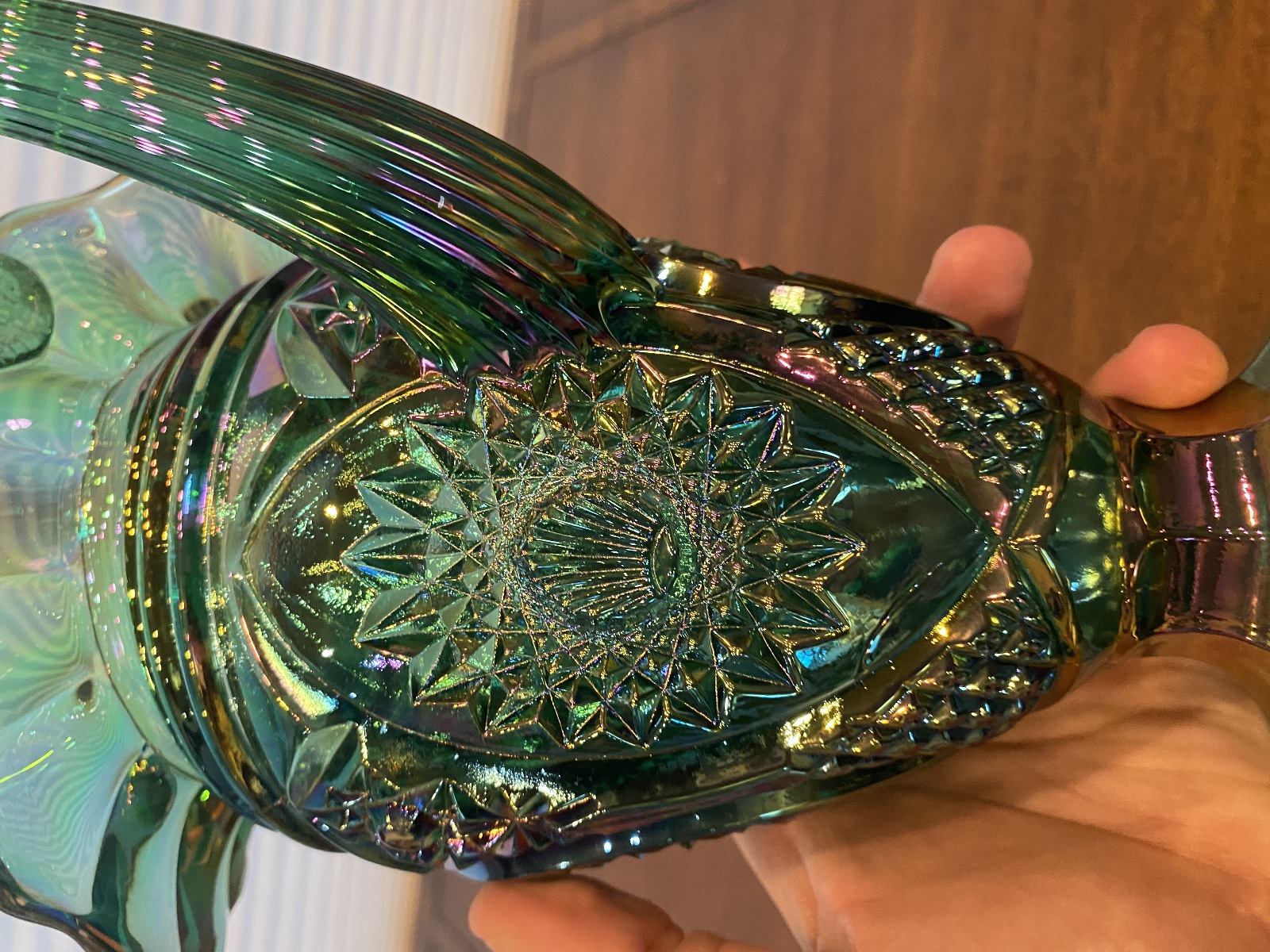 VTG FENTON Teal/Green Iridescent Hobstar Carnival Glass Pitcher 9"H