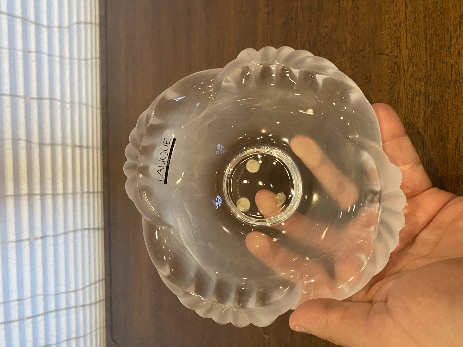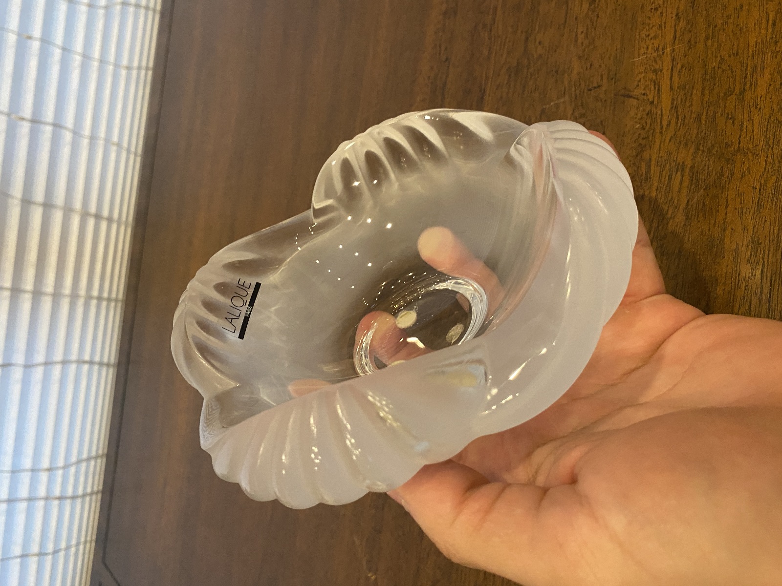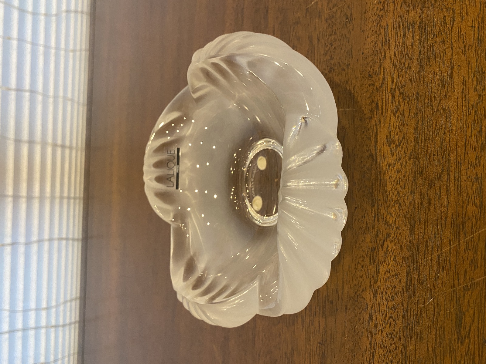 VTG LALIQUE Frosted Crystal ARUBA Ashtray Bowl W/LABEL 6.5"W SIGNED