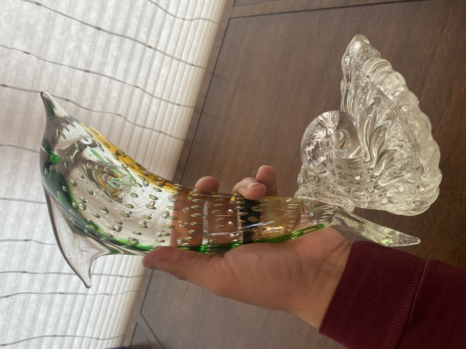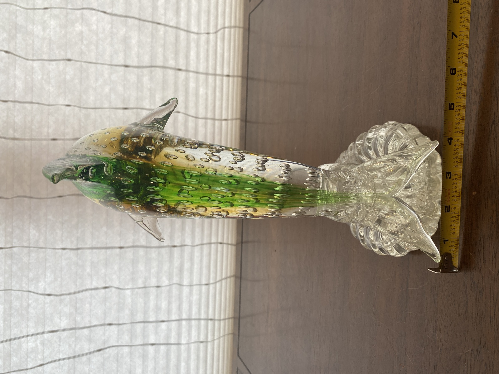 DAMAGED/FAIR USED CONDITION (PLEASE NOTE THAT THIS P[IECE HAS CRACKS AND CHIP MARKS WHERE THE DOLPHIN MEETS THE WAVE, NOTED IN THE PHOTOS, CANT TELL IF IT WAS REPAIRED OR NOT, BUT THERE IS DAMAGE, WOULD STILL MAKE FOR A GOOD DISPLAY PIECE). (Please refer back to the photos for condition and feel free to message me if you have any questions. Thank you)! Approximate measurements 8"L x 4.75"W x 11.75"H. 100% of the proceeds go to the registered non profit Cards of Love Inc. and with your purchase you are helping raise money to fund scholarships for at risk youth. Thank you!
