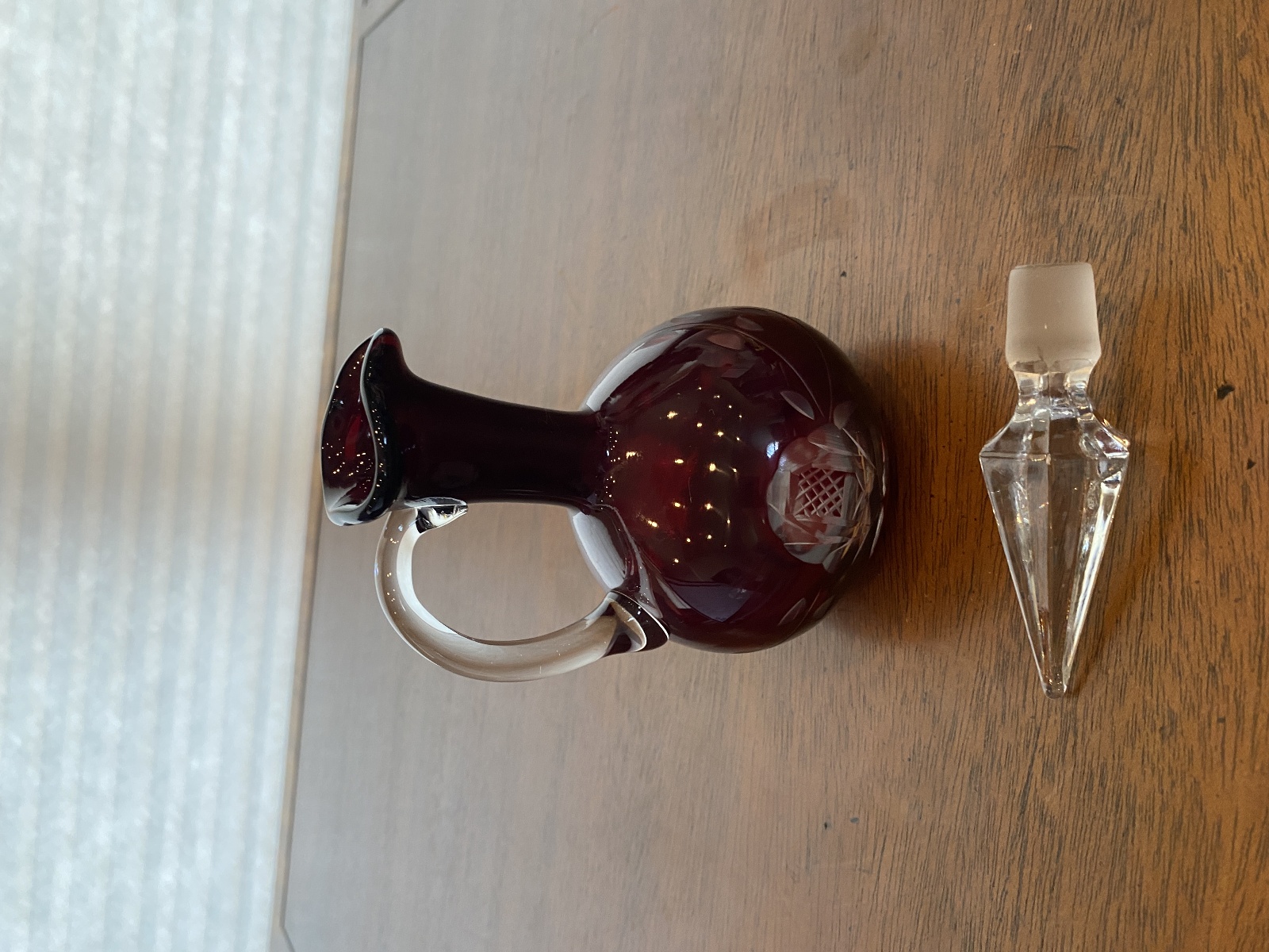 Great used condition (Has a little chip on the lid of the stopper, and Very light wear and scratching, noted in the photos, but overall this piece is in really great shape). (Please refer back to the photos for condition and feel free to message me if you have any questions. Thank you)! Approximate measurements 3.5"L x 3.25"W x 7.75"H(W/Stopper) 5.25"H(W/Out Stopper).