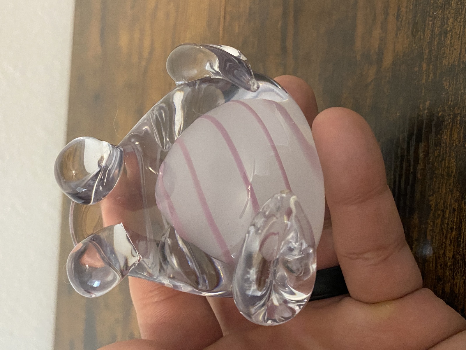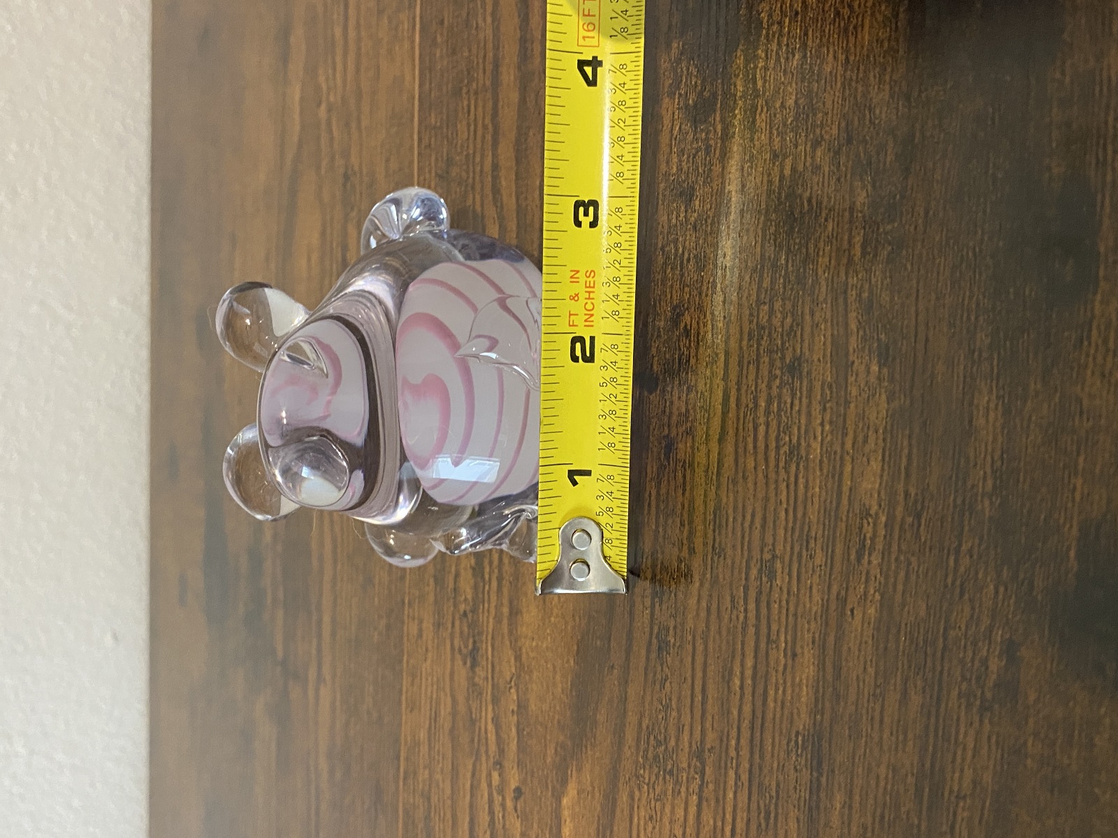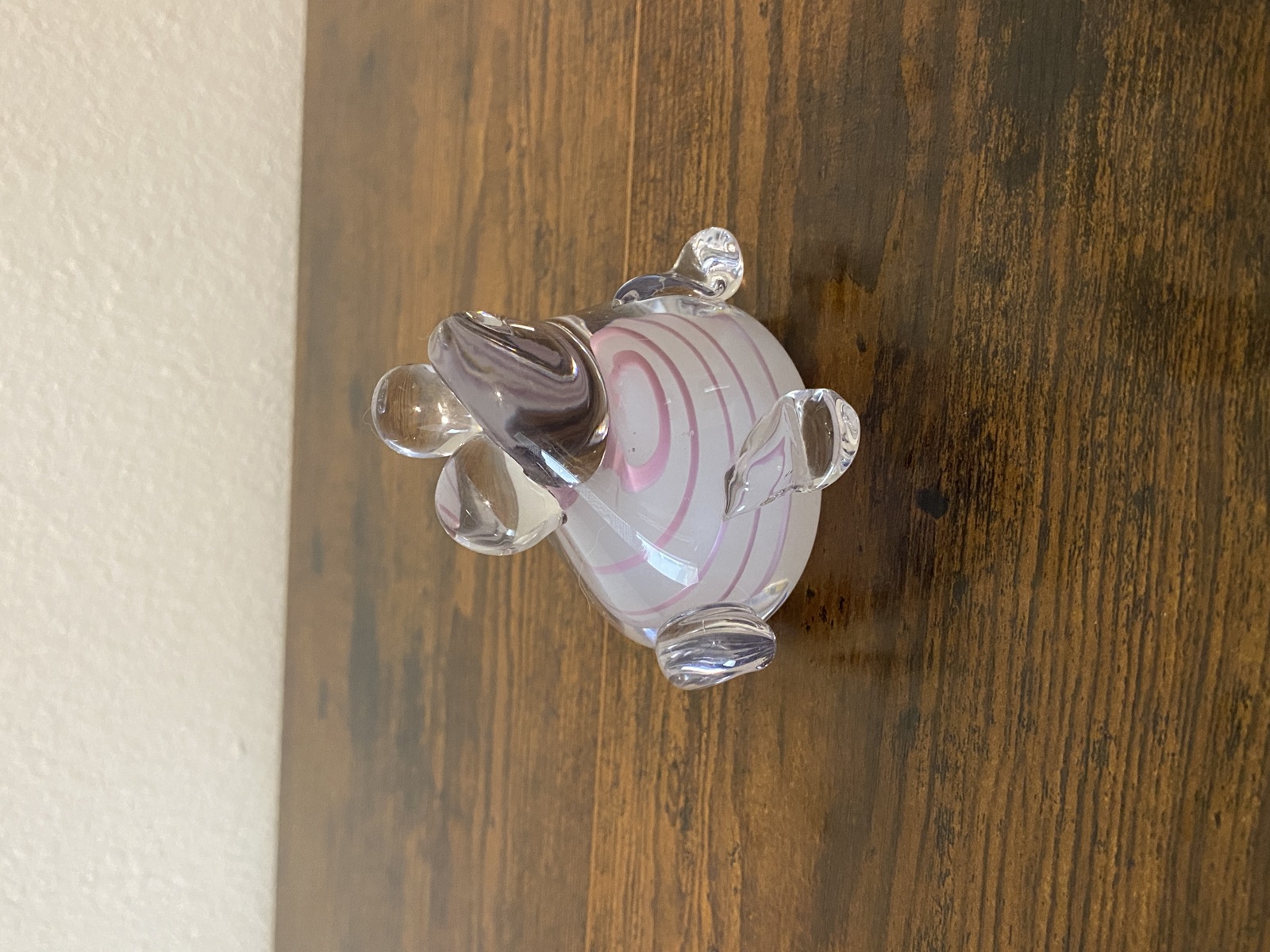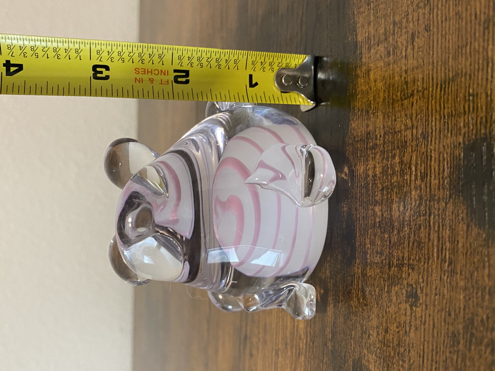 Clear White W/Pink Swirl Art Glass Frog Paperweight 2.75"H