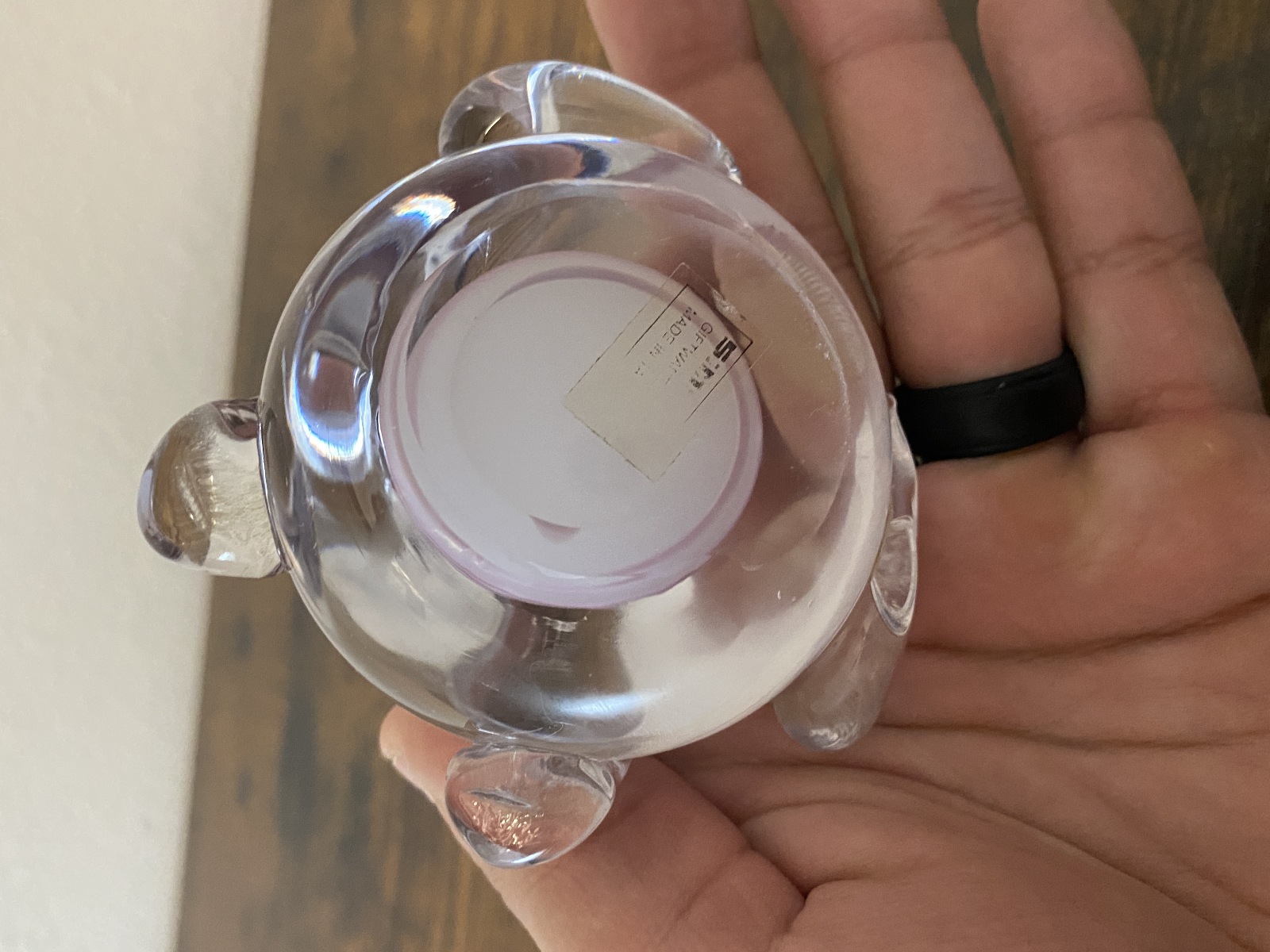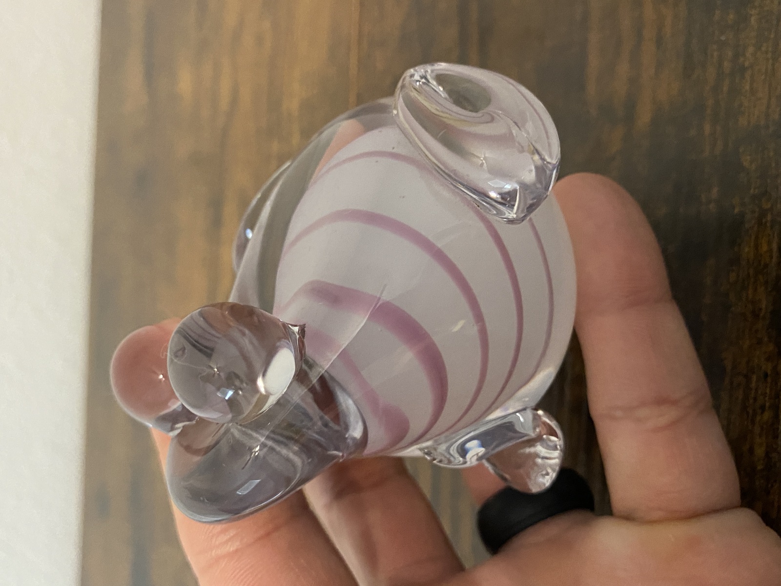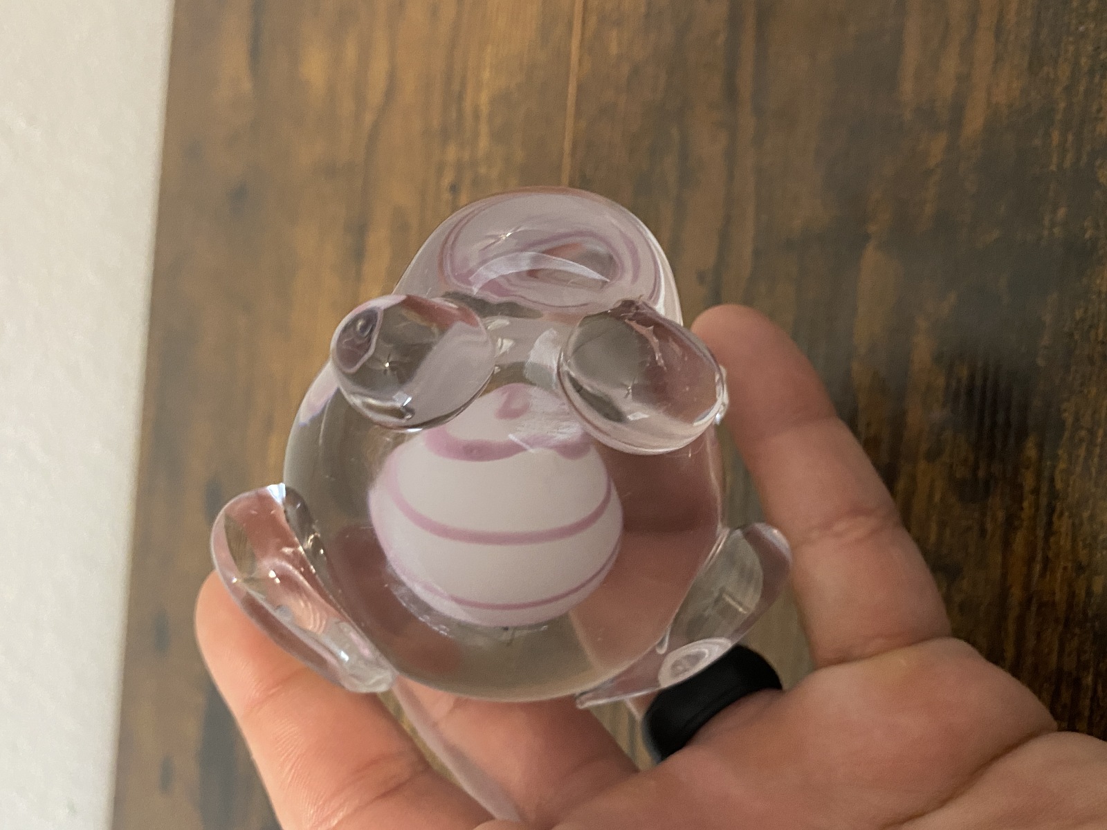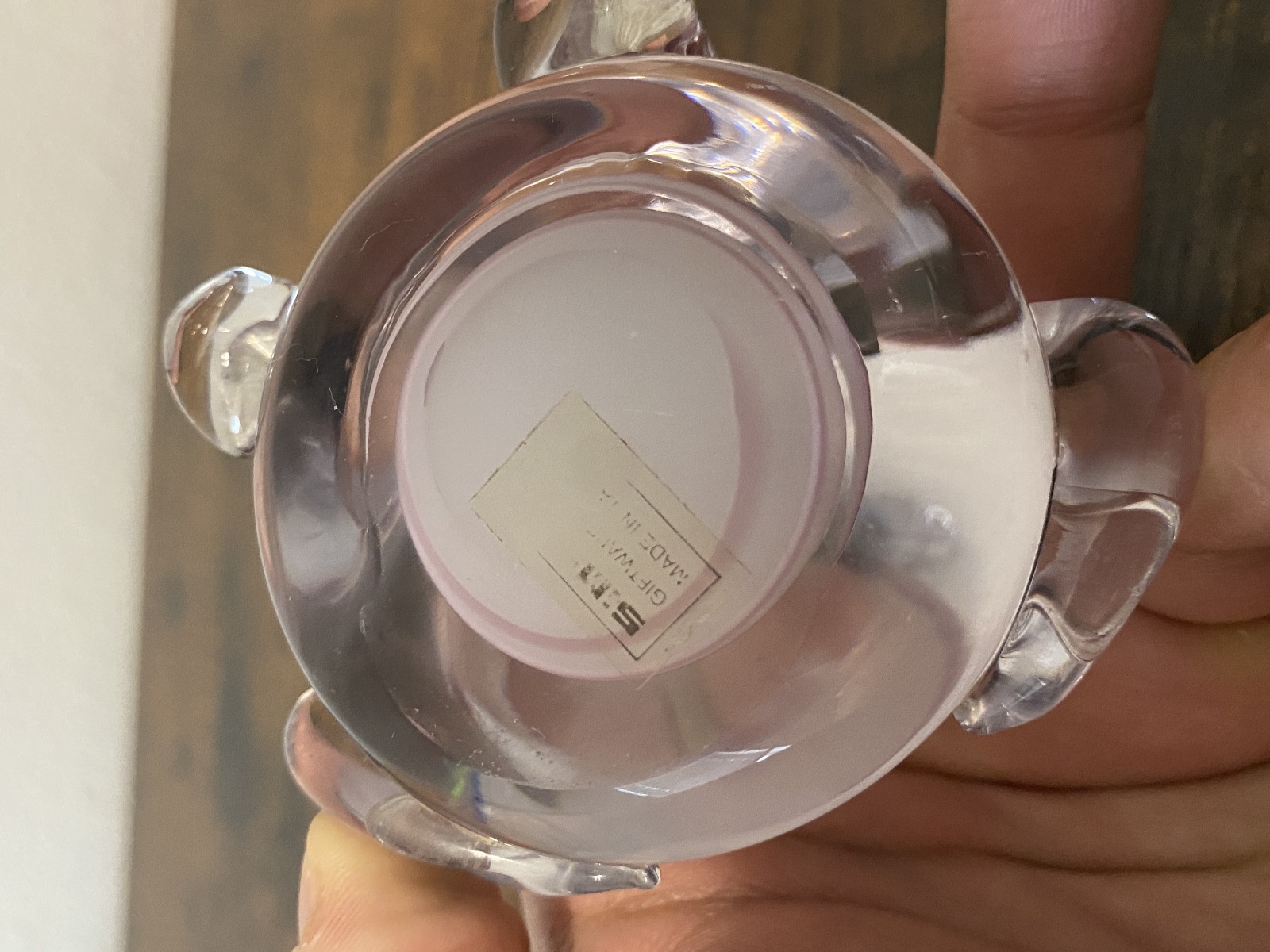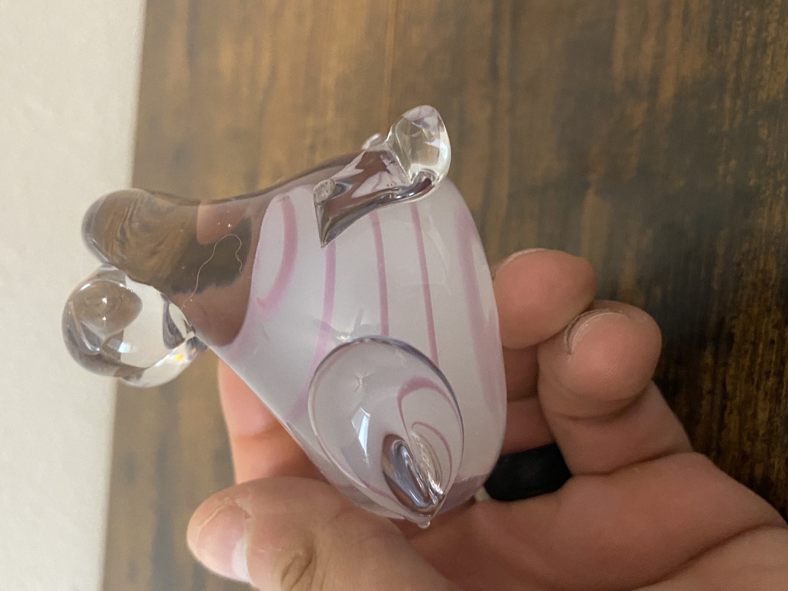 Clear White W/Pink Swirl Art Glass Frog Paperweight 2.75"H
