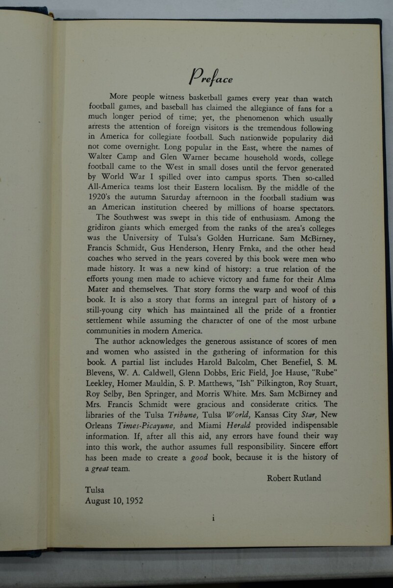 The Golden Hurricane Robert Rutland Tulsa QuarterBack Club 1952