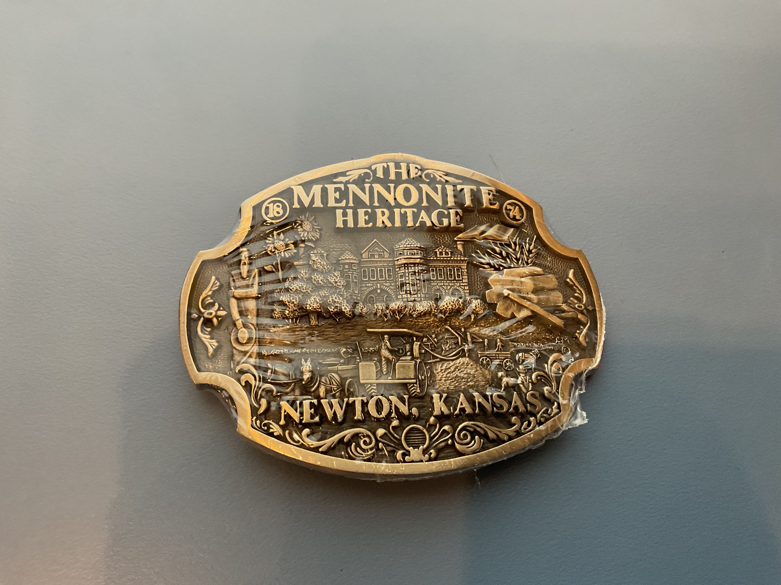 VINTAGE BELT BUCKLE Limited Edition Solid Brass Newton Kansas The Mennonite Heritage