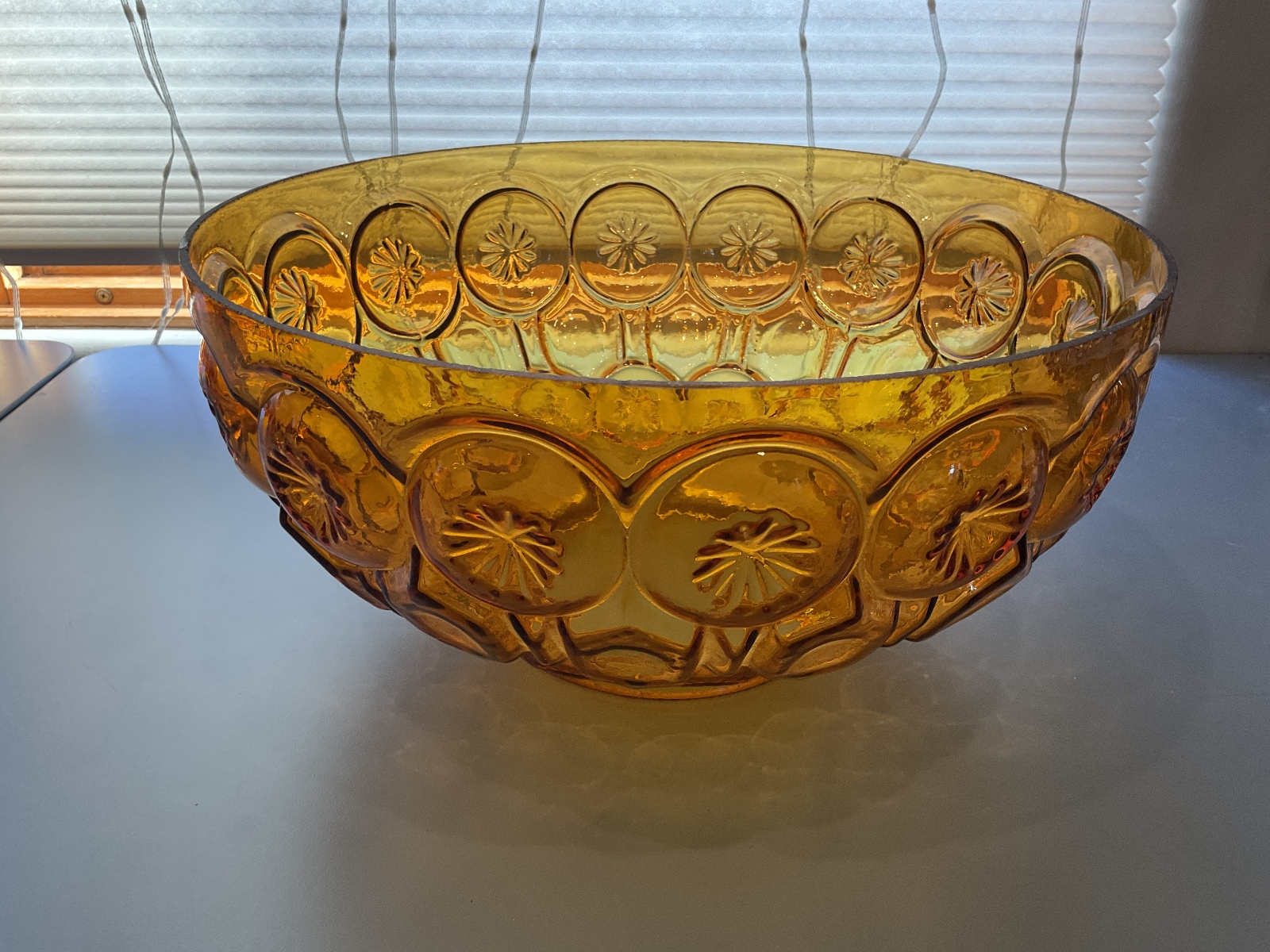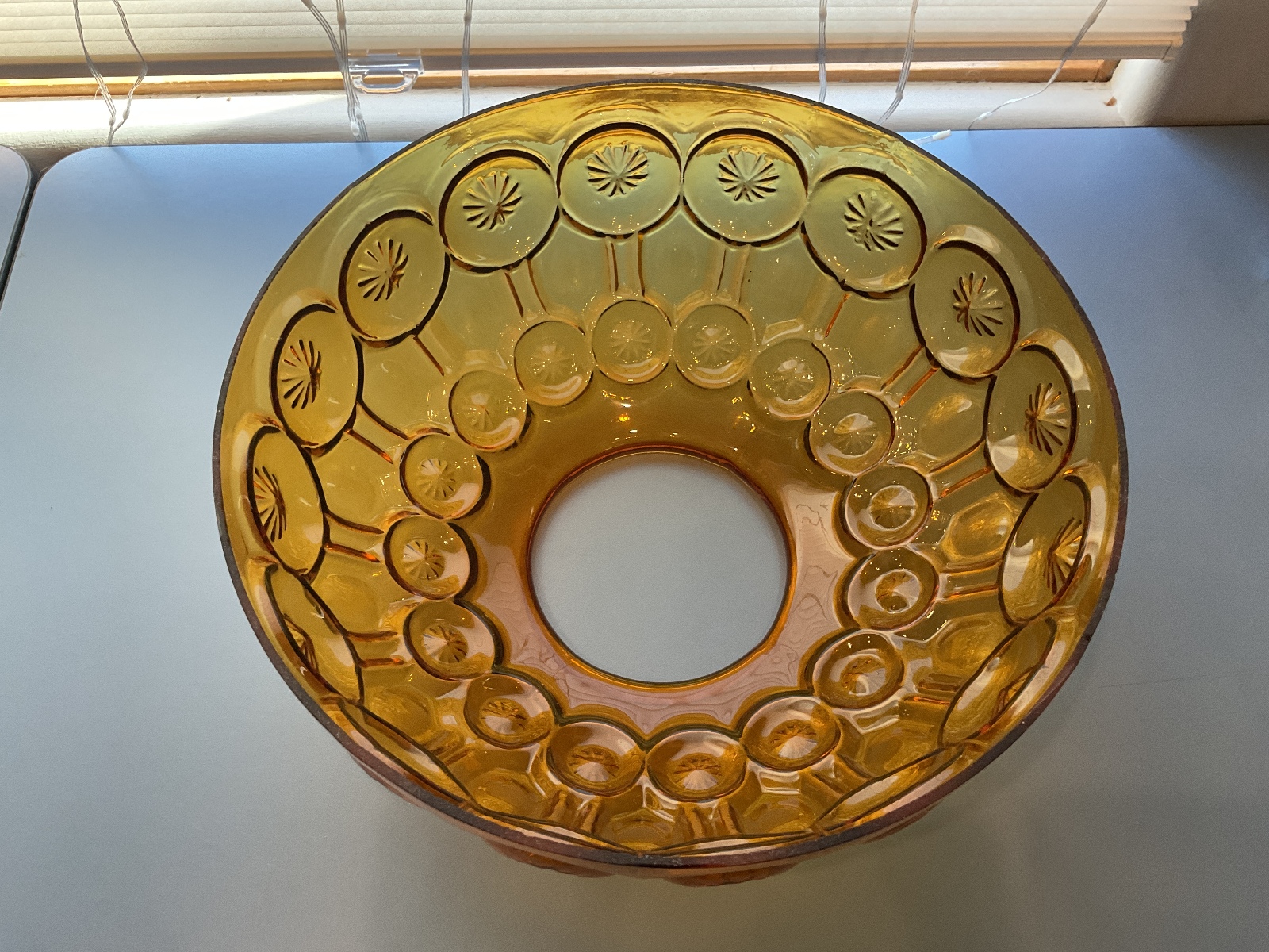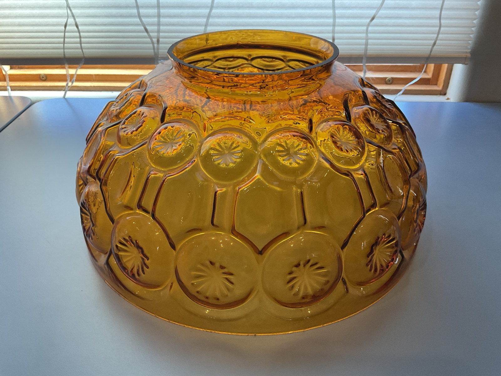 Vintage LE Smith Amber Glass “Moon and Stars” Patterned Lamp Shade