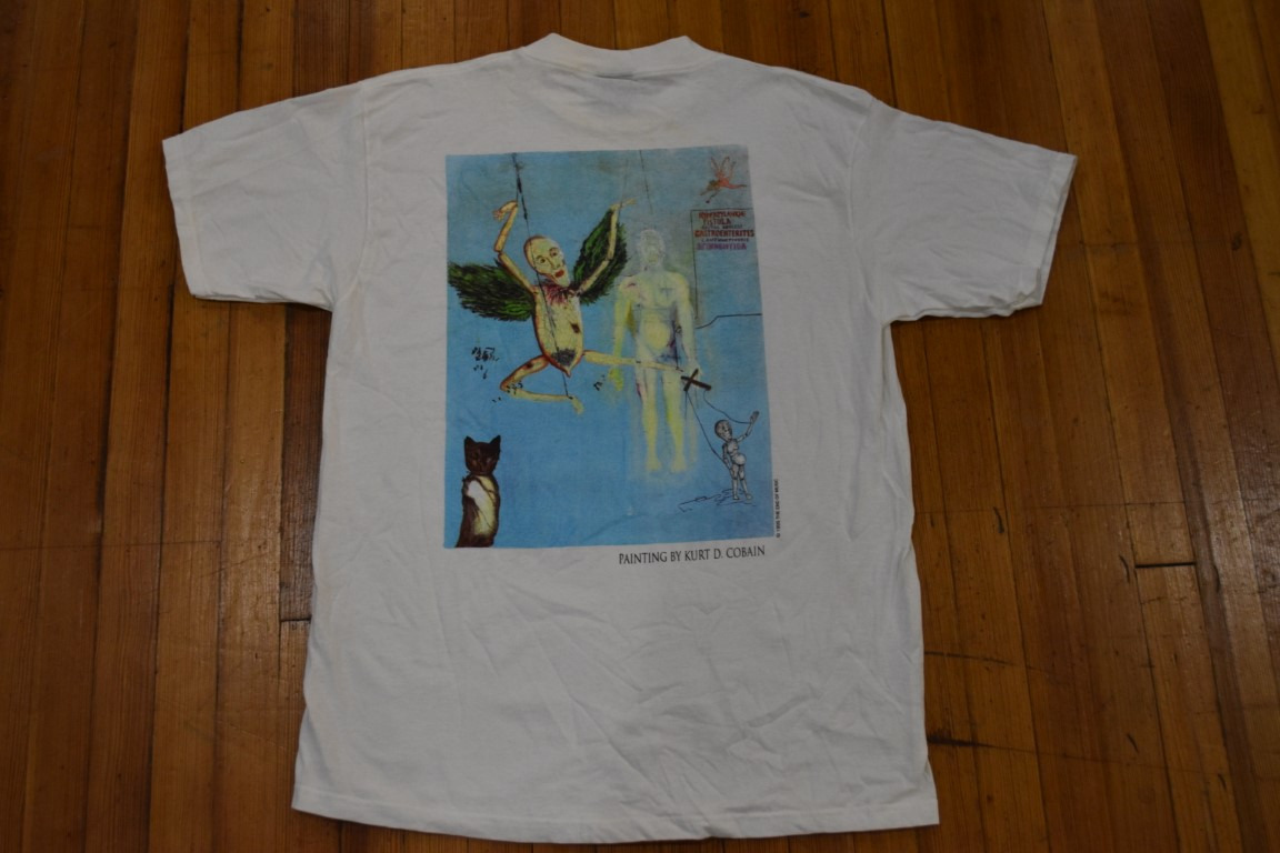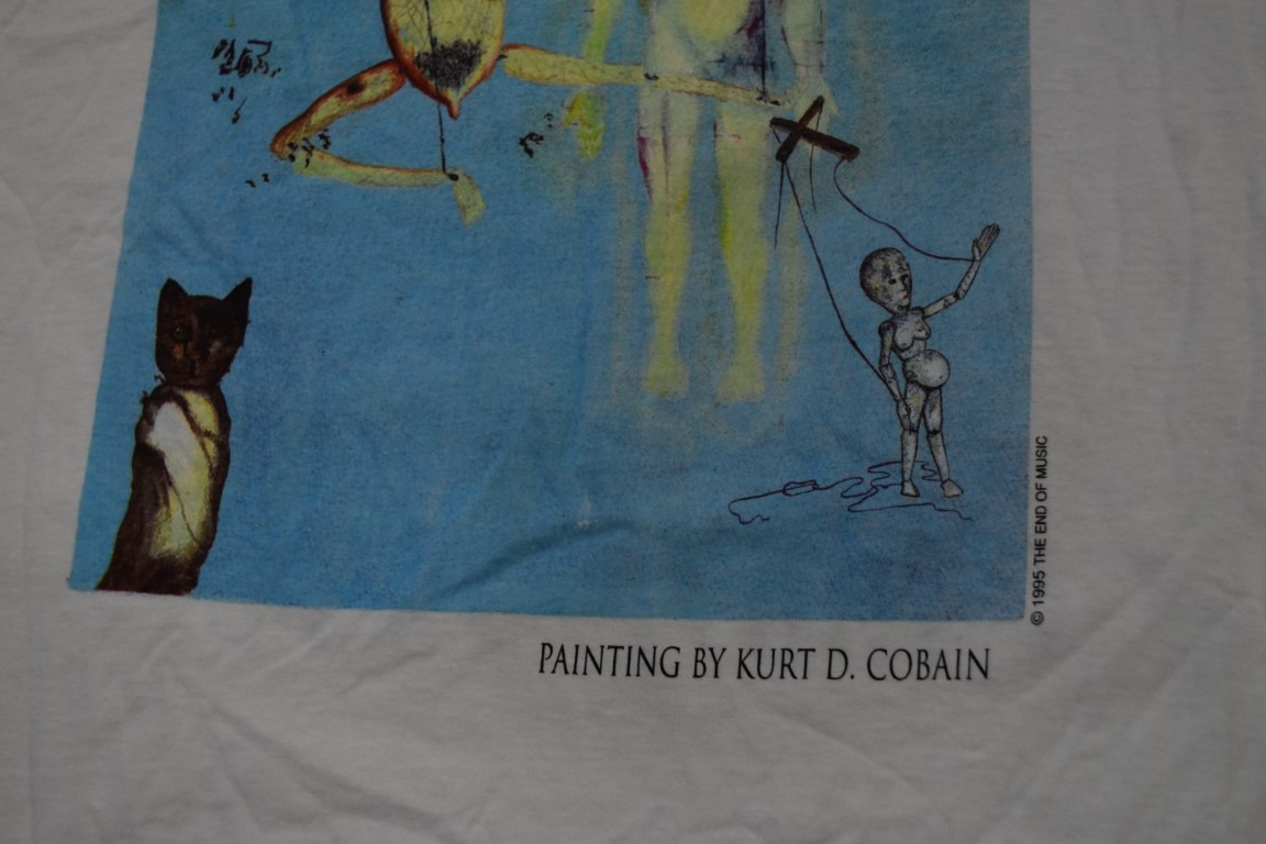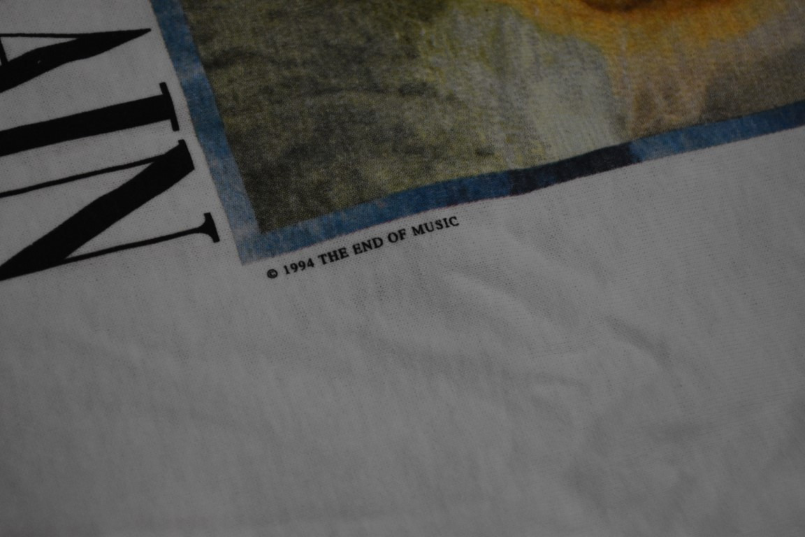 Up for auction is an incredible Vintage Nirvana Kurt Cobain 1994 The End of Music Tribute T-Shirt Size XL Giant by Tultex. It is in very cood condition, with no rips, tears or holes anywhere. There are a couple of very small hardly noticeable stains that I made sure to point out in the photos. Very cool piece!