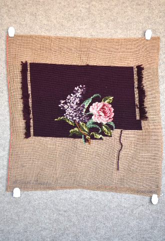 - Notes: Nearly finished needlepoint canvas project. See photos for details.
